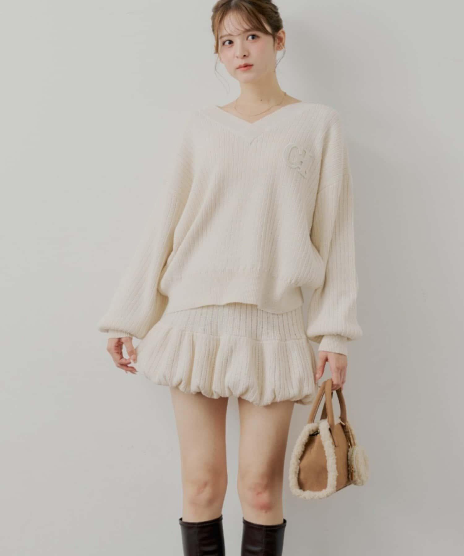 這款單品可搭配同材質的針織衫,打造可愛的套裝造型。
