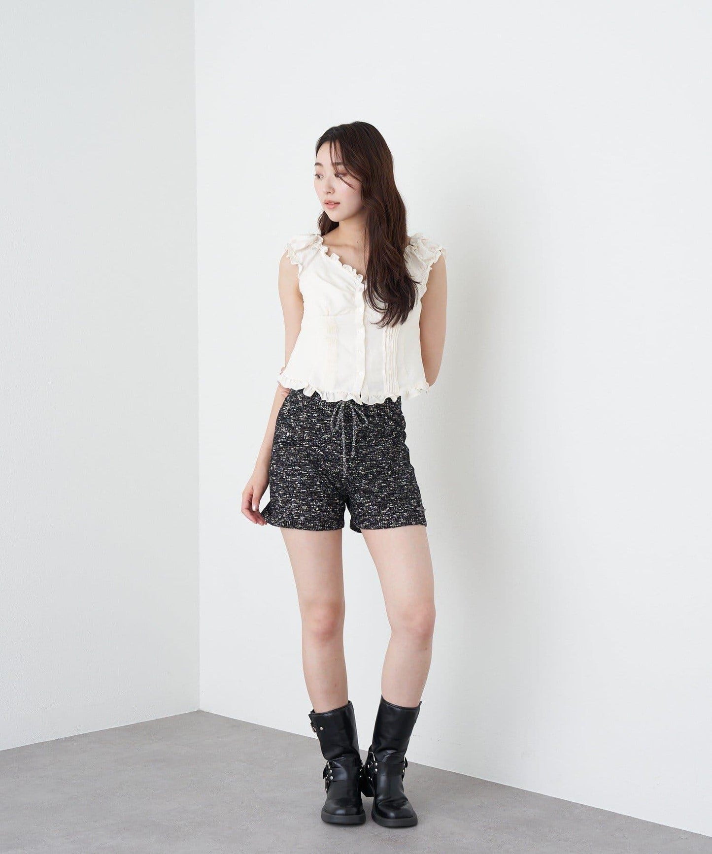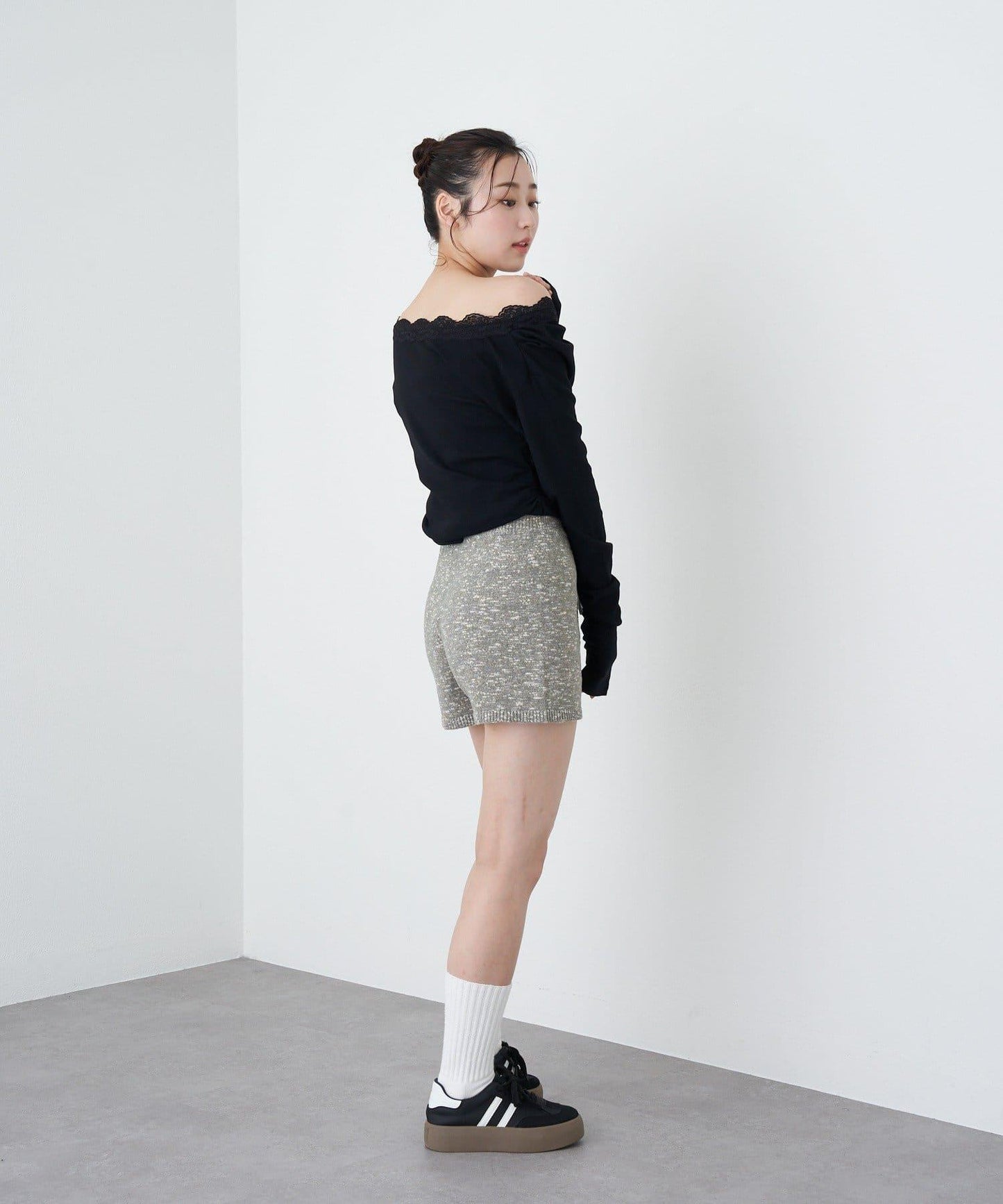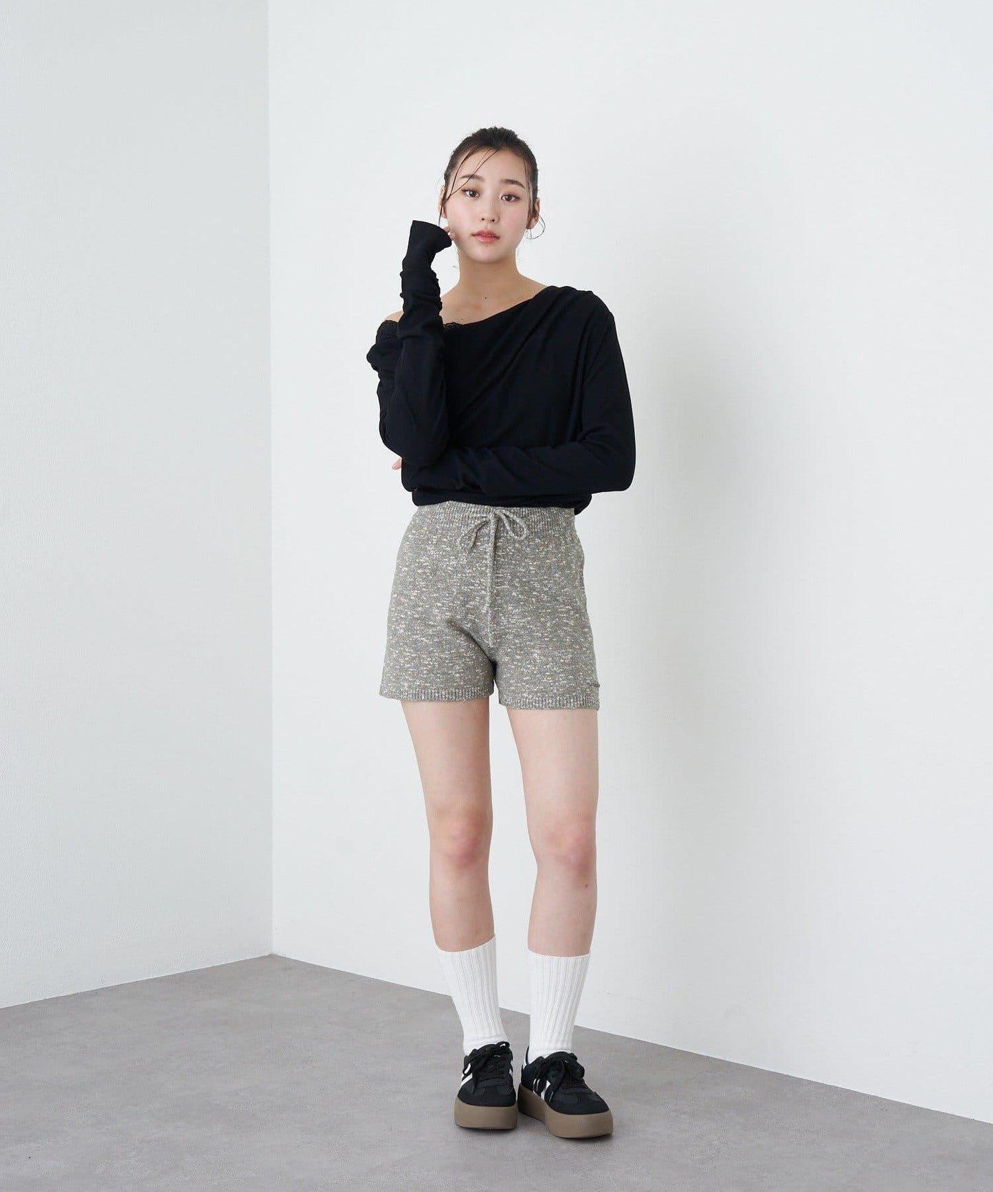 "針織材質,時尚外觀 "短褲,可一直穿到冬天。