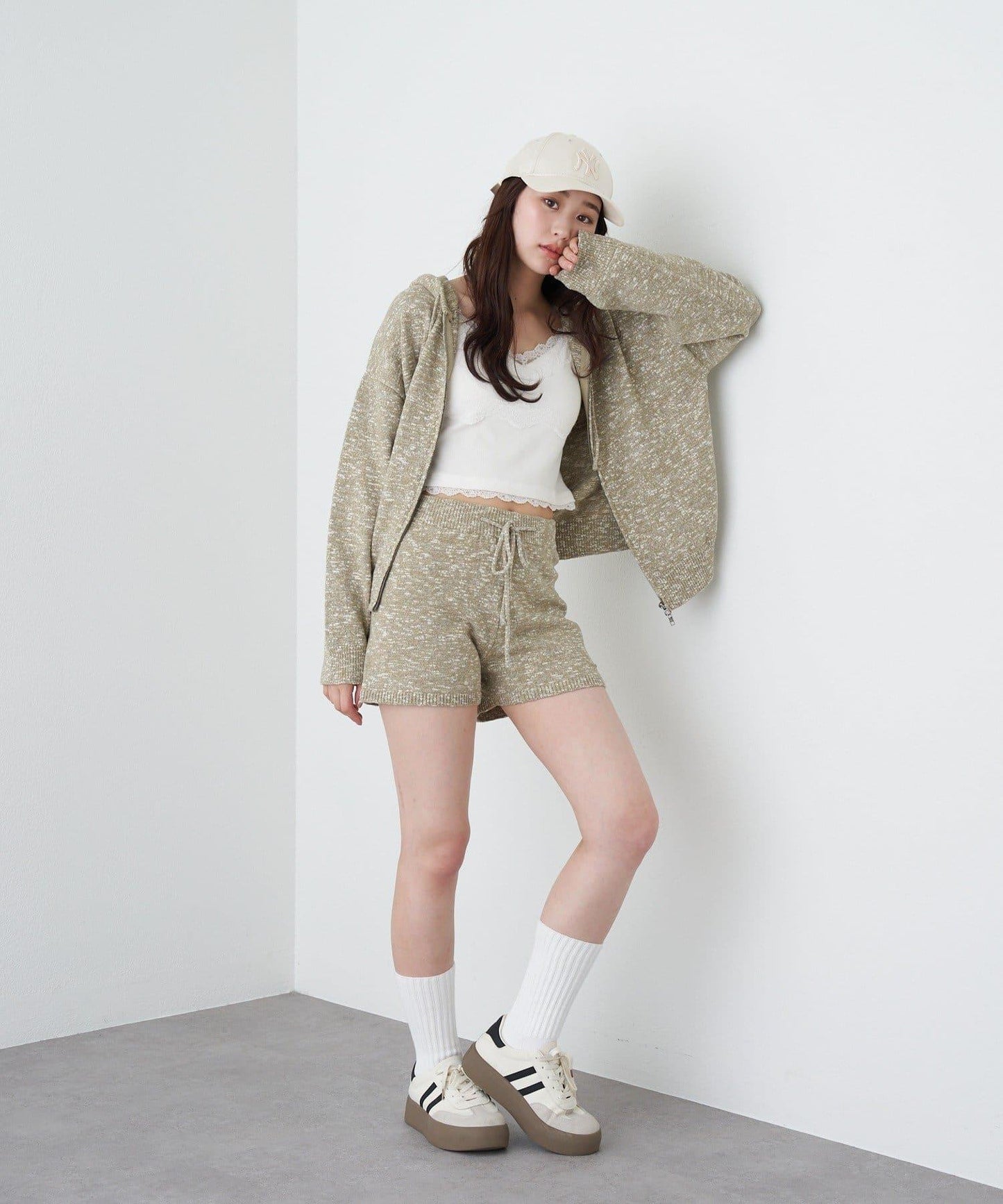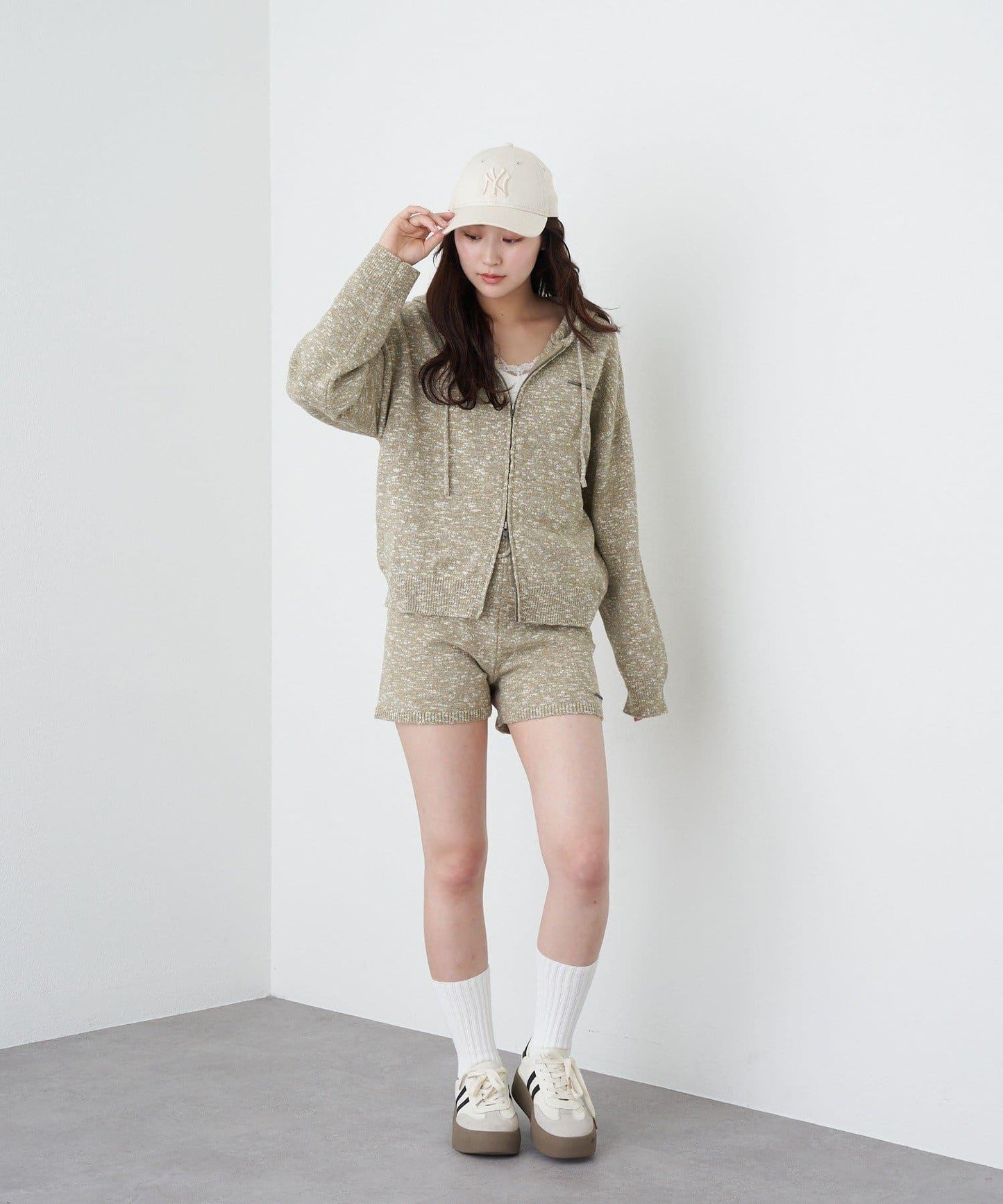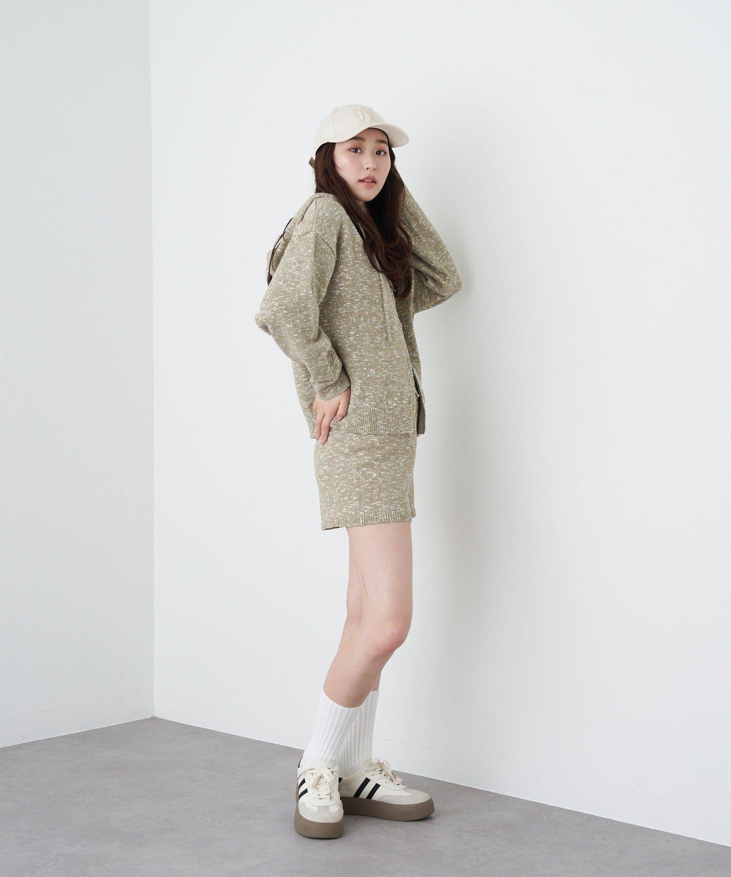 可與同材質的寬鬆針織連帽拉鍊罩衫搭配作為套裝穿著。
