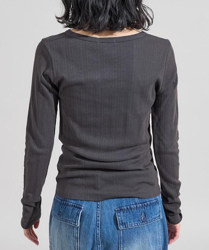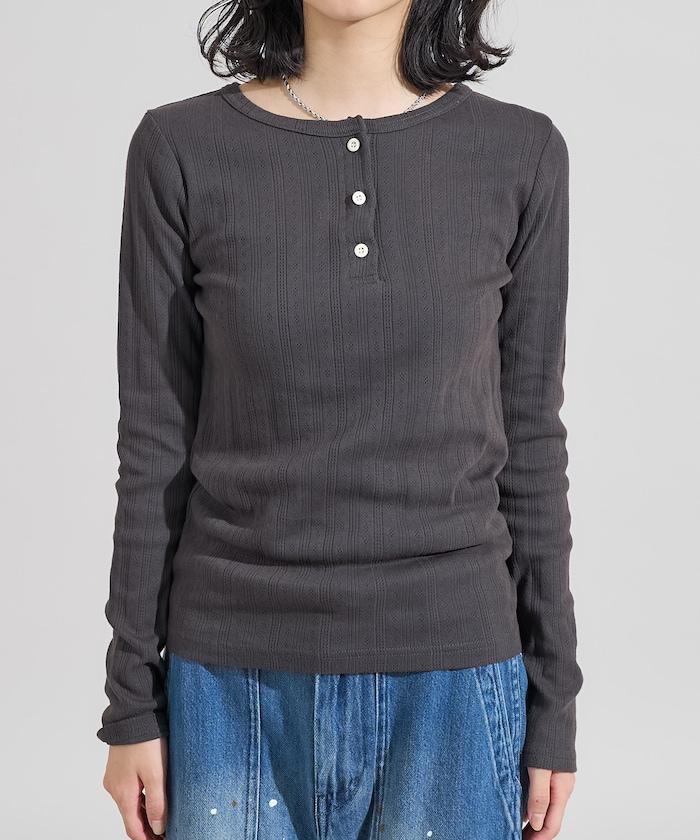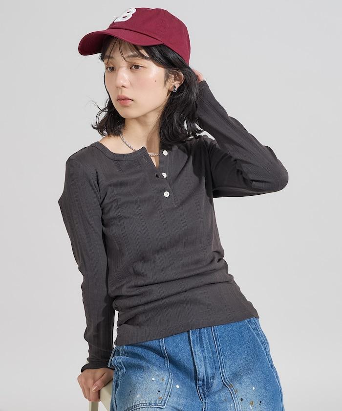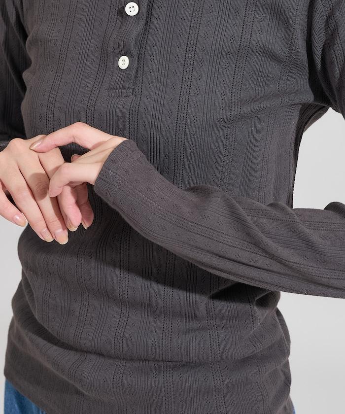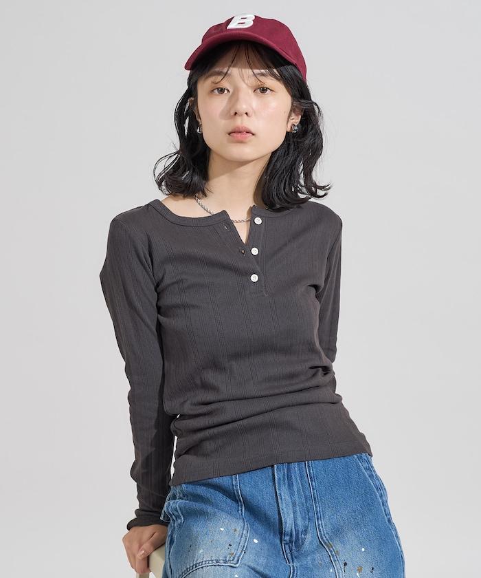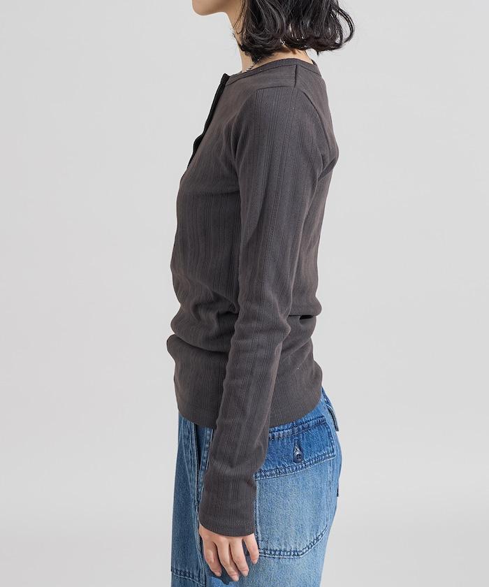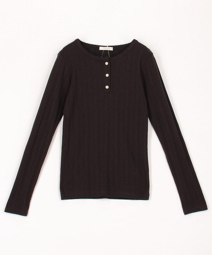 針織羅紋亨利領長袖T恤