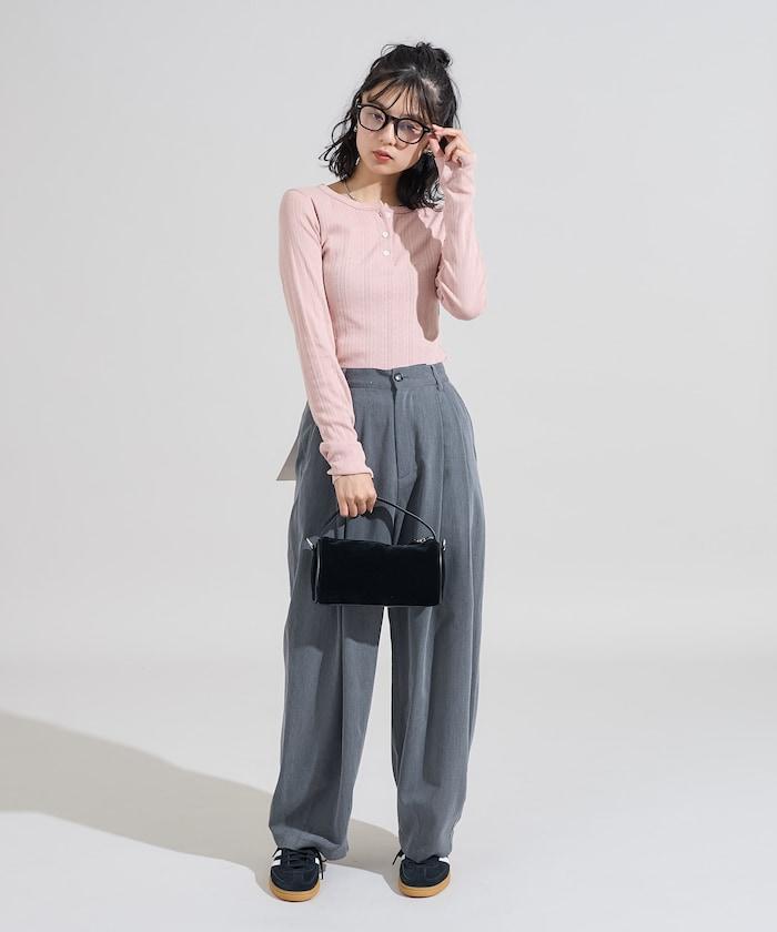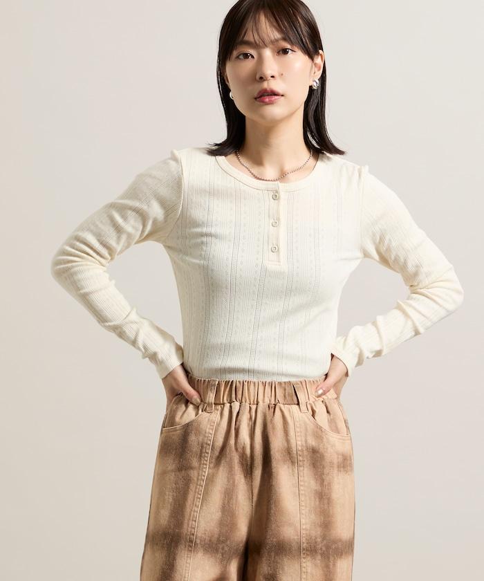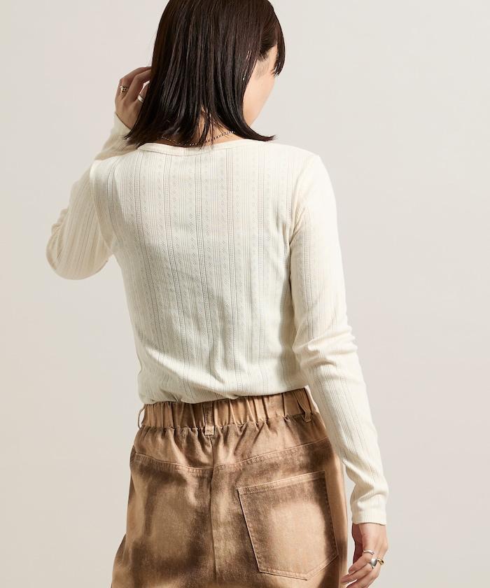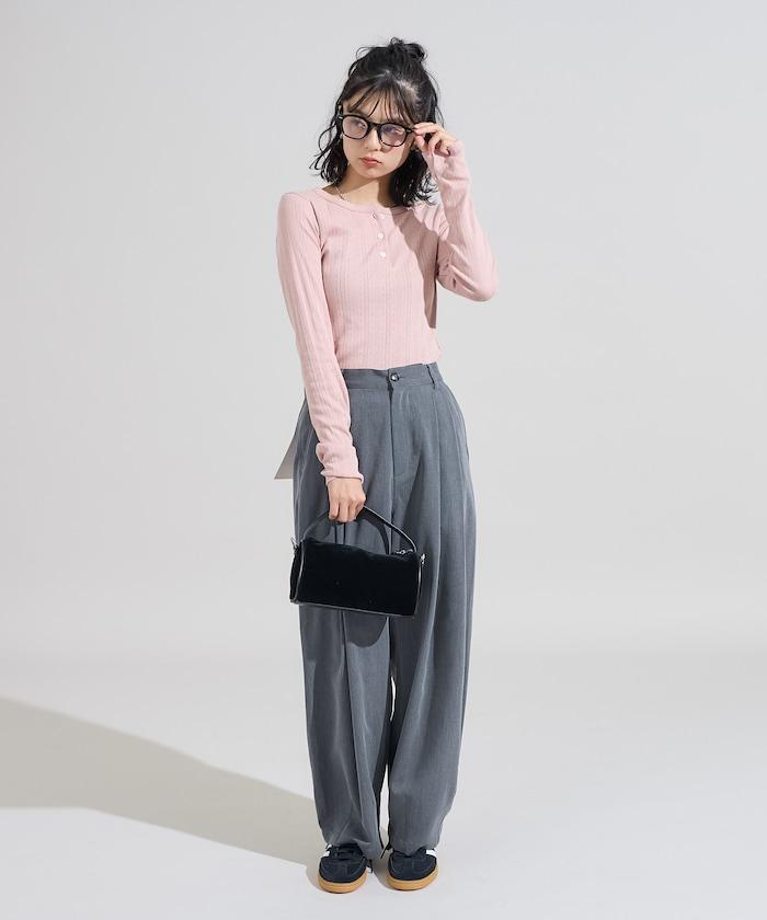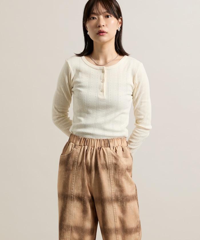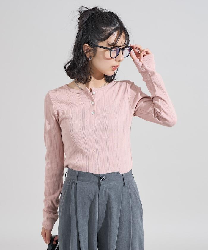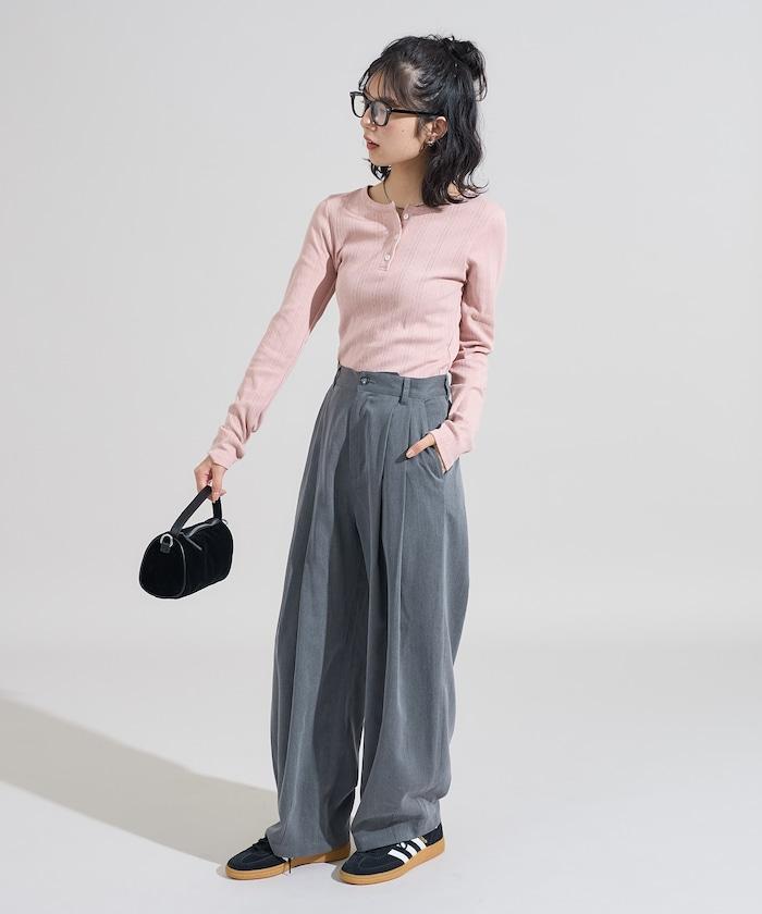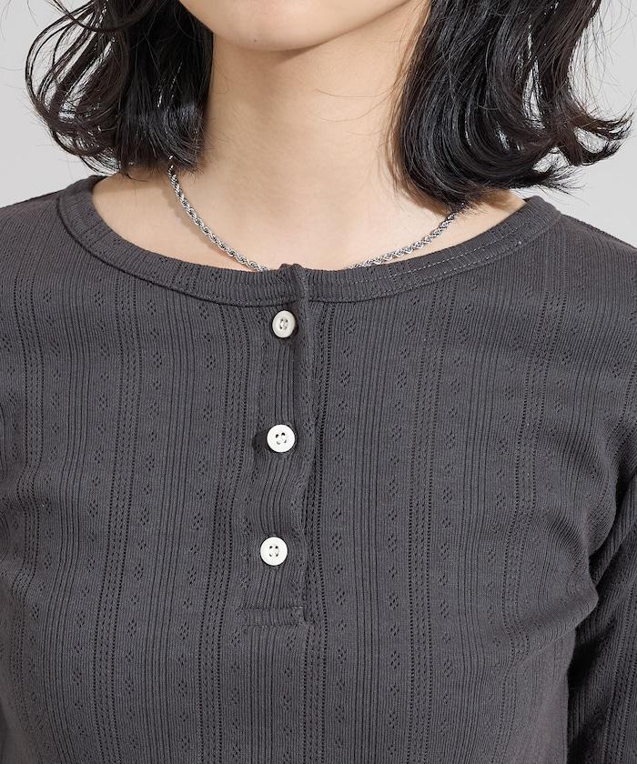 針織羅紋亨利領長袖T恤
