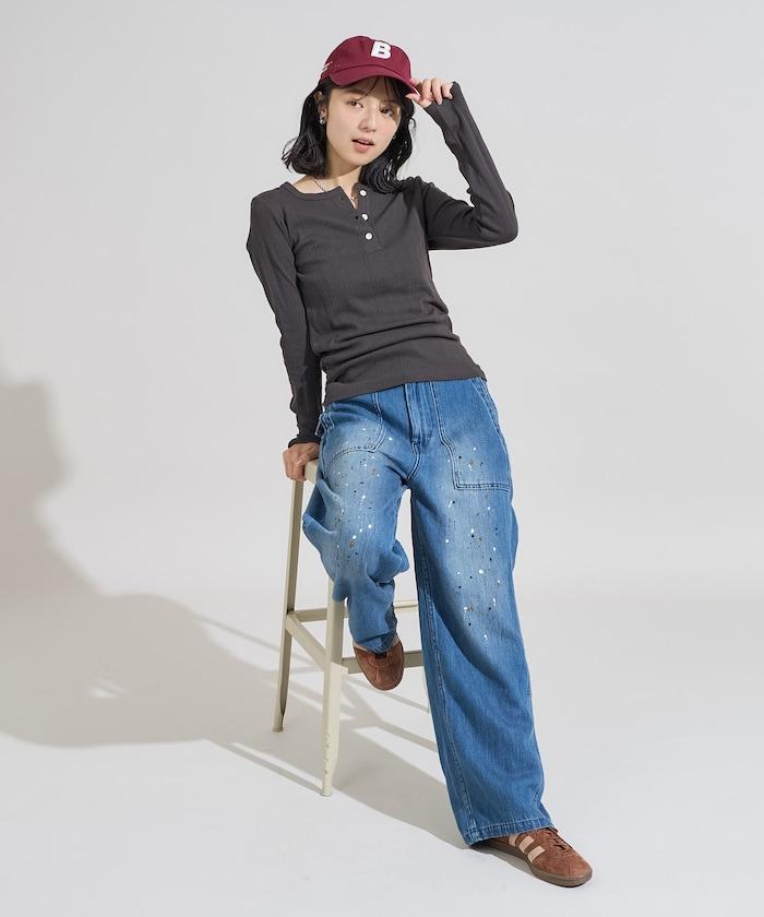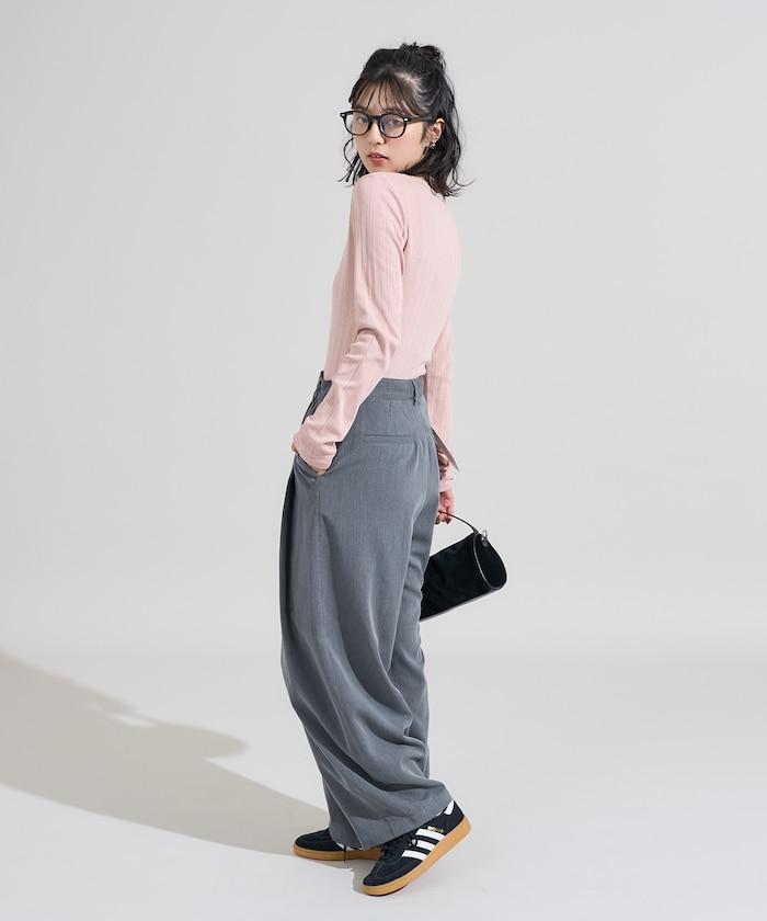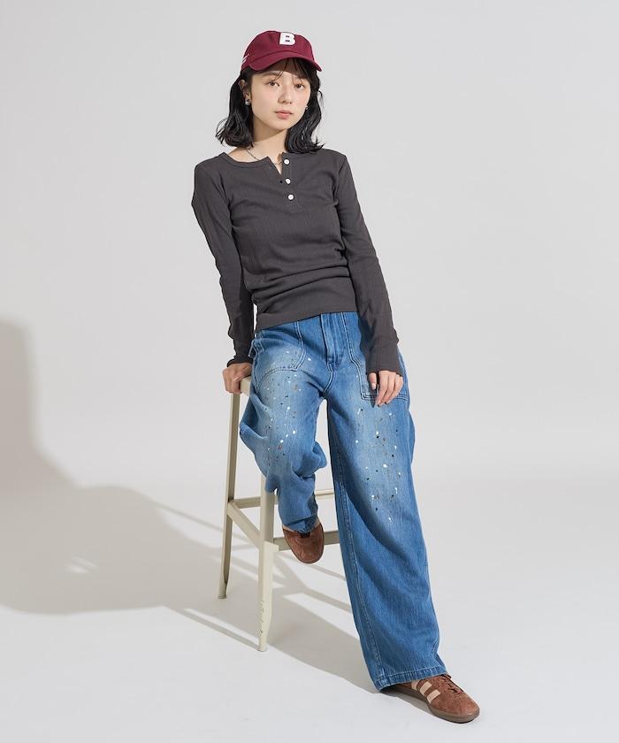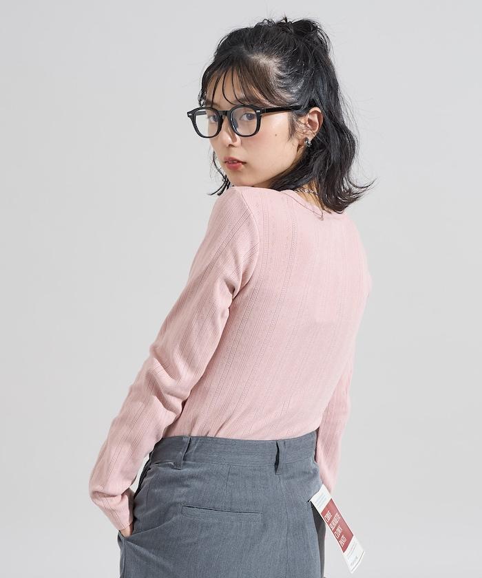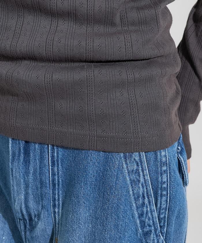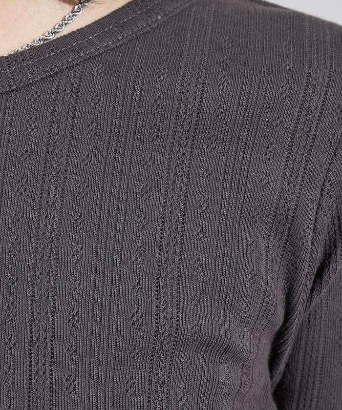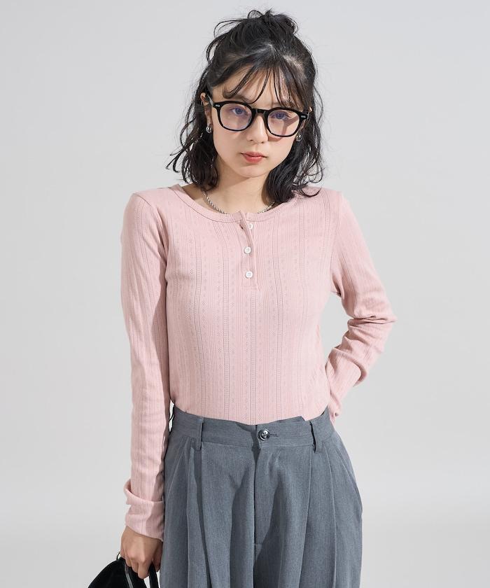 針織羅紋亨利領長袖T恤