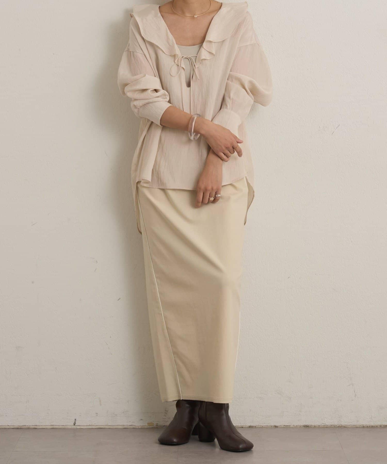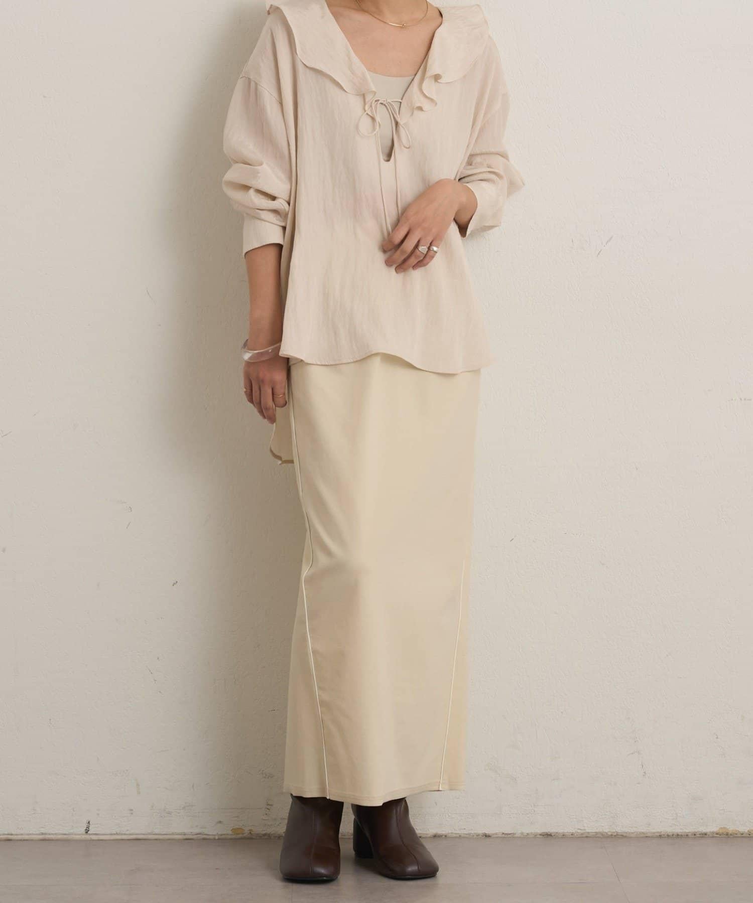 這款 I 字裙的 I 字輪廓給人以優雅的印象。