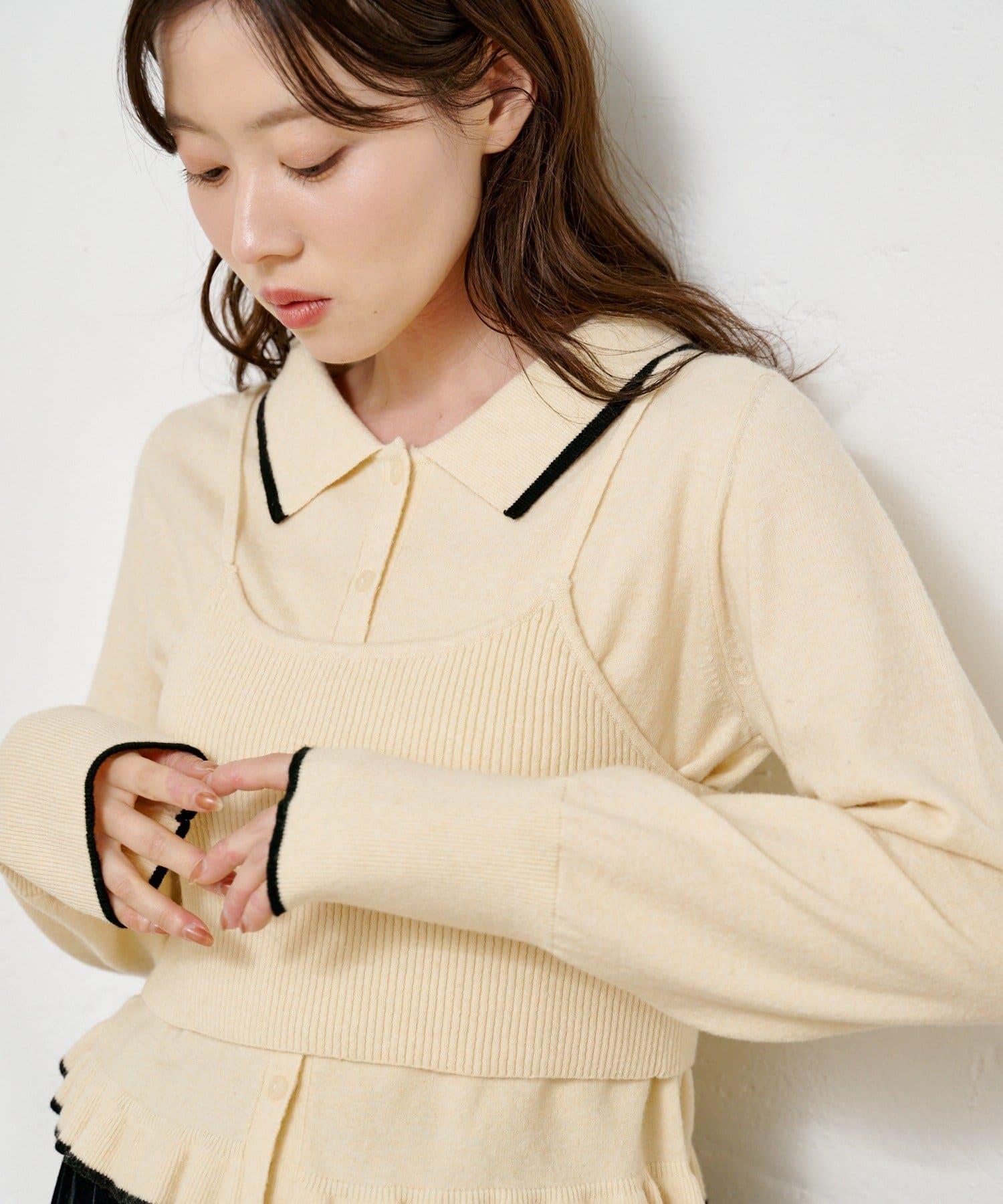 開衫設計有衣領,可單獨穿著,非常時尚。