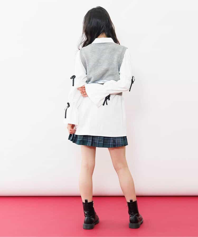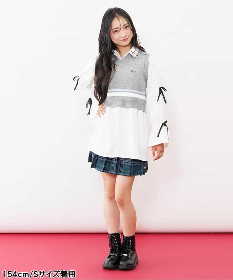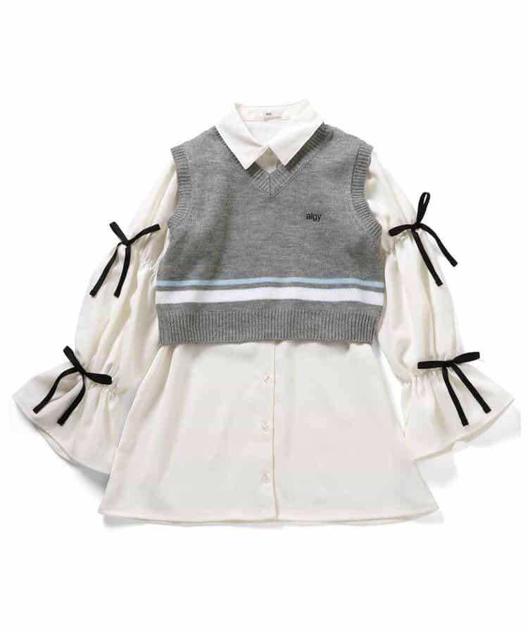 來自 ALGY 的長褲 "針織背心和蝴蝶結迷你連體套裝"。