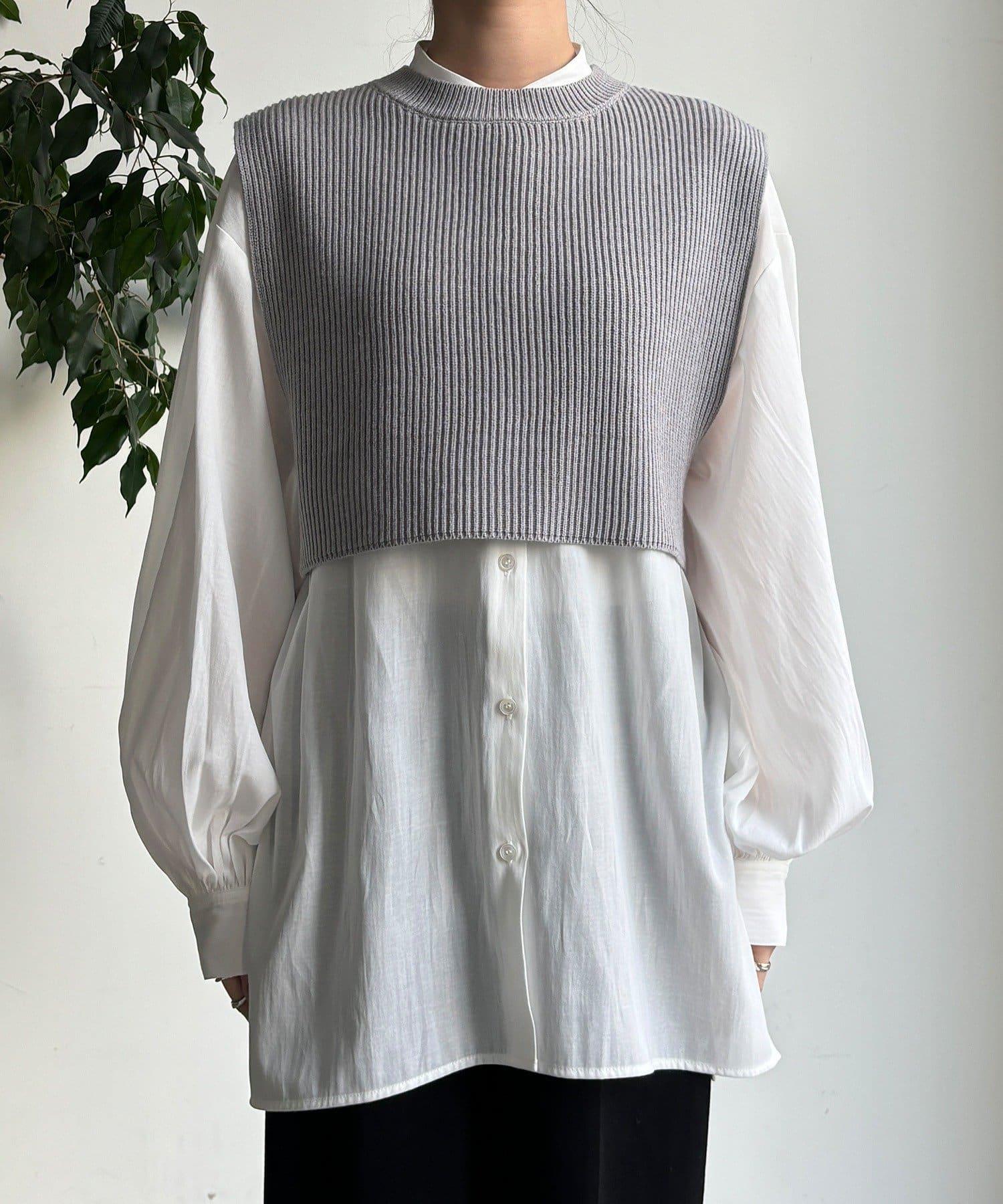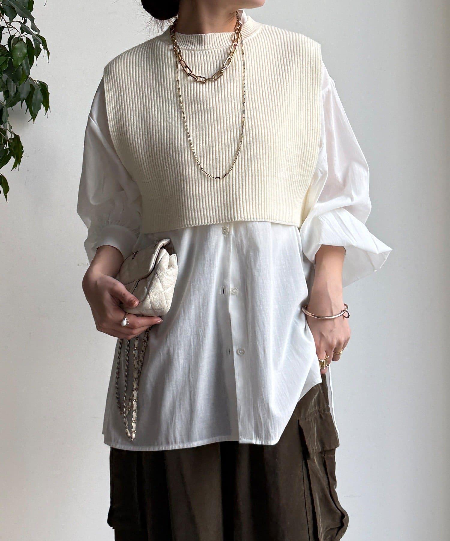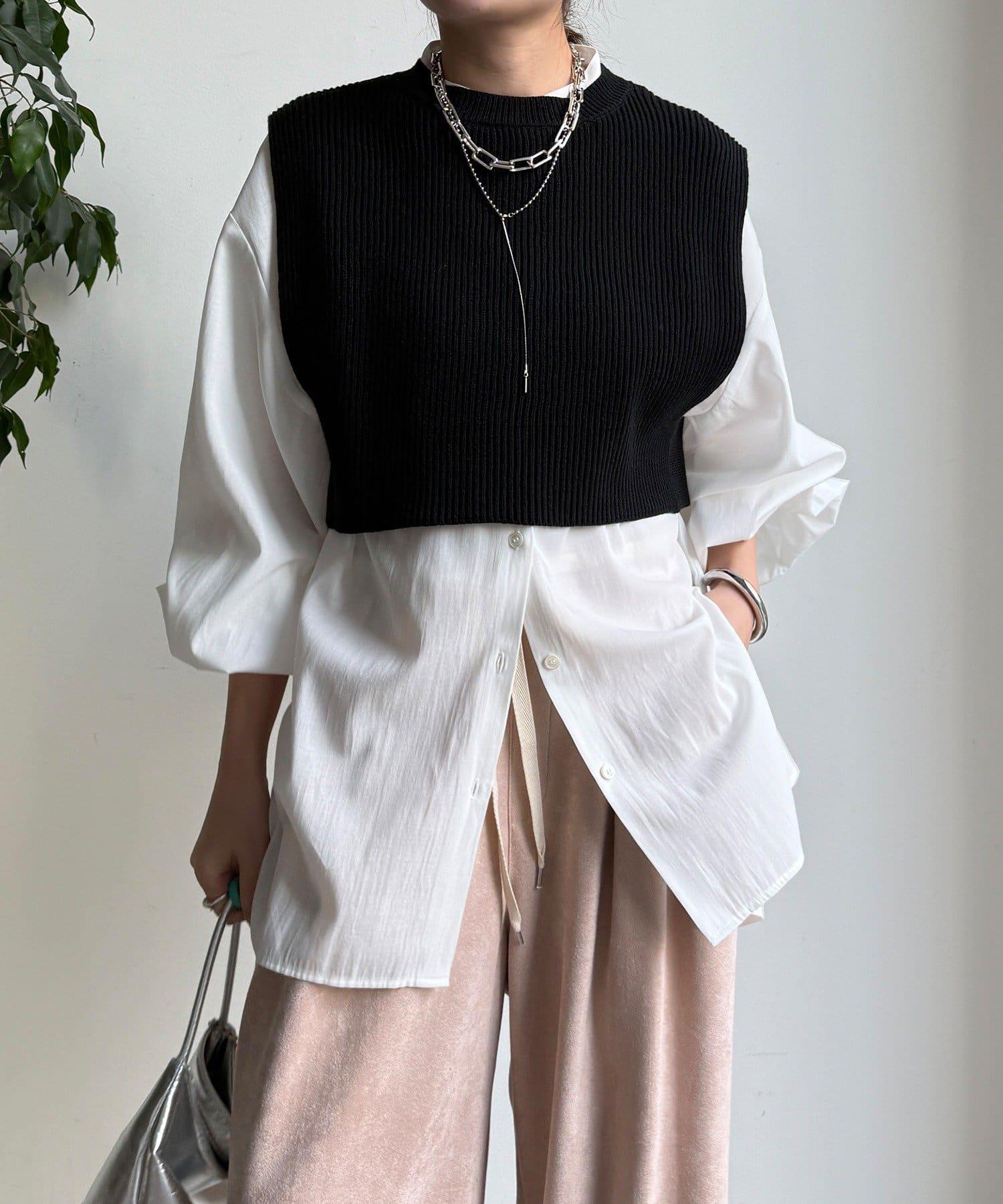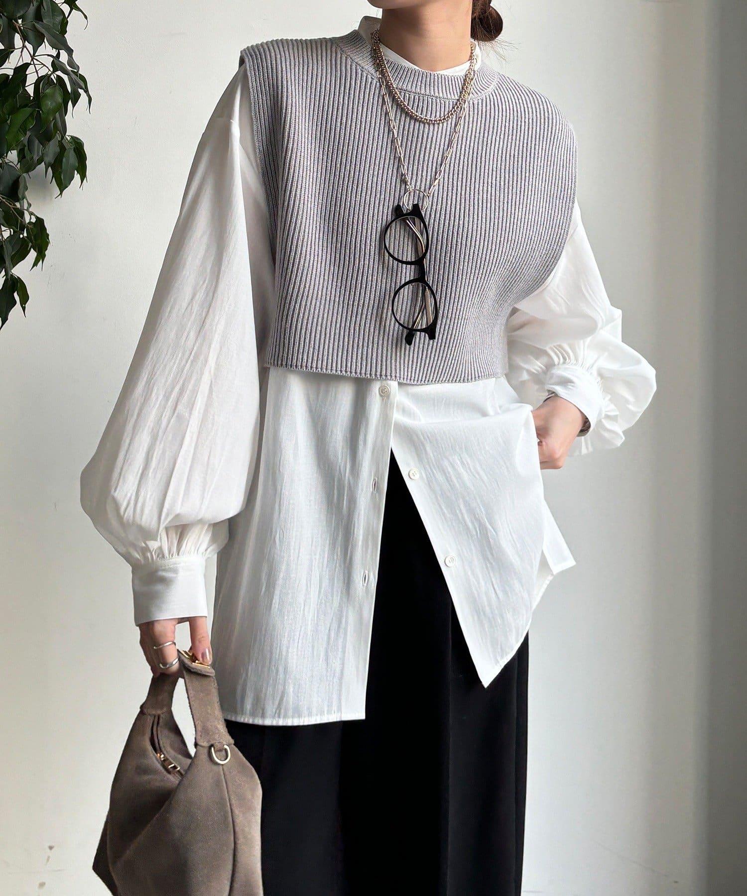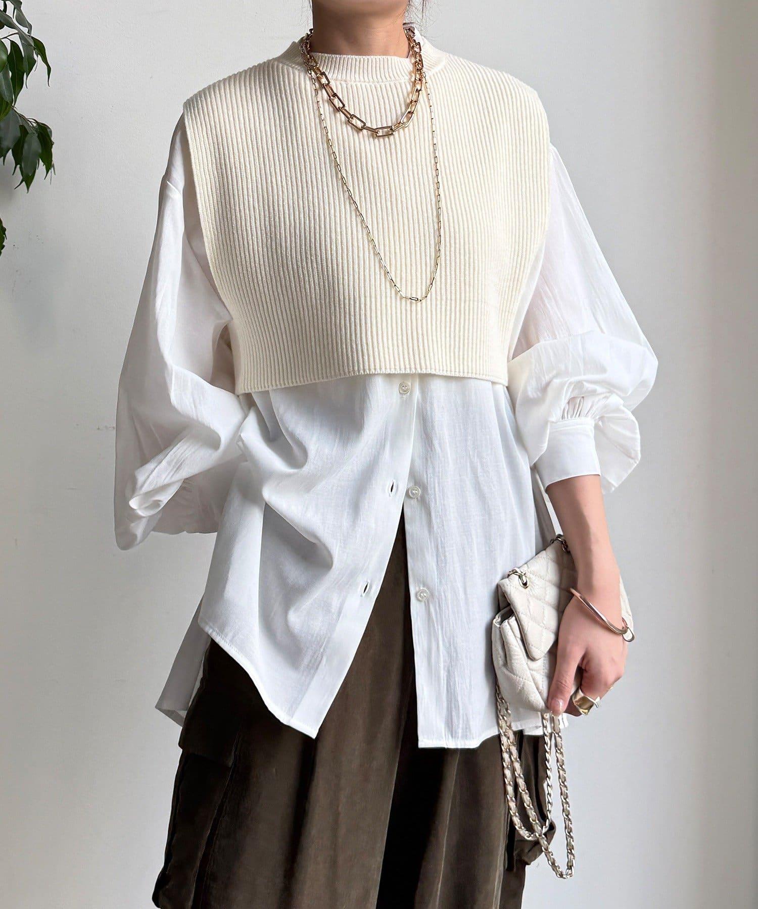 也可單獨使用!針織馬甲和襯衫套裝。