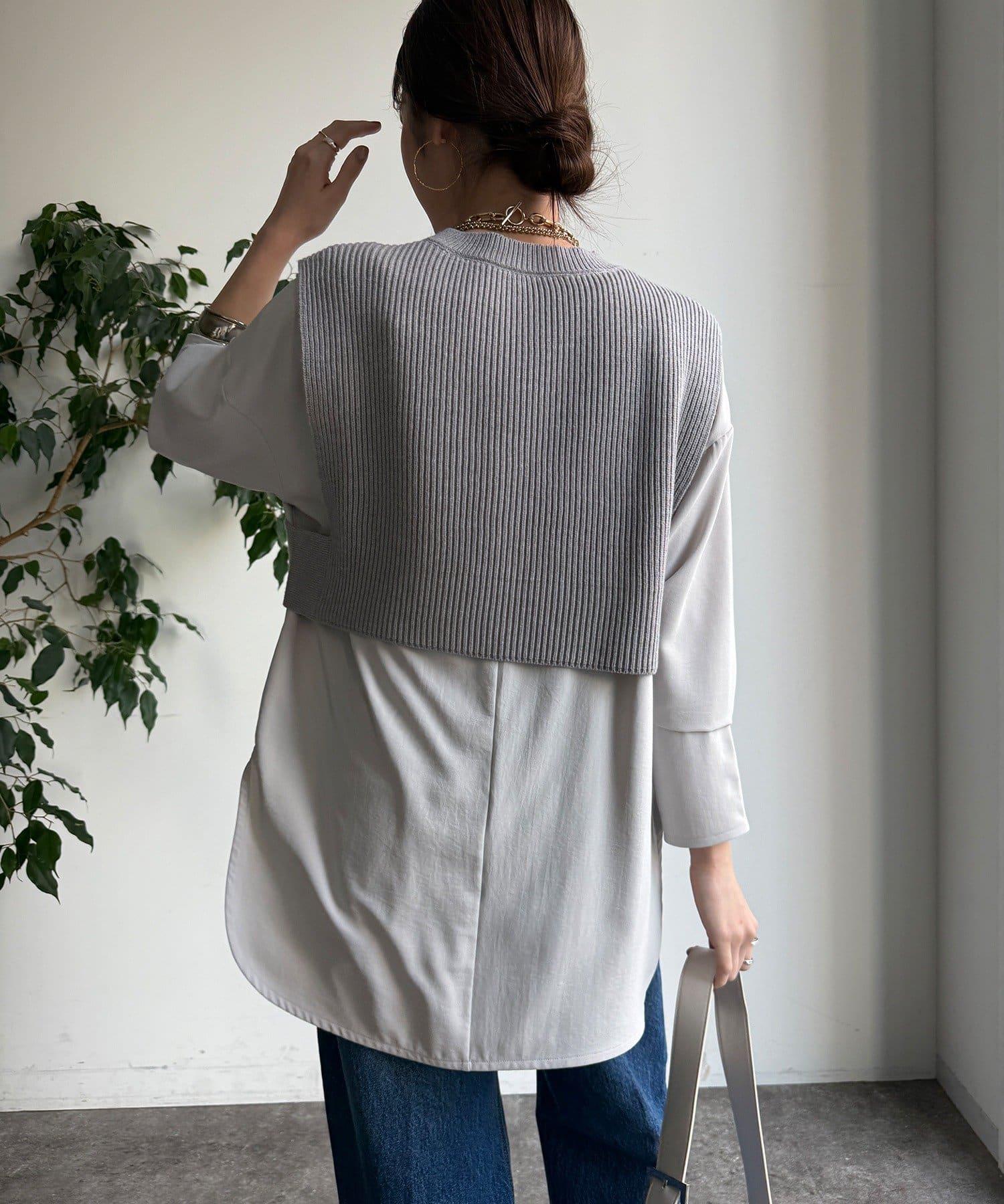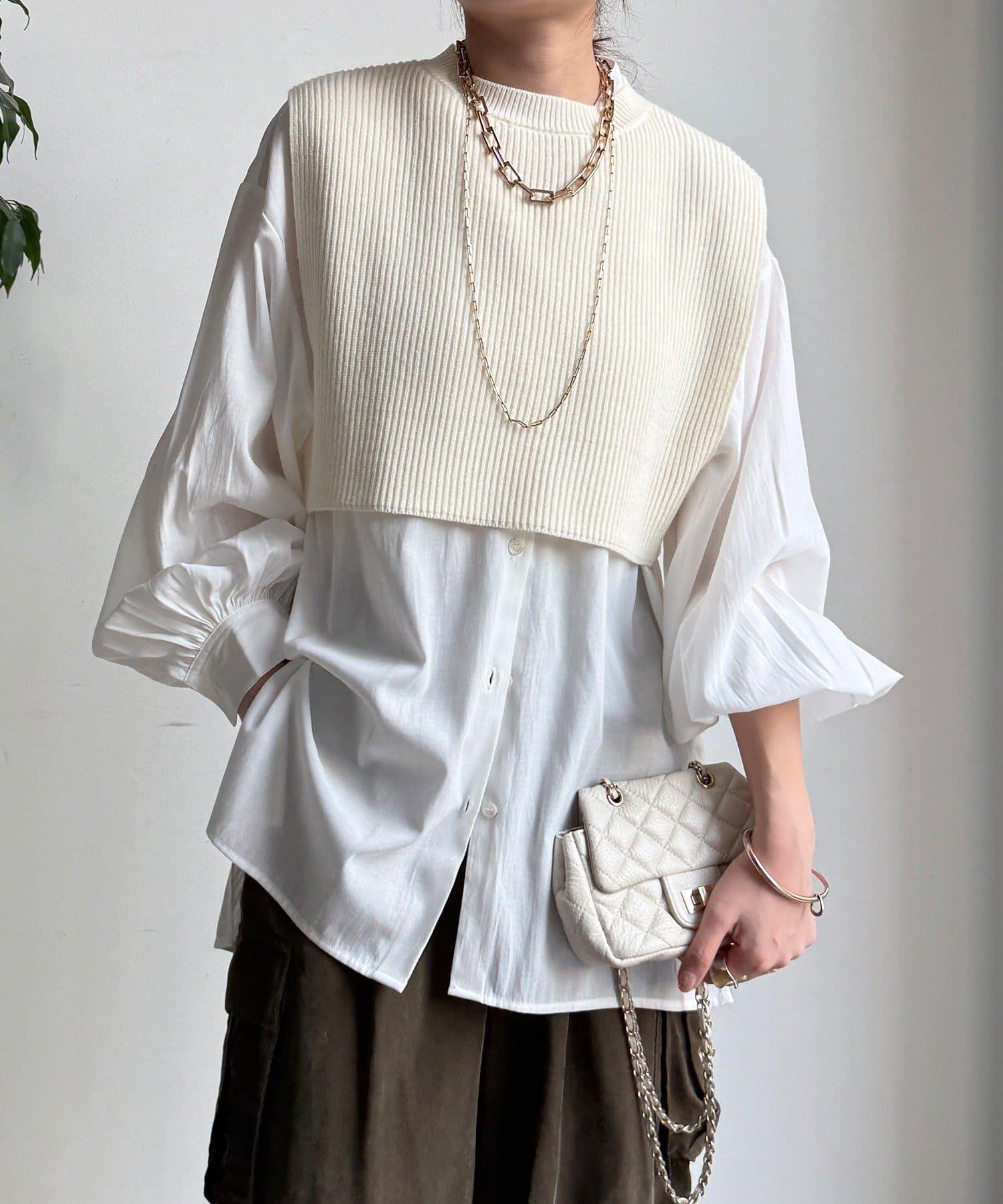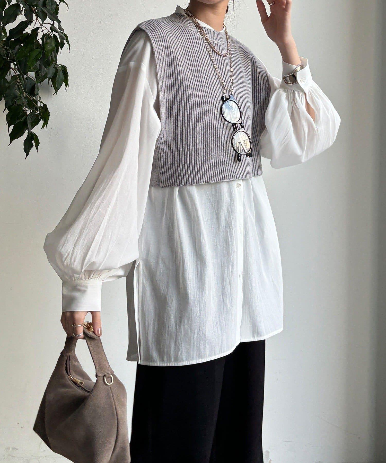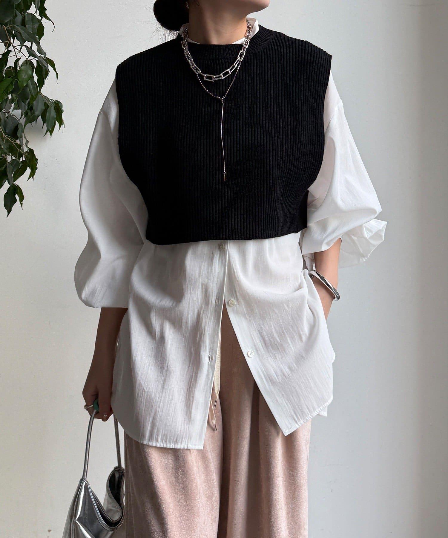 也可單獨使用!針織馬甲和襯衫套裝。