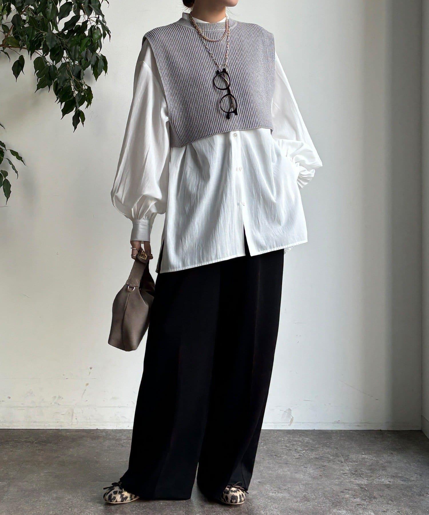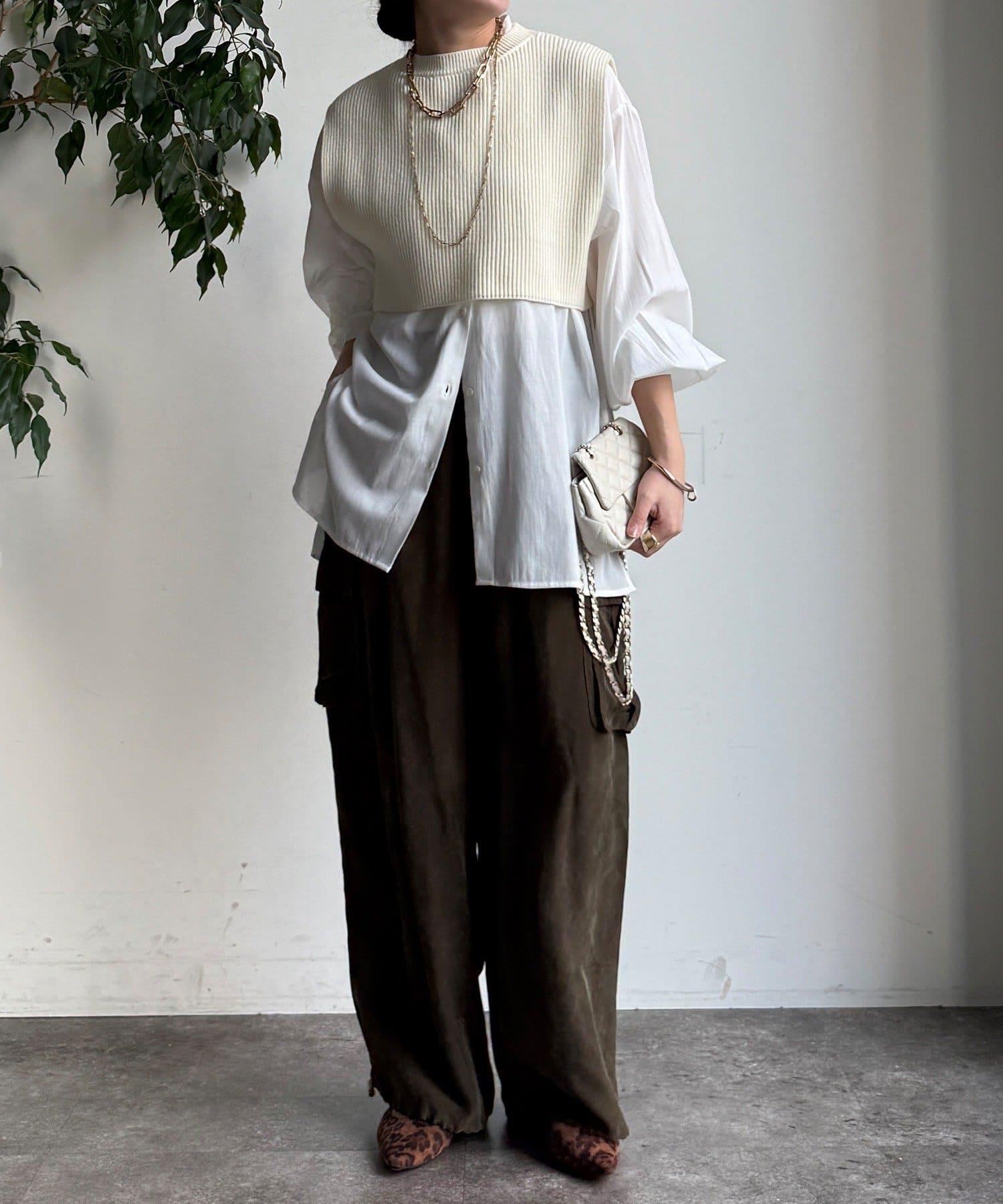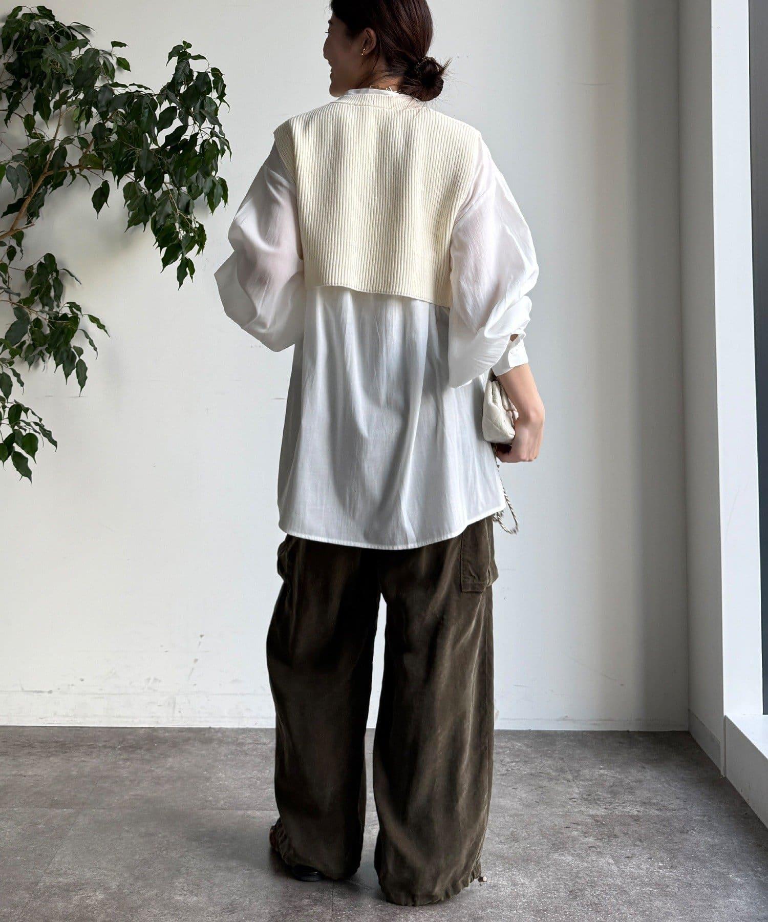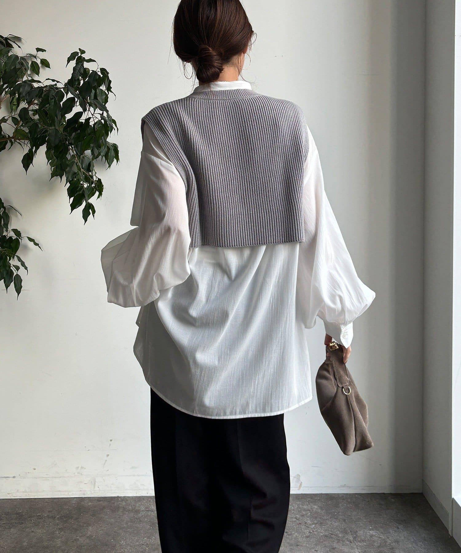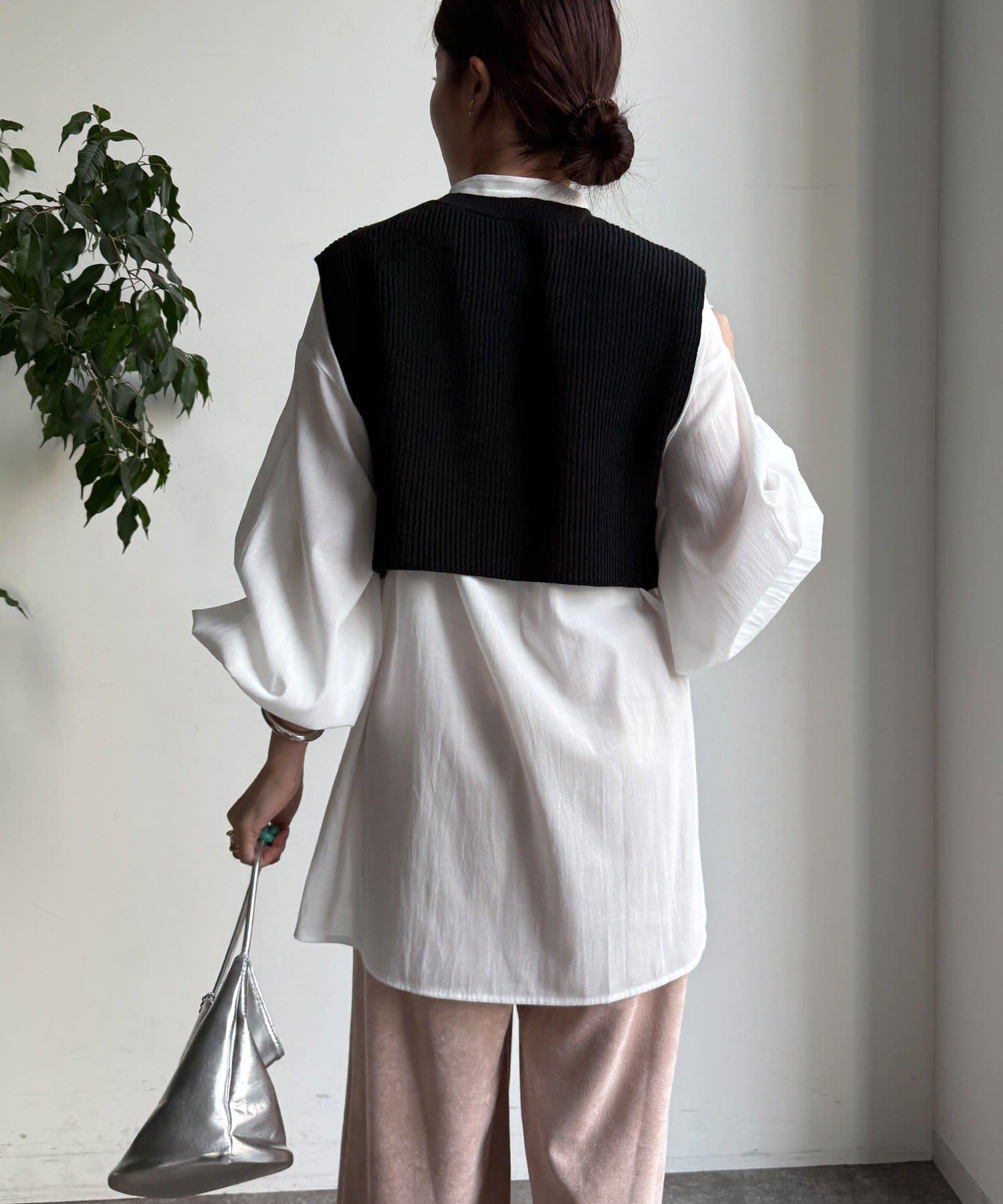 也可單獨使用!針織馬甲和襯衫套裝。