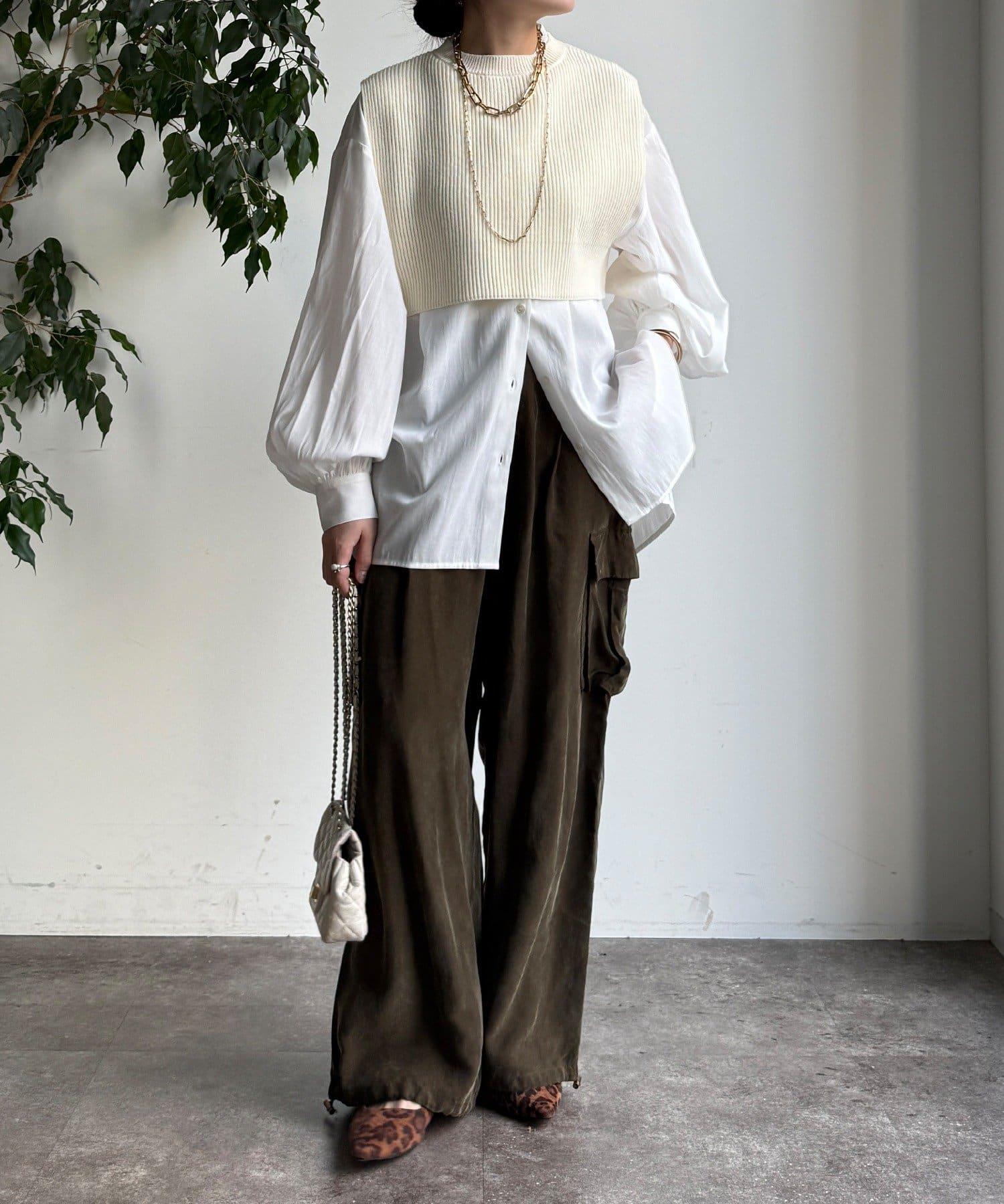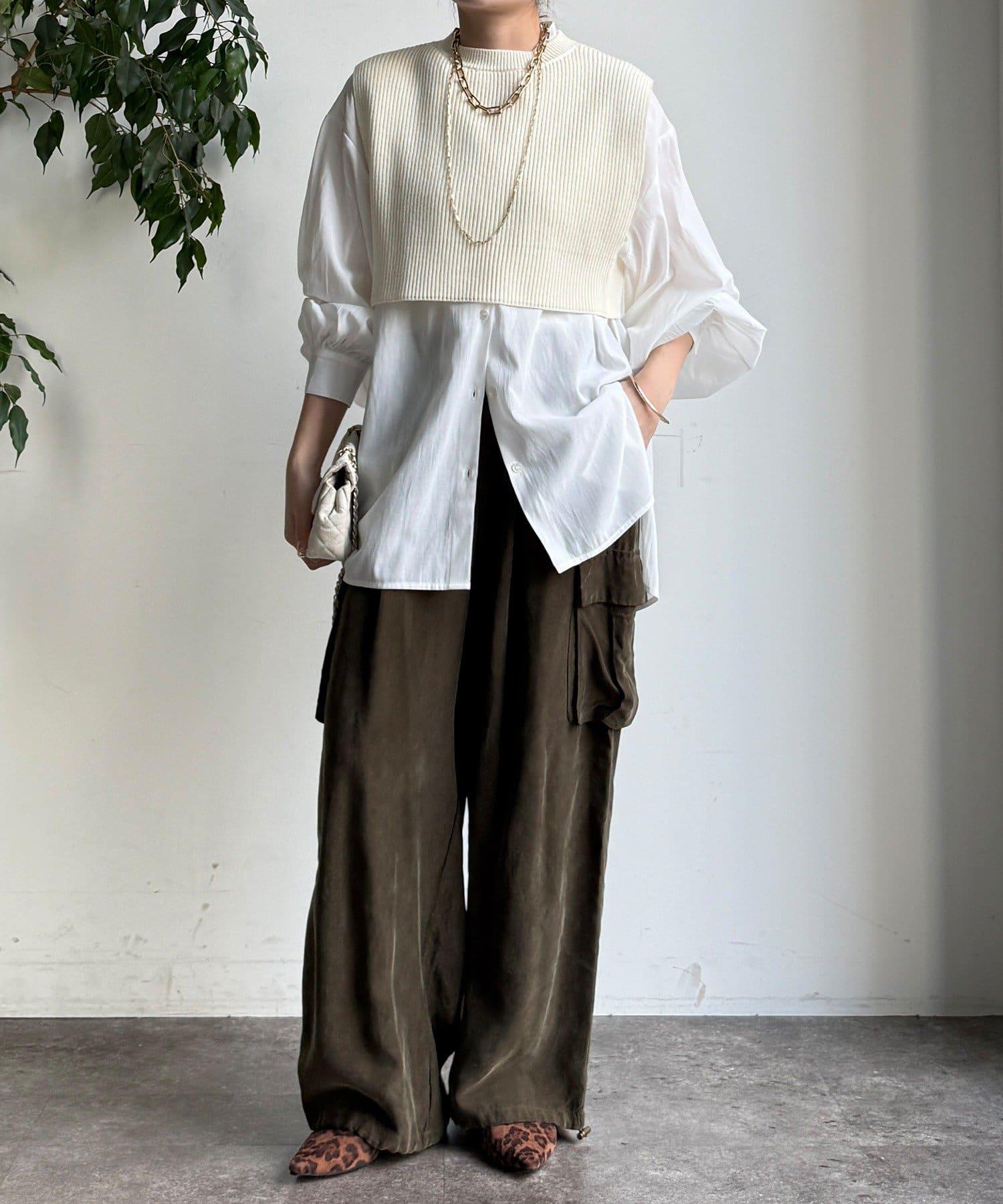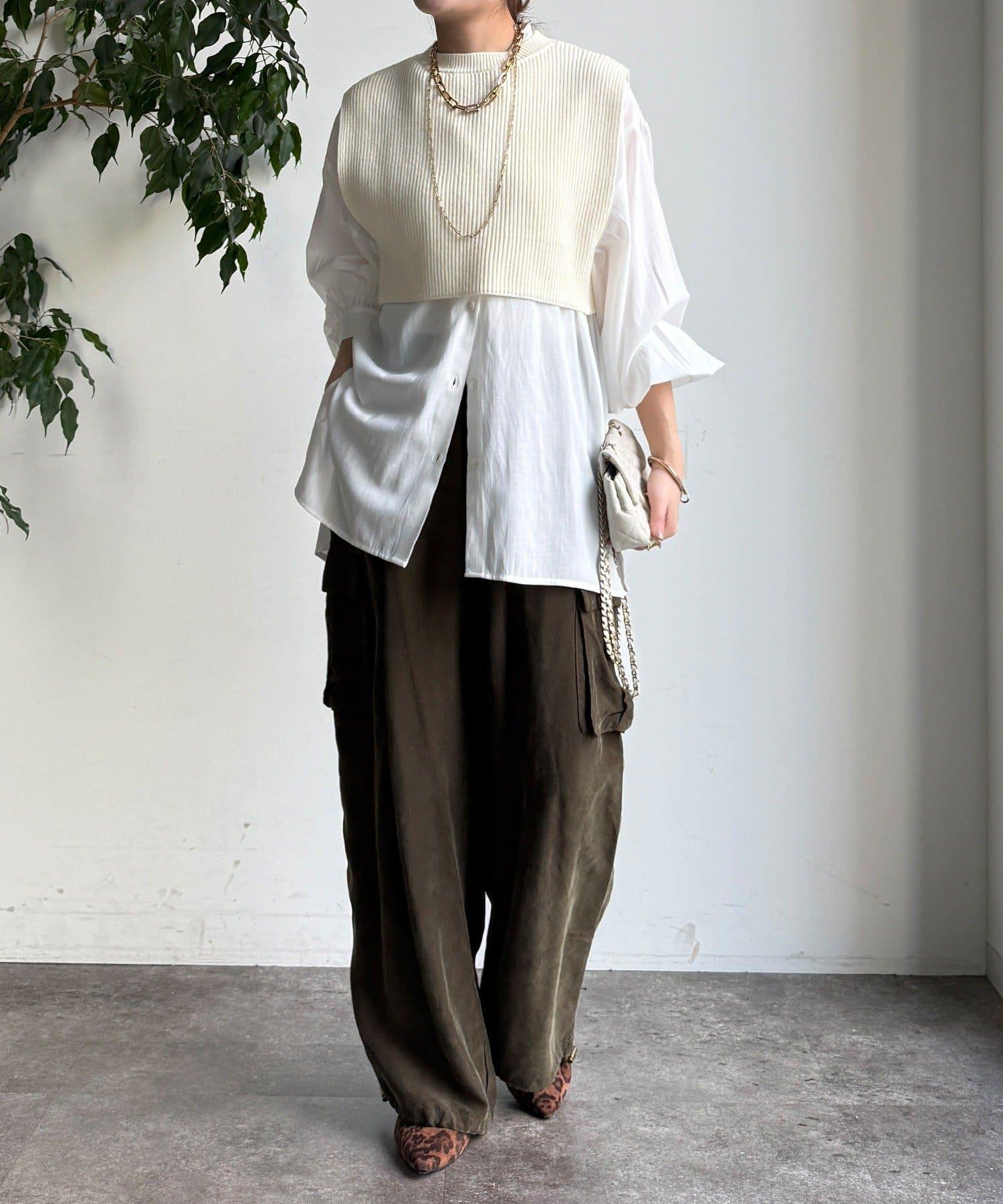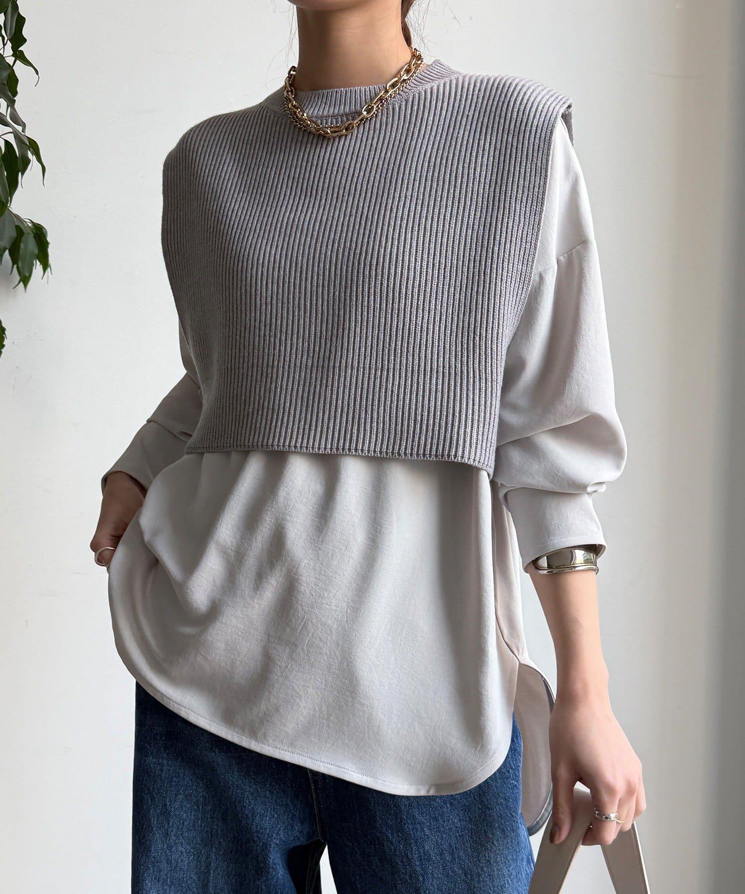 也可單獨使用!針織馬甲和襯衫套裝。