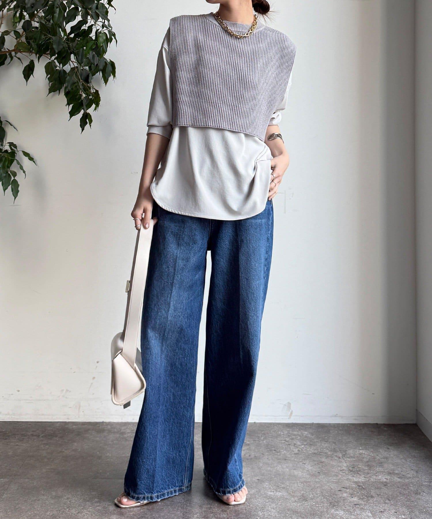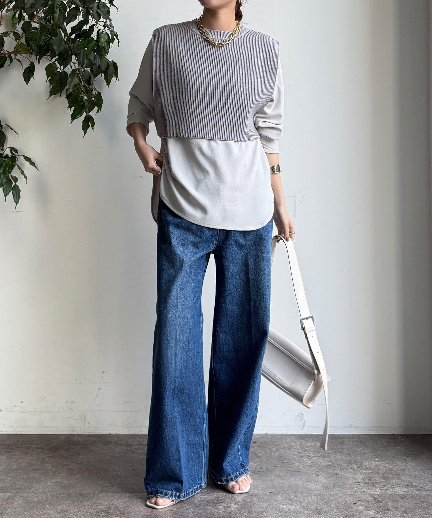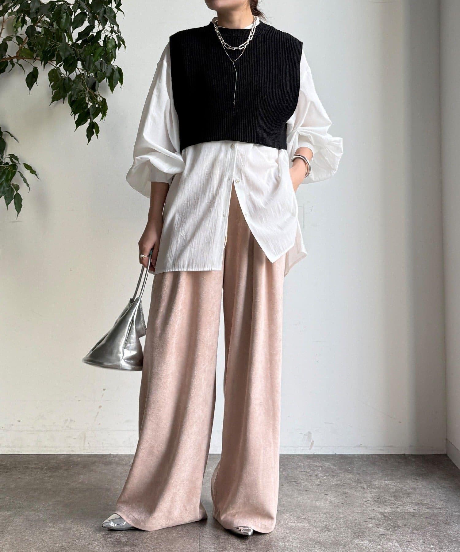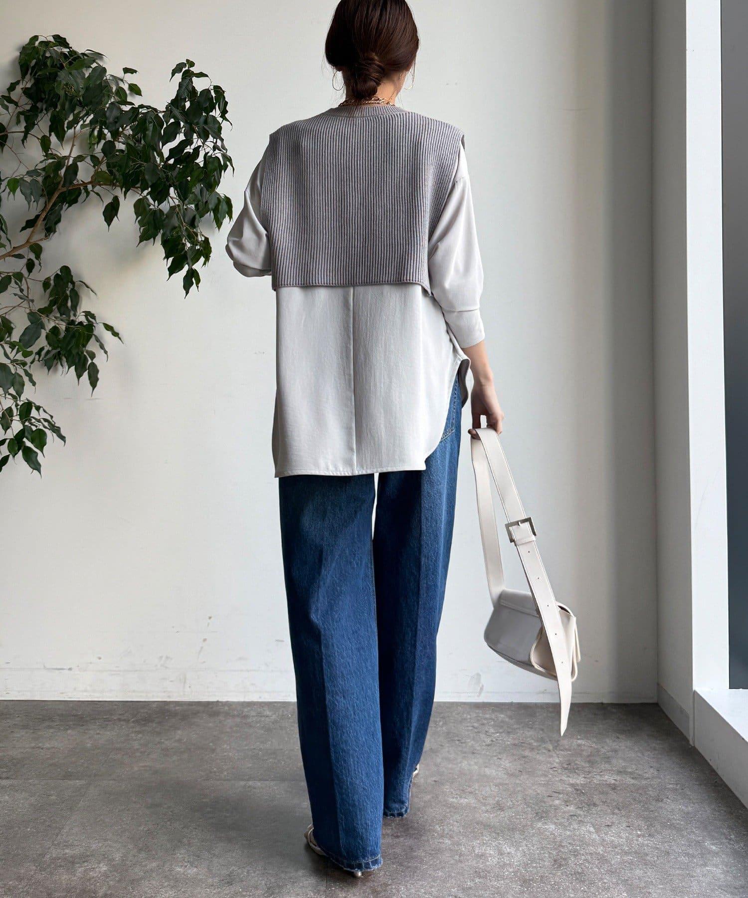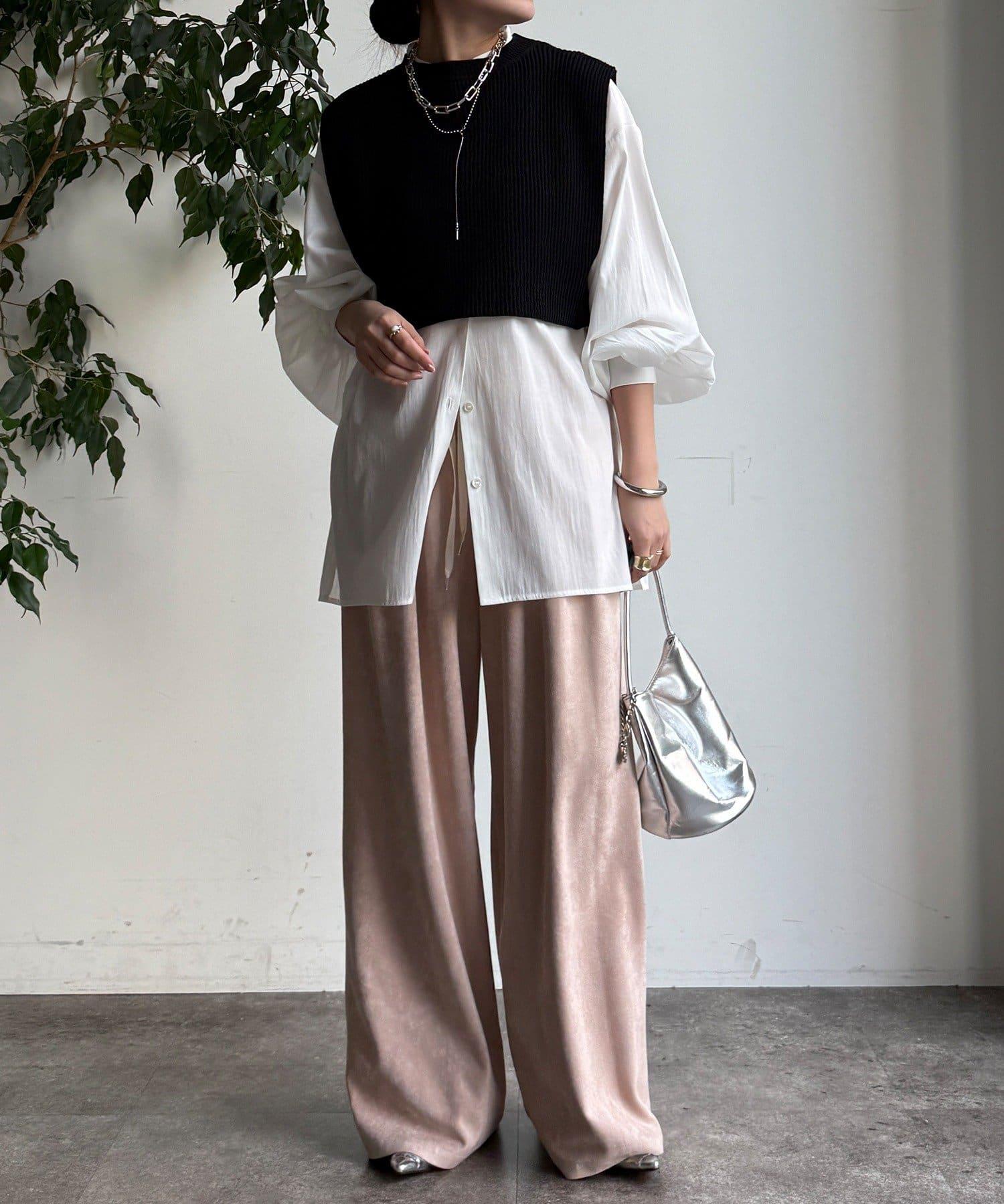 也可單獨使用!針織馬甲和襯衫套裝。
