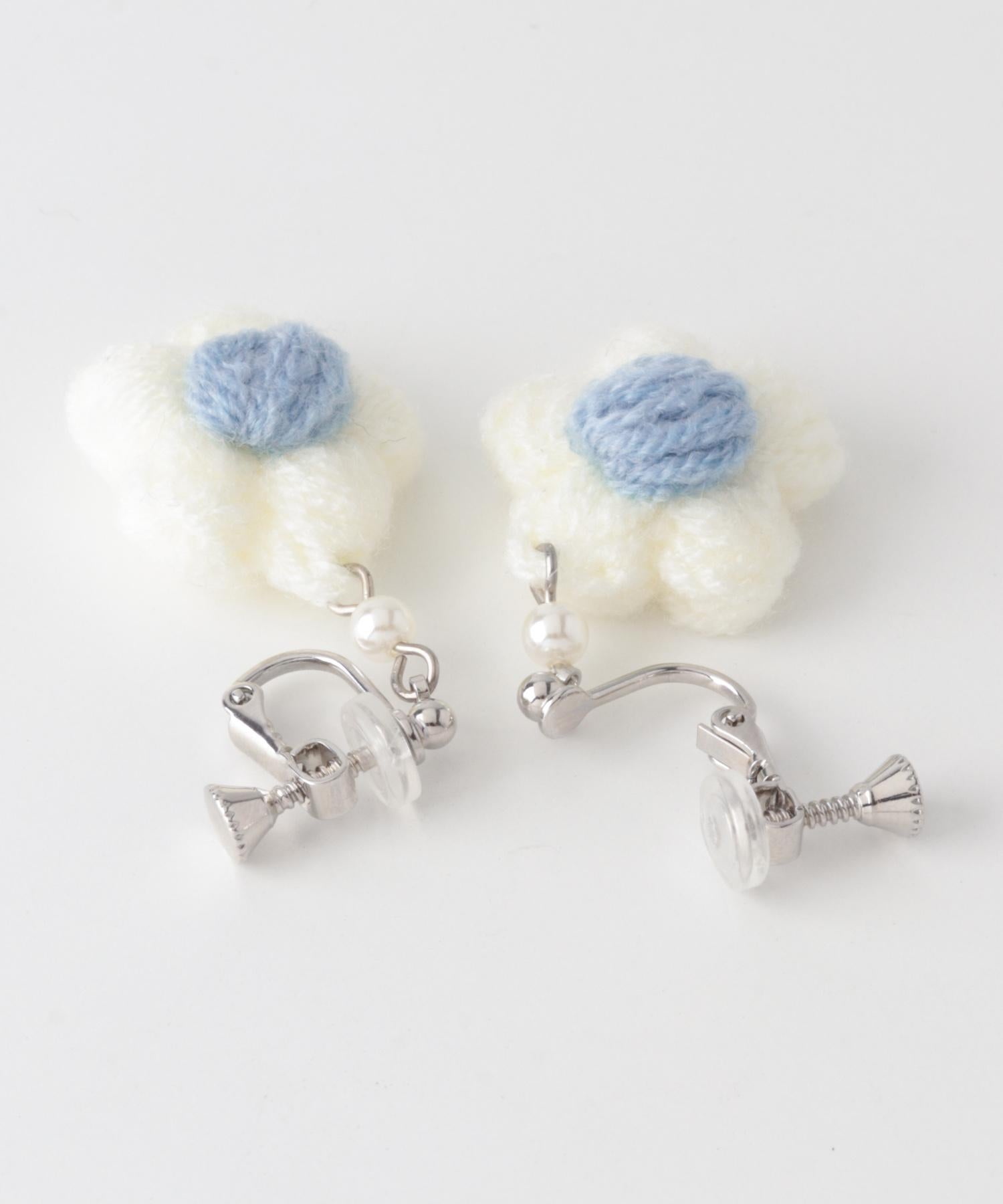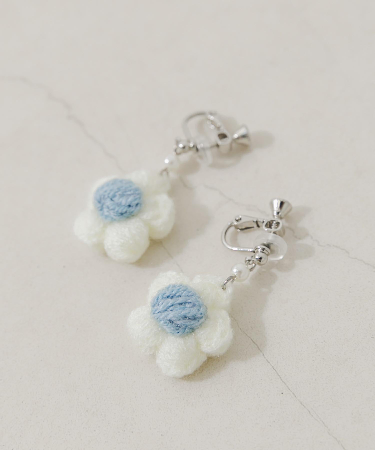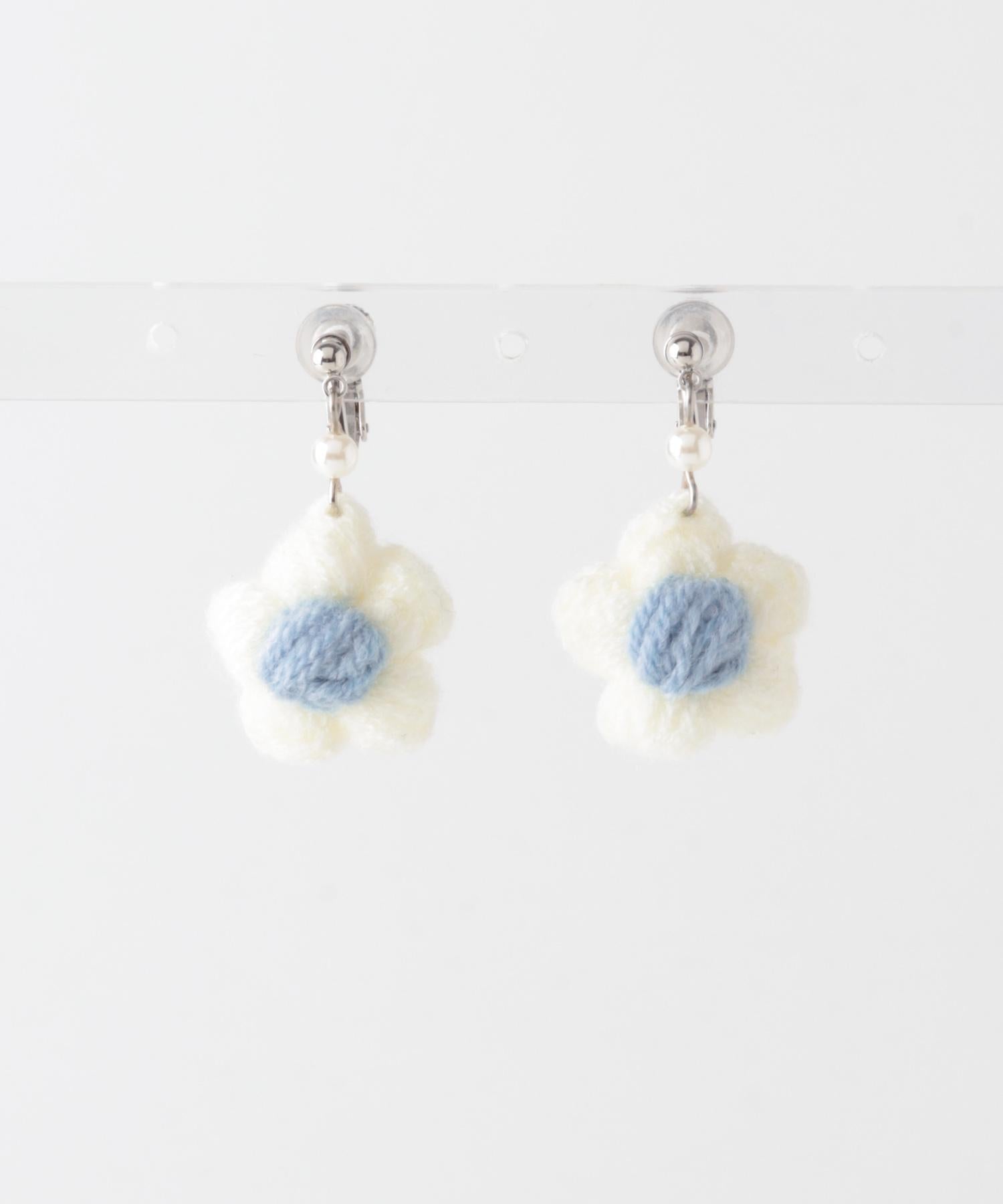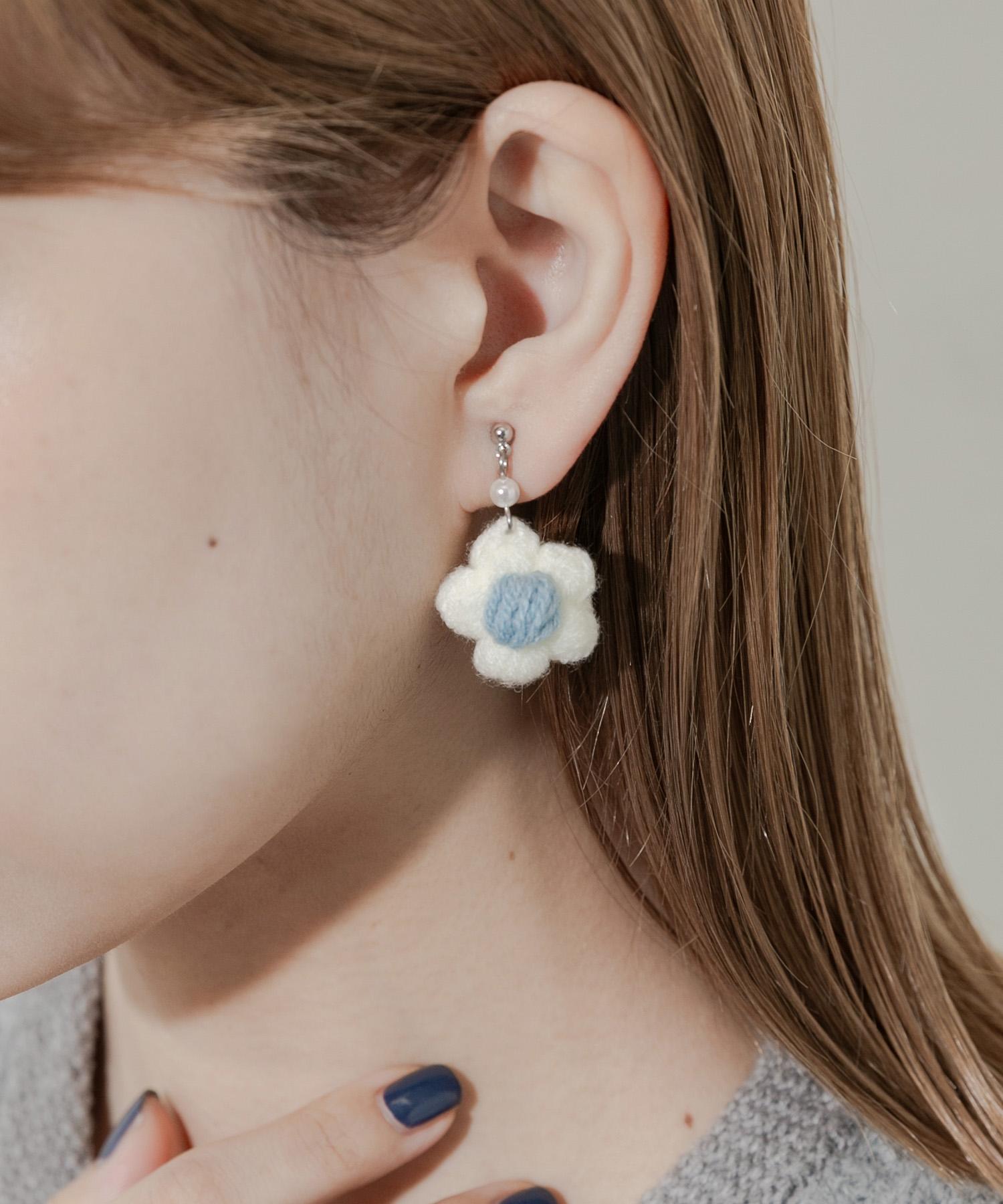 針織花朵耳夾