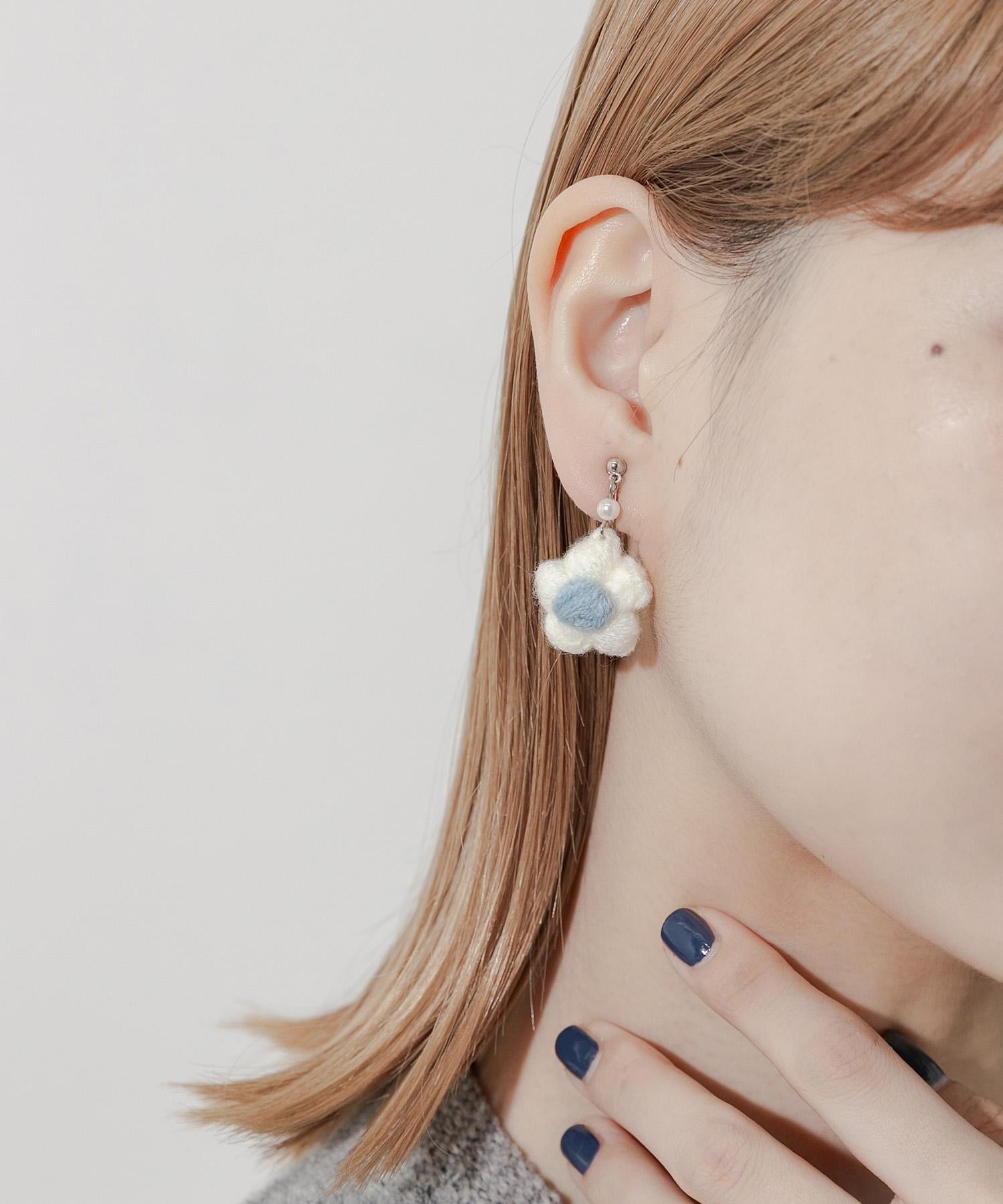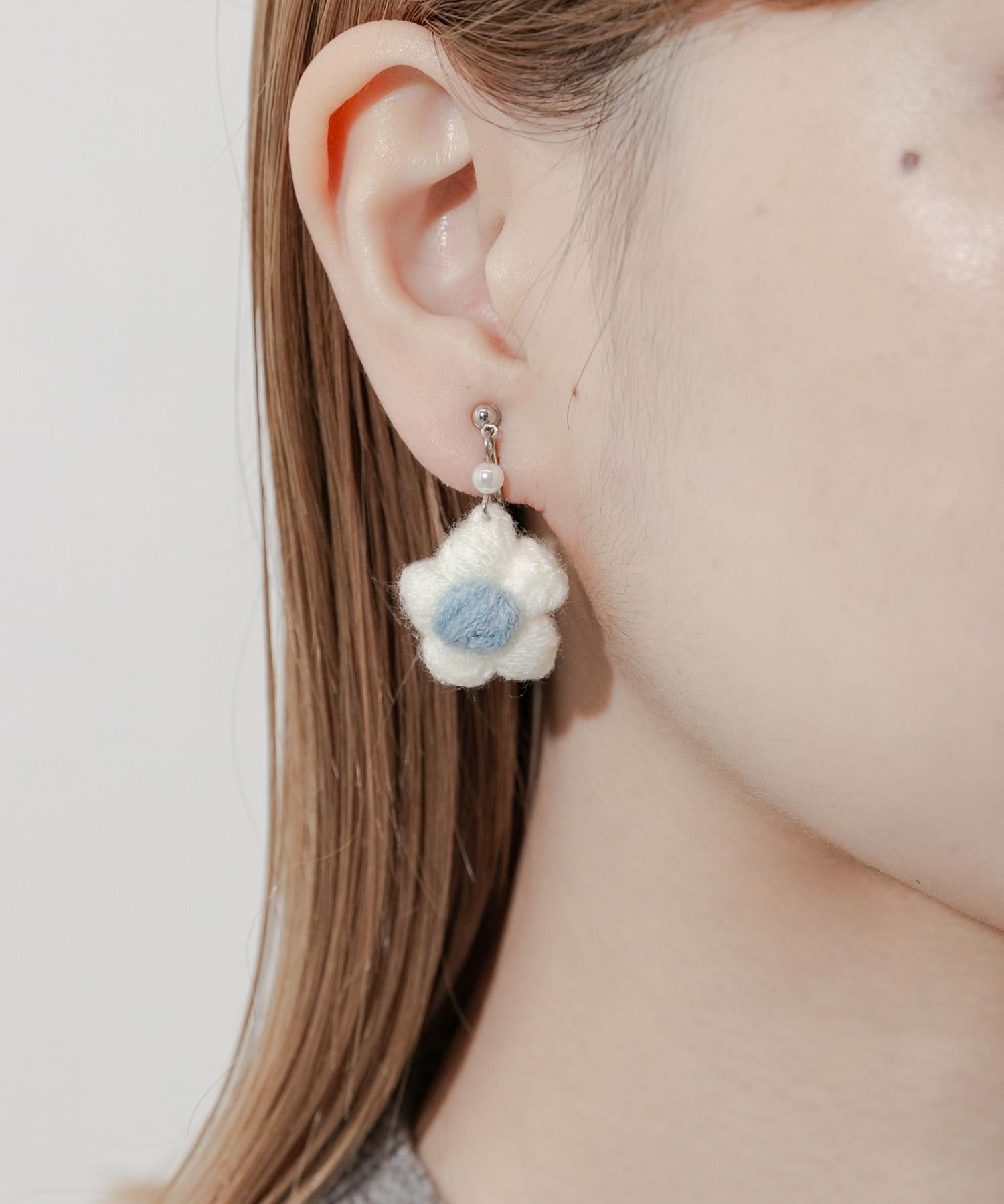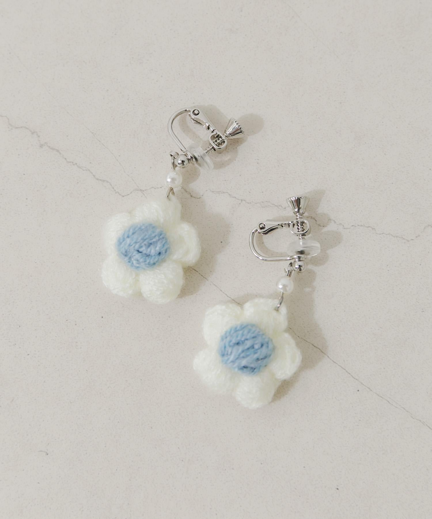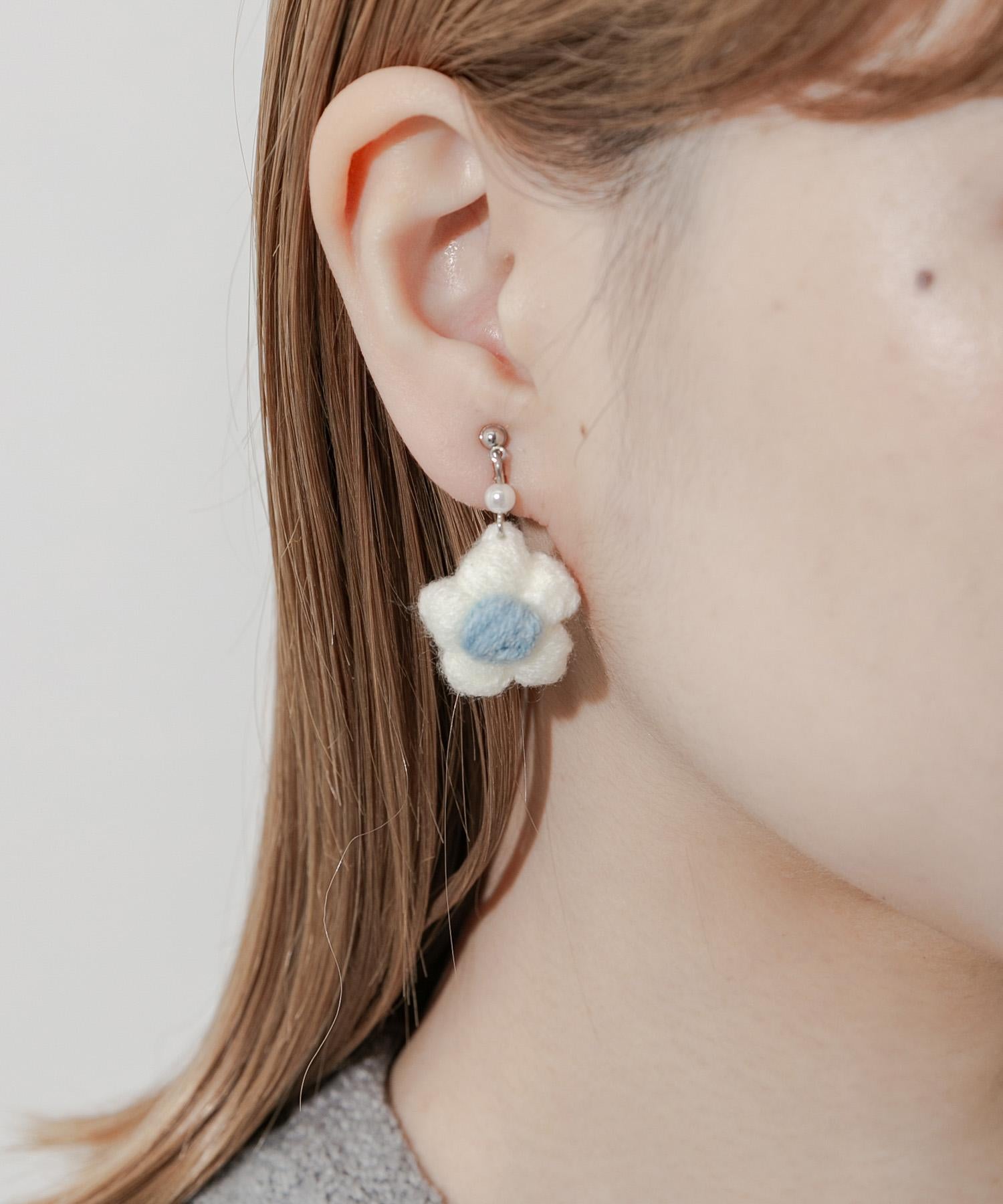 針織花朵耳夾