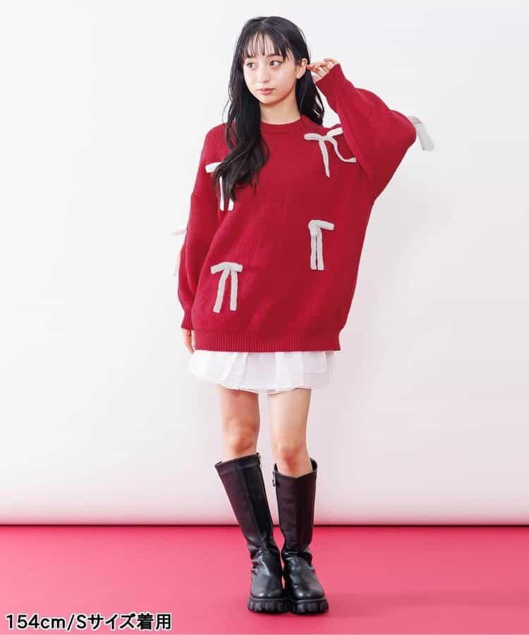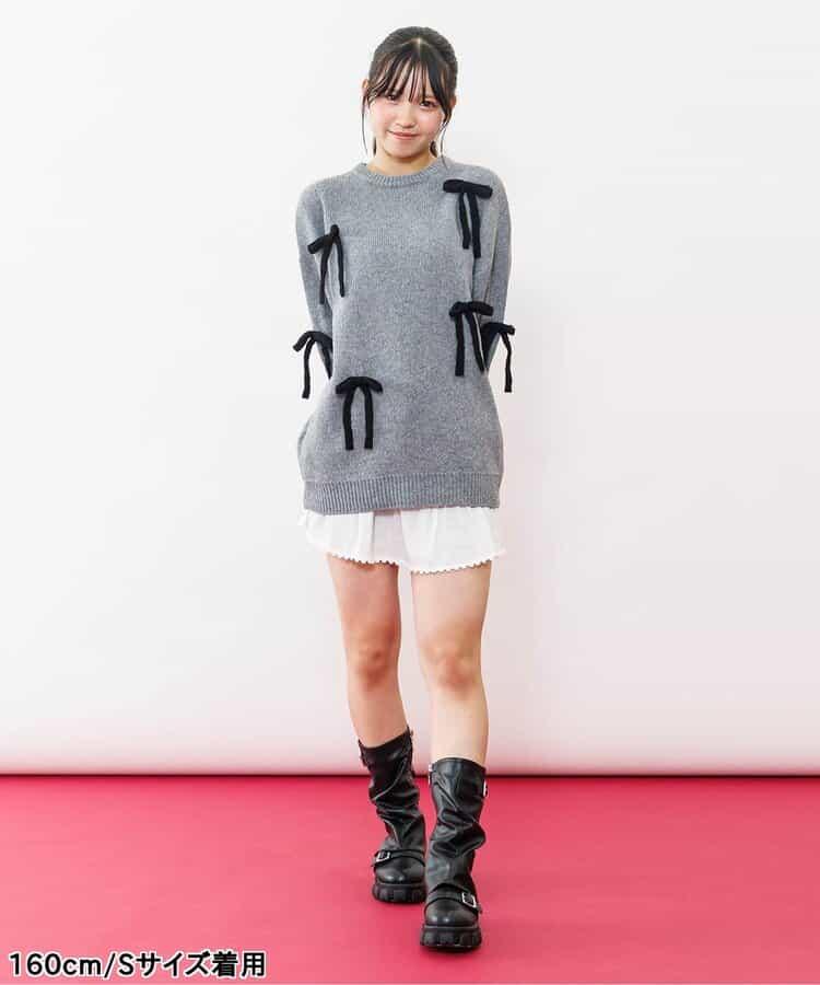 針織蝴蝶結迷你連身裙 "是 ALGY 的連身裙。
