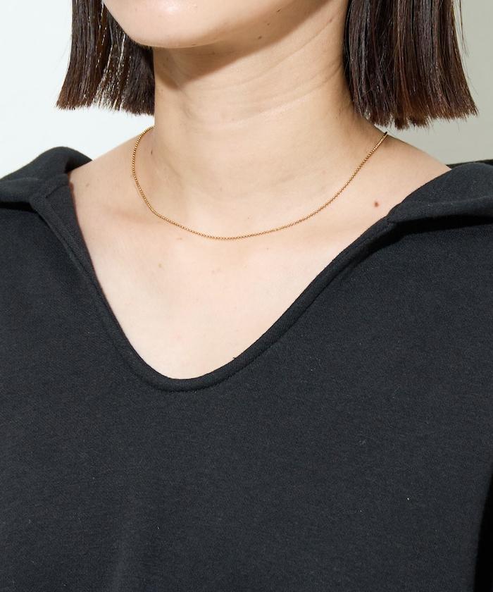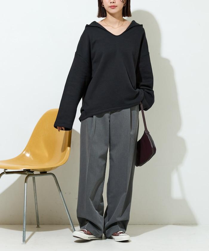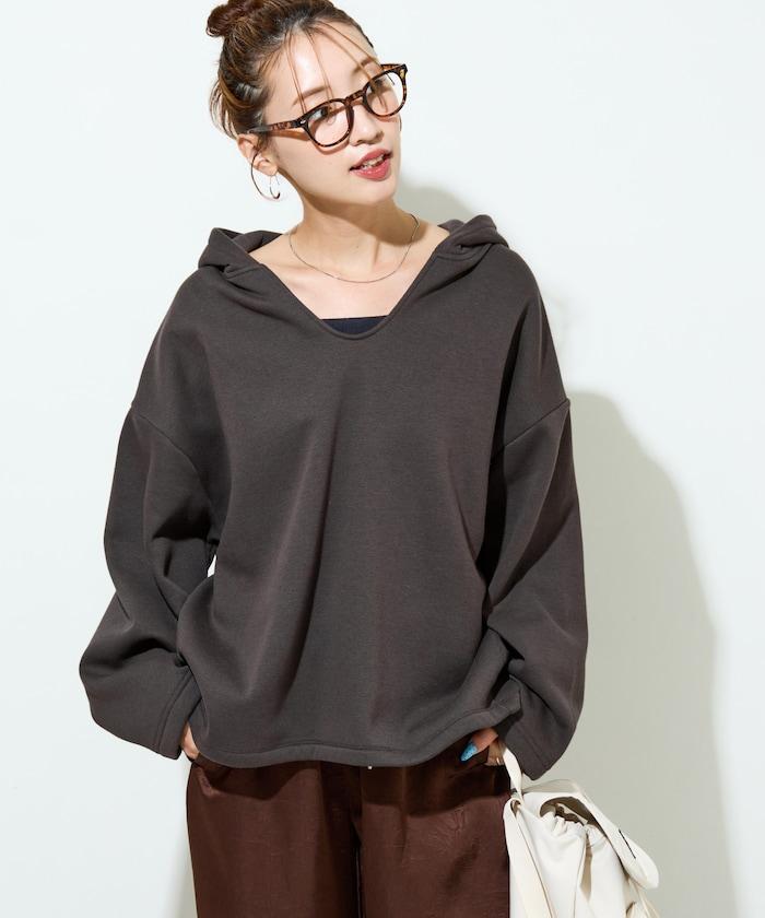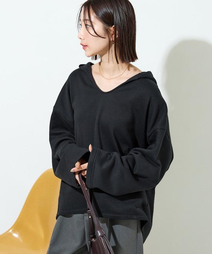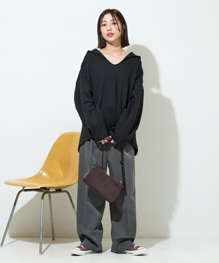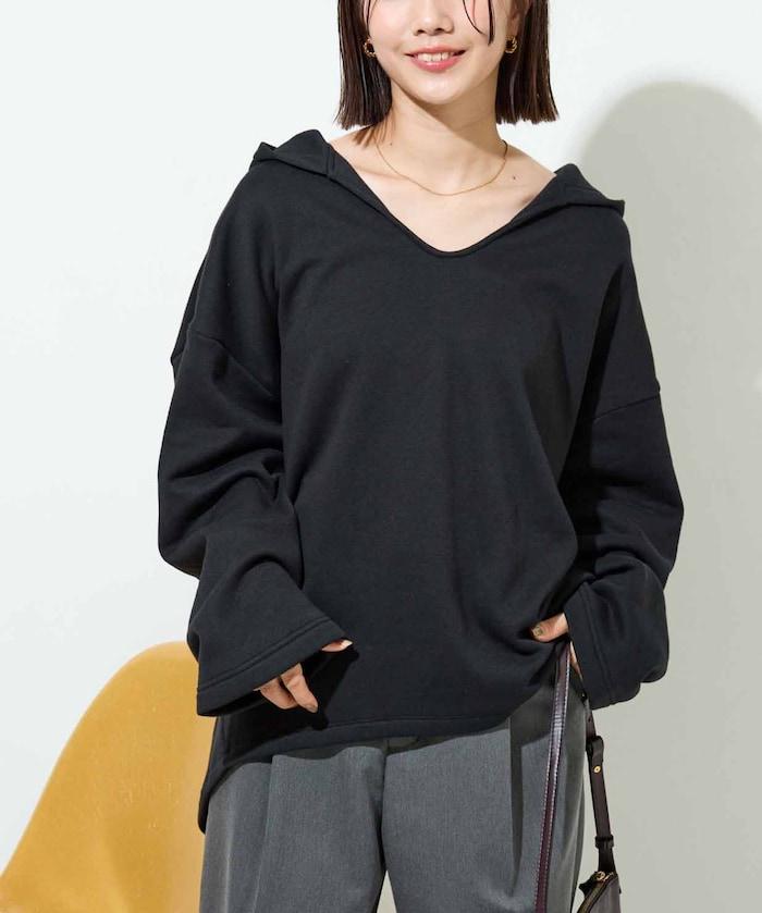 衣領周圍柔和的 V 領開口,使臉部產生一種鬆弛感,也有小臉效果。