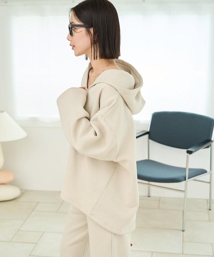 連帽衫的背部具有極佳的皮膚觸感,能輕柔地包裹身體,抵禦冬日的寒冷。