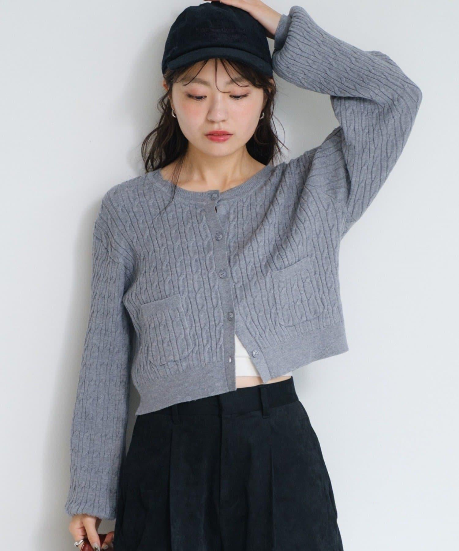 開襟羊毛衫質地柔軟蓬鬆,採用簡單而華麗的電纜編織。