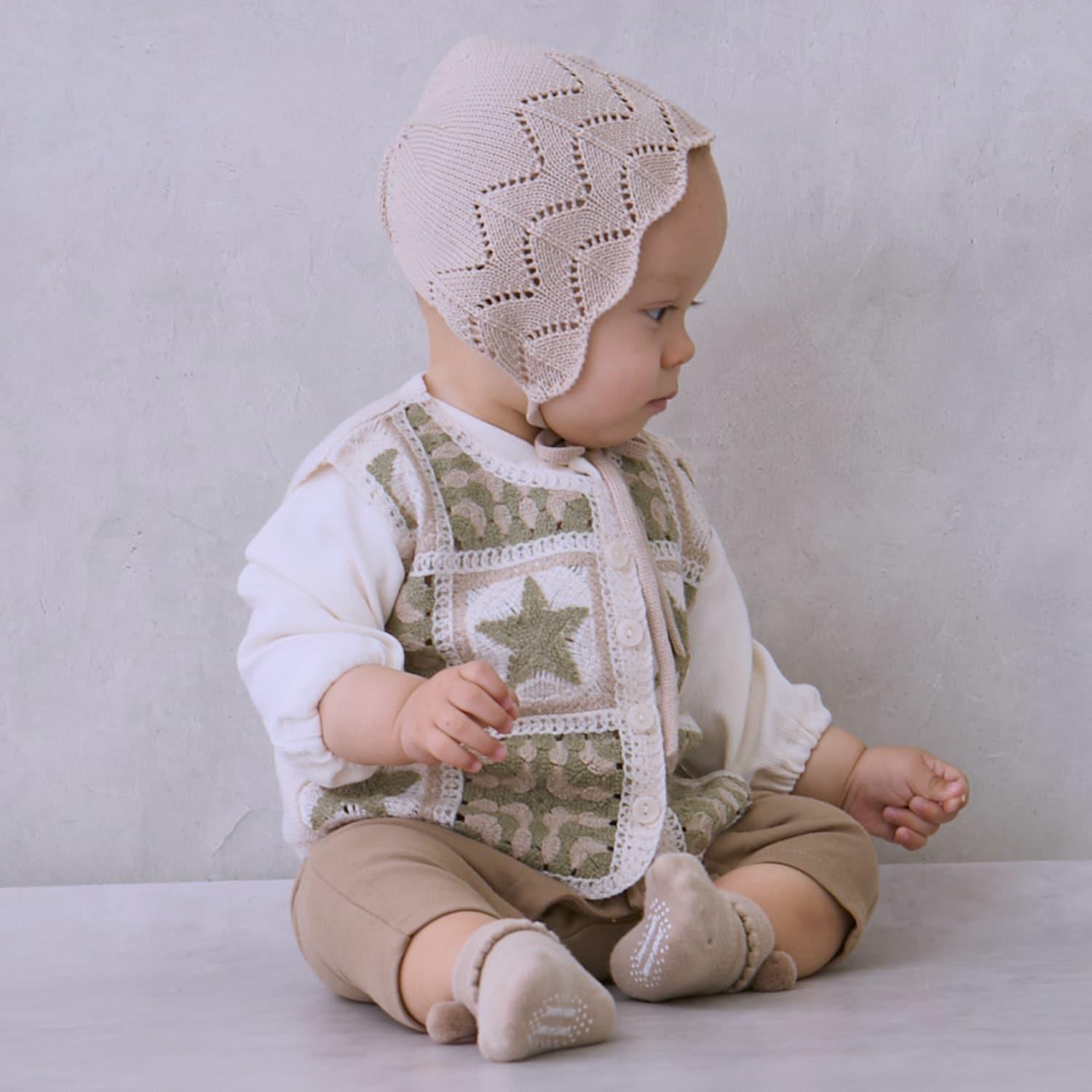 它由柔軟的針織材料製成,能輕柔地包裹住頭部。