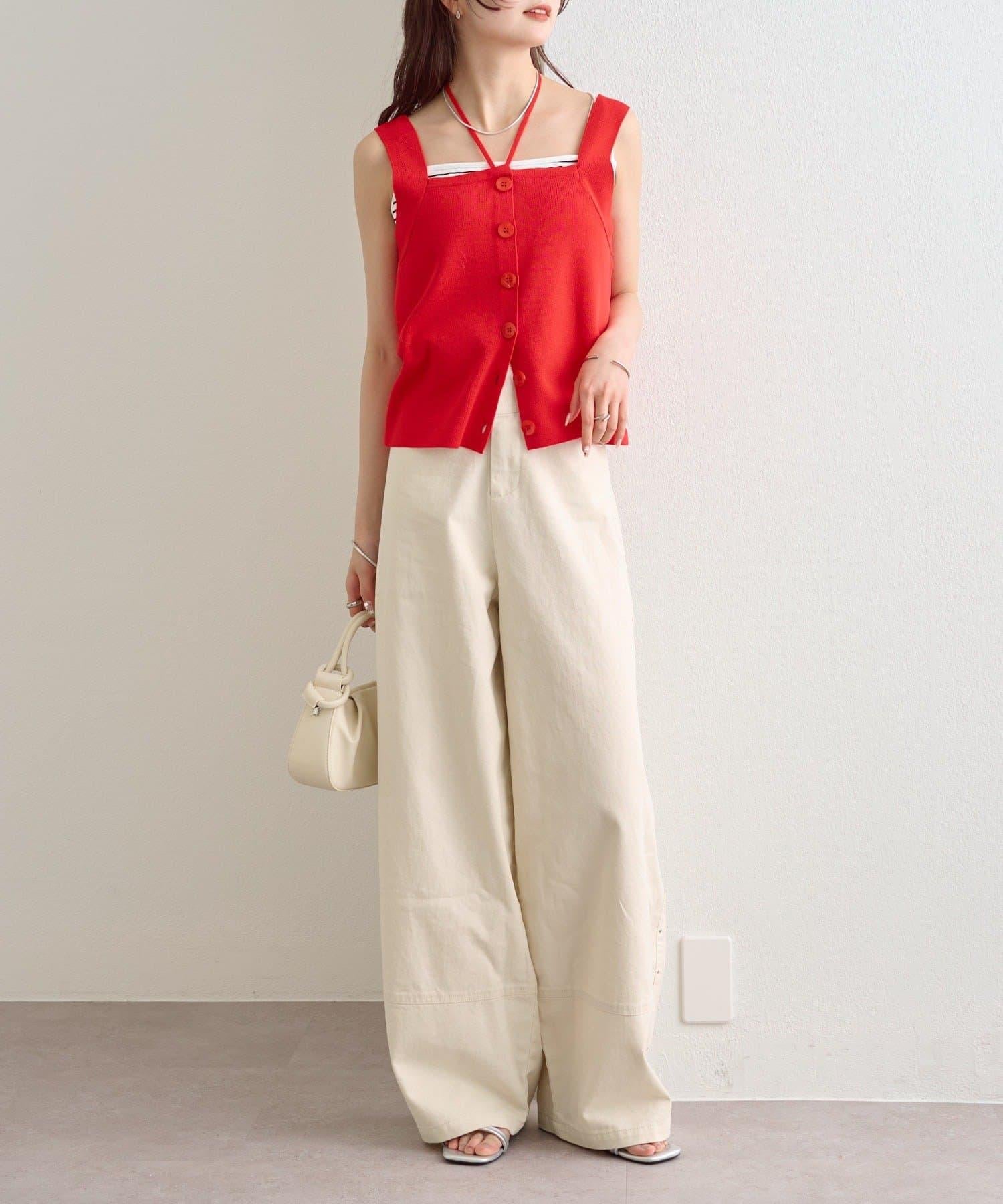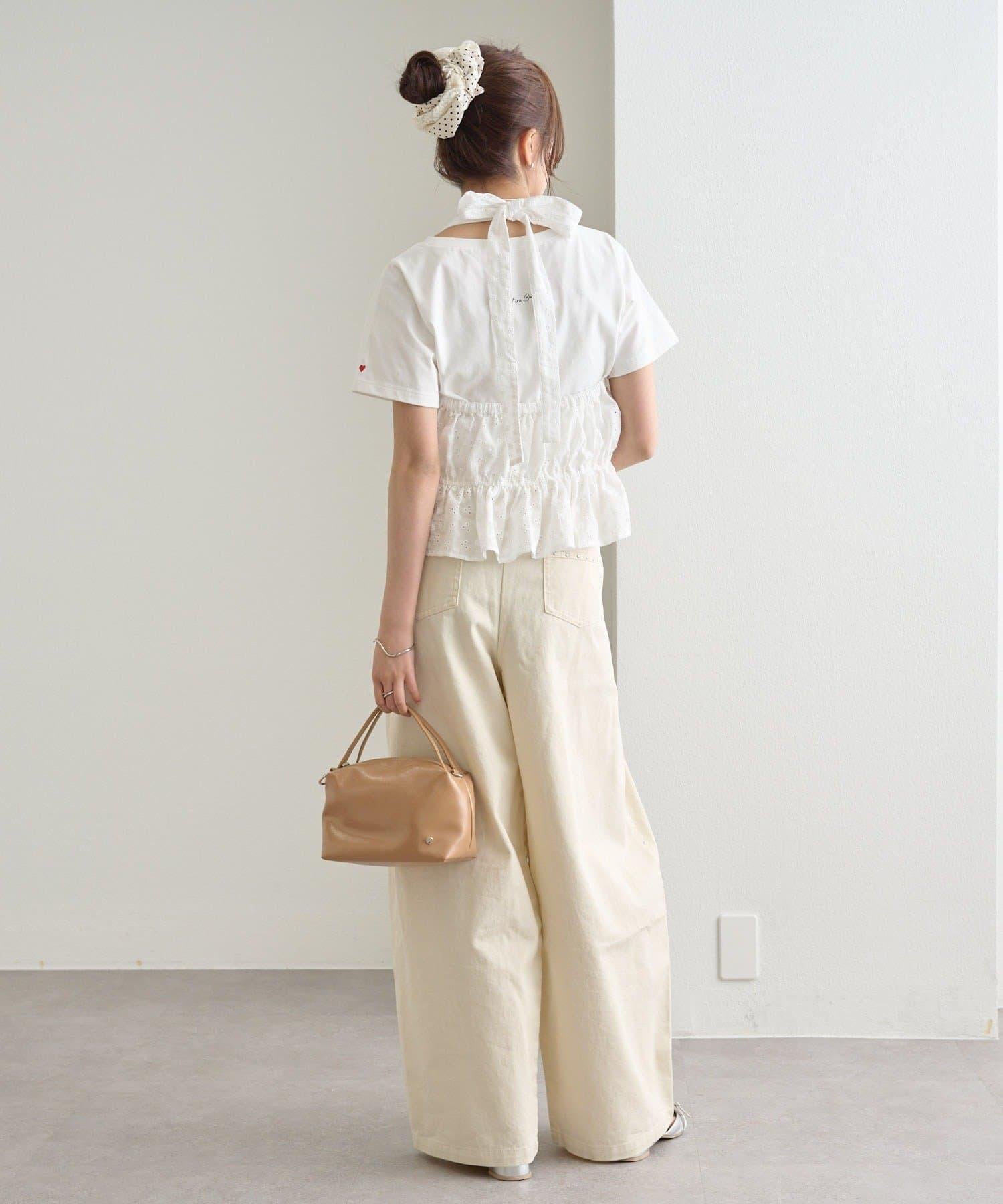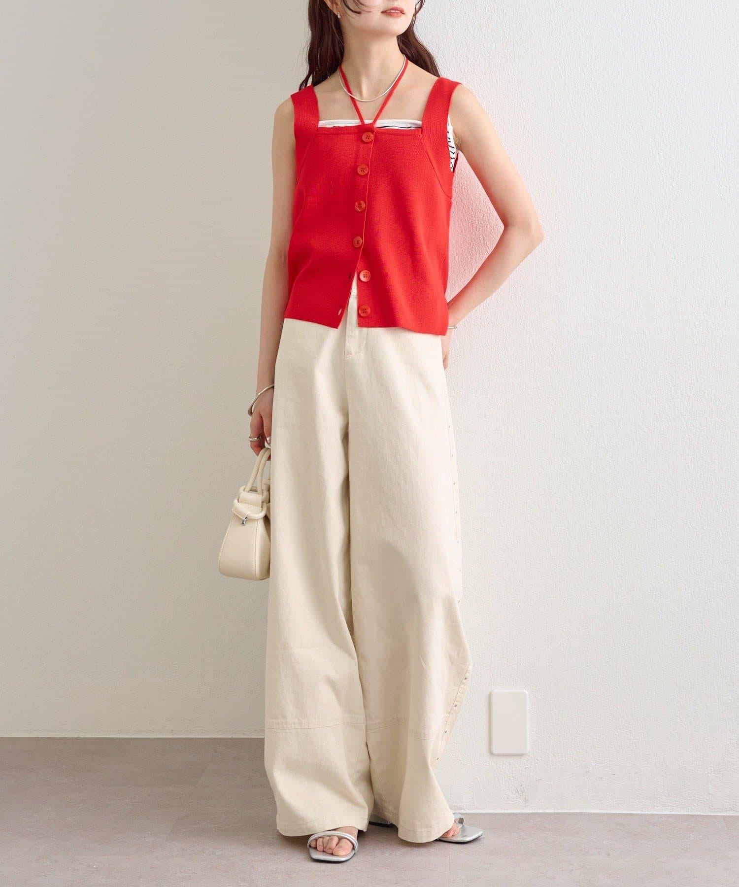 長褲的寬大廓形非常顯眼,與小巧的上衣搭配起來非常平衡。