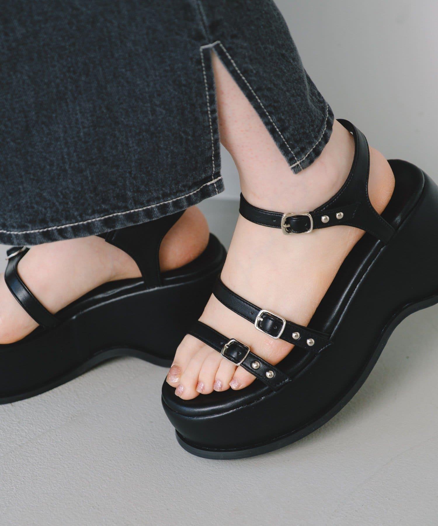 厚底涼鞋,迷人的鉚釘設計恰到好處。