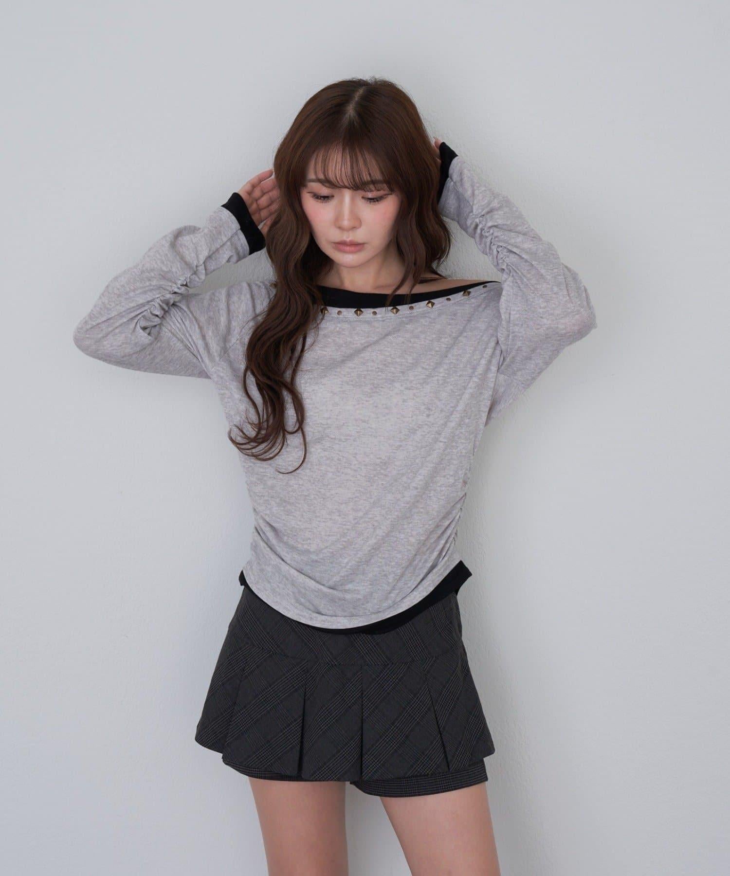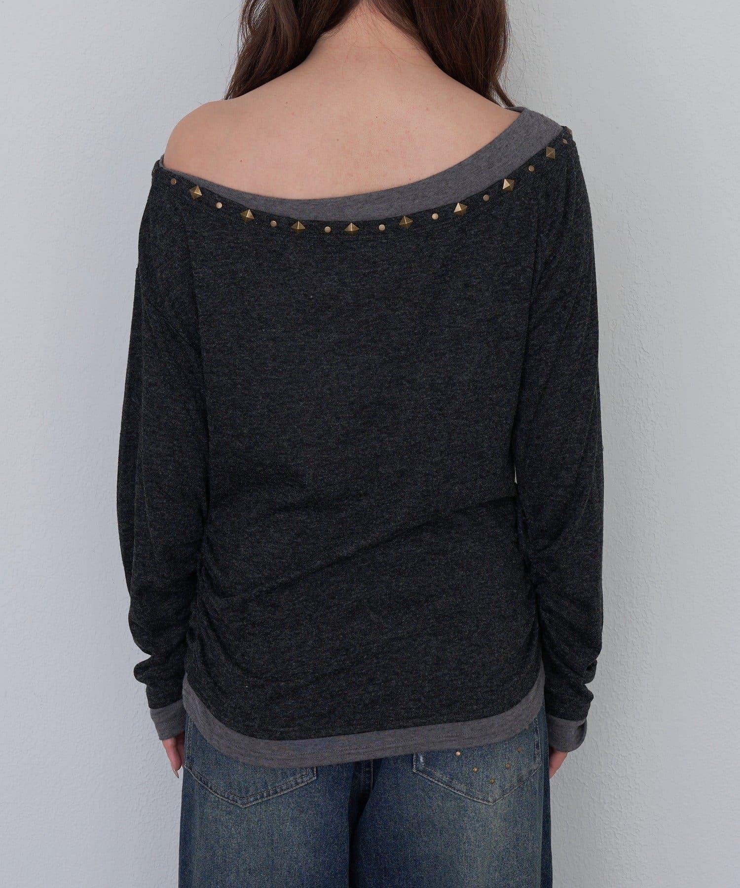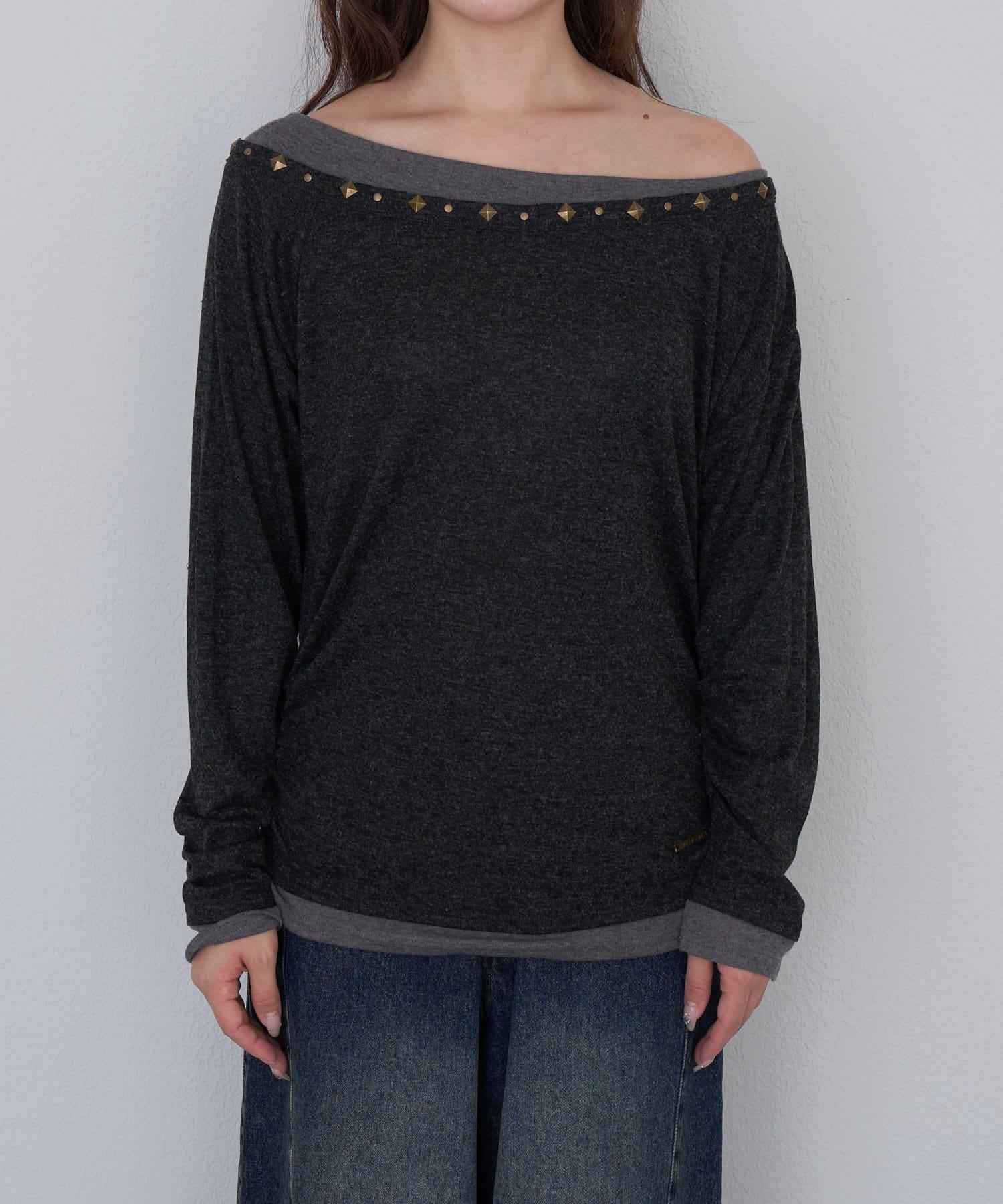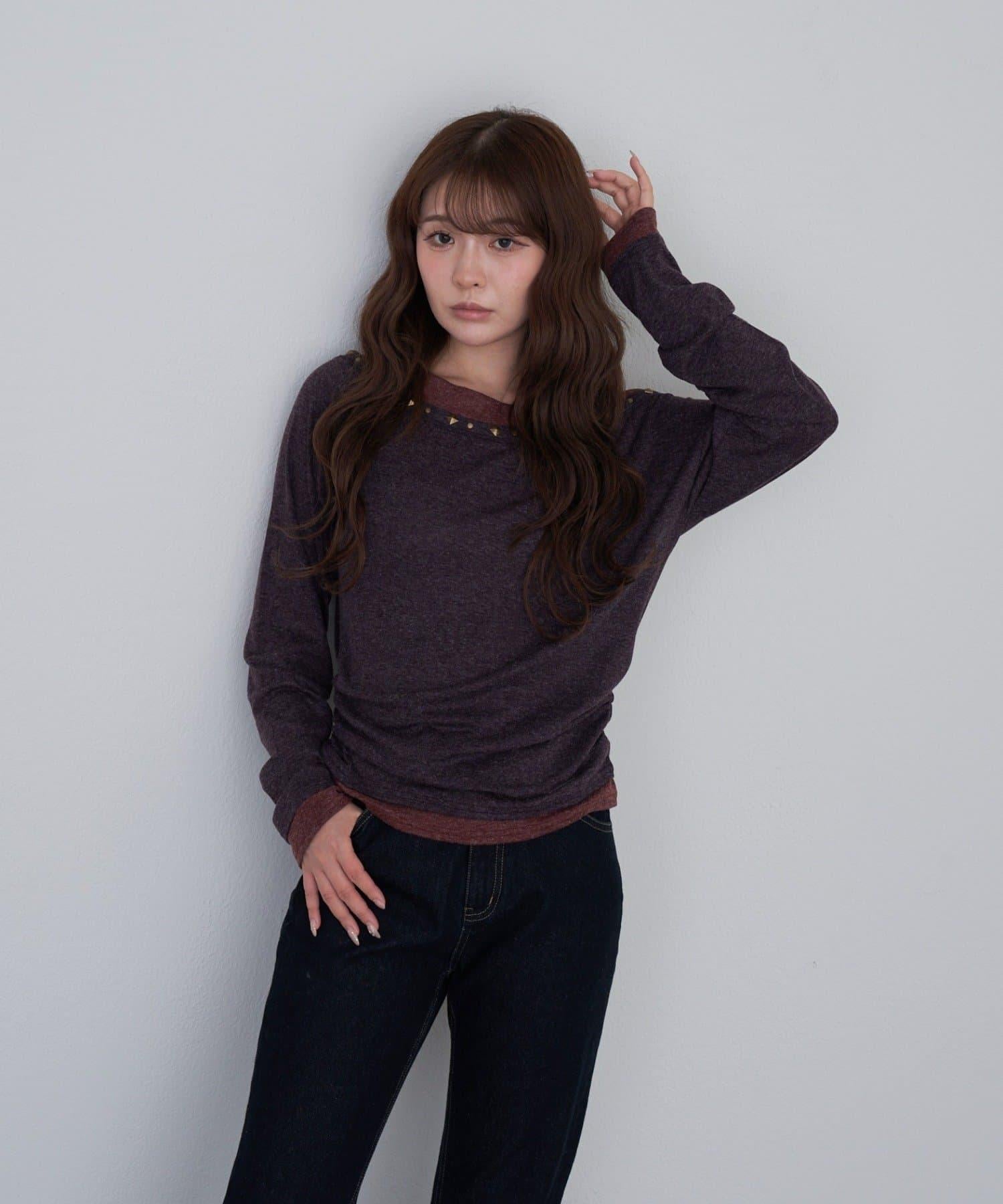 鉚釘裝飾疊穿長袖T恤