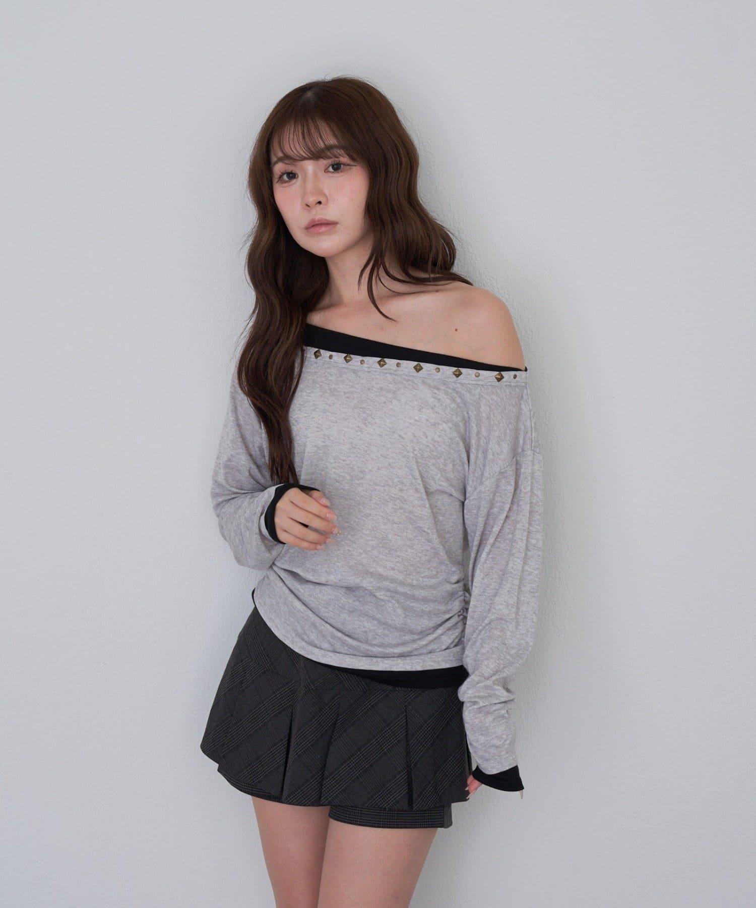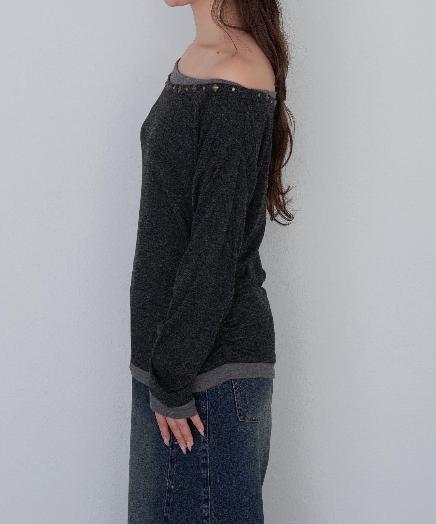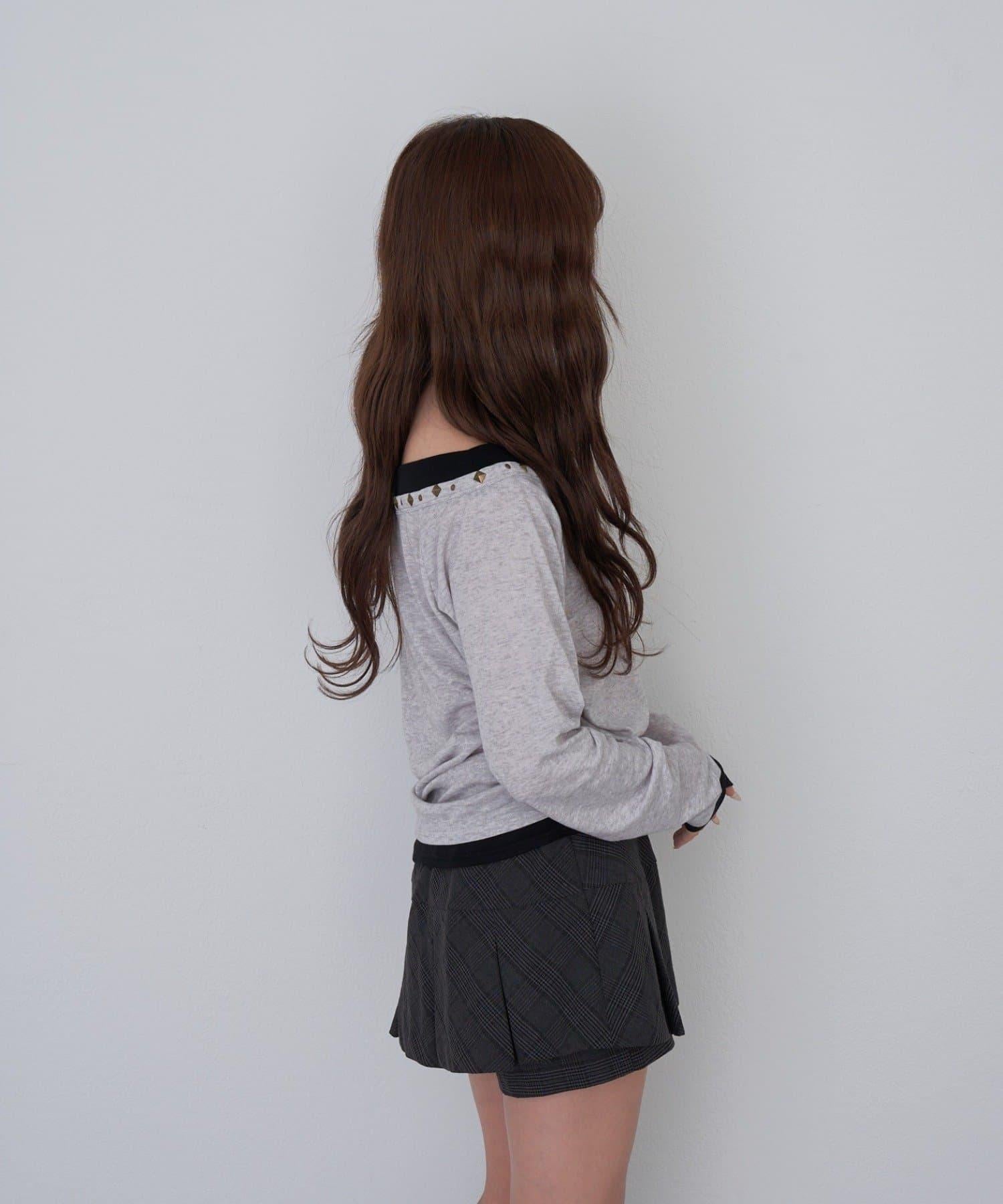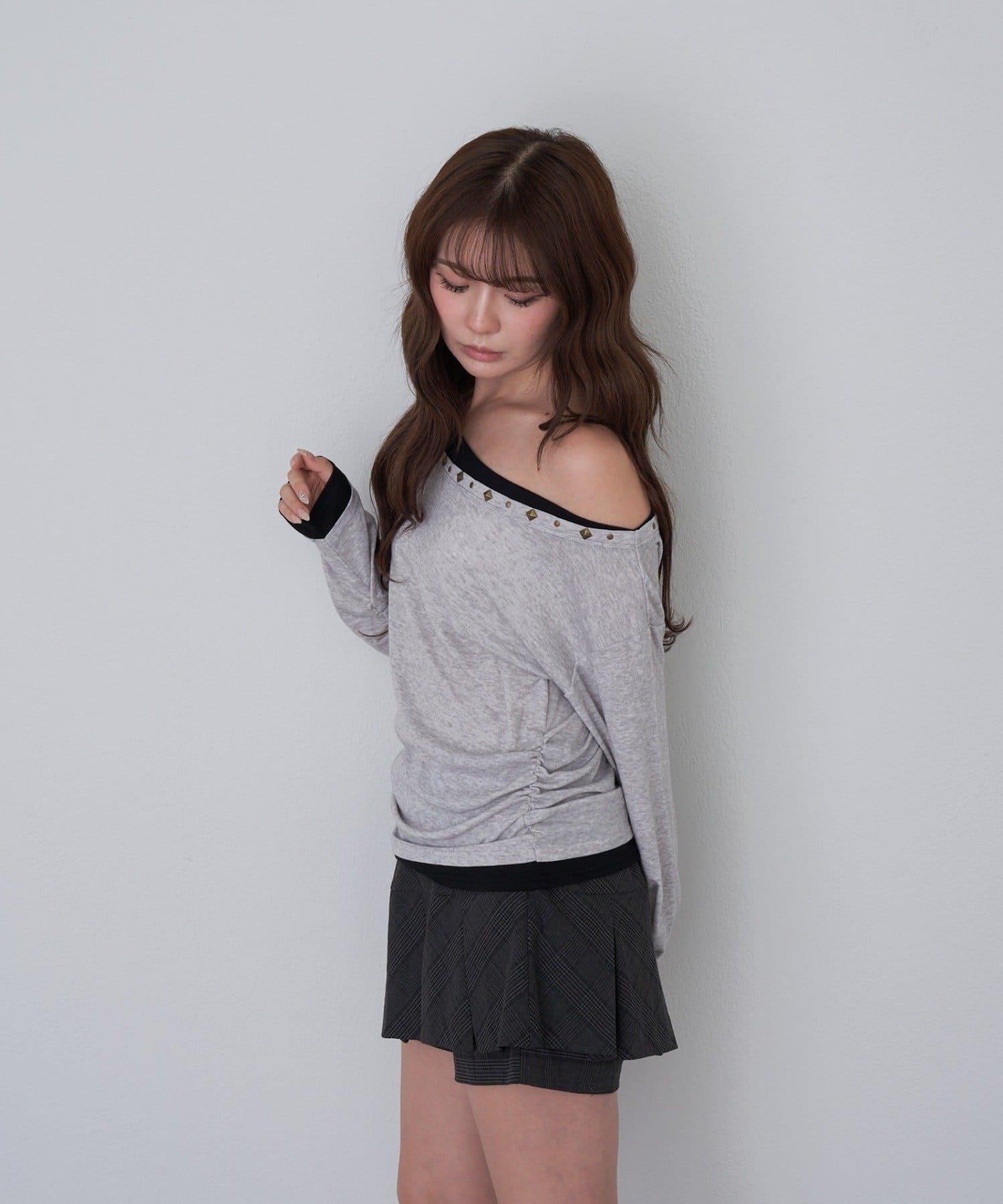 鉚釘裝飾疊穿長袖T恤