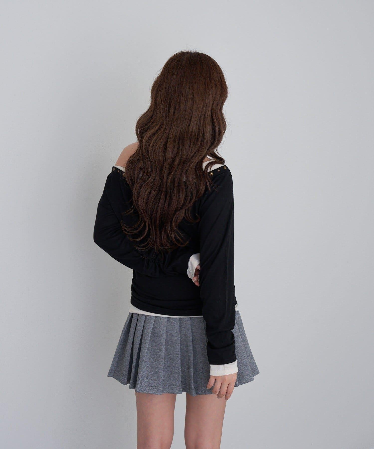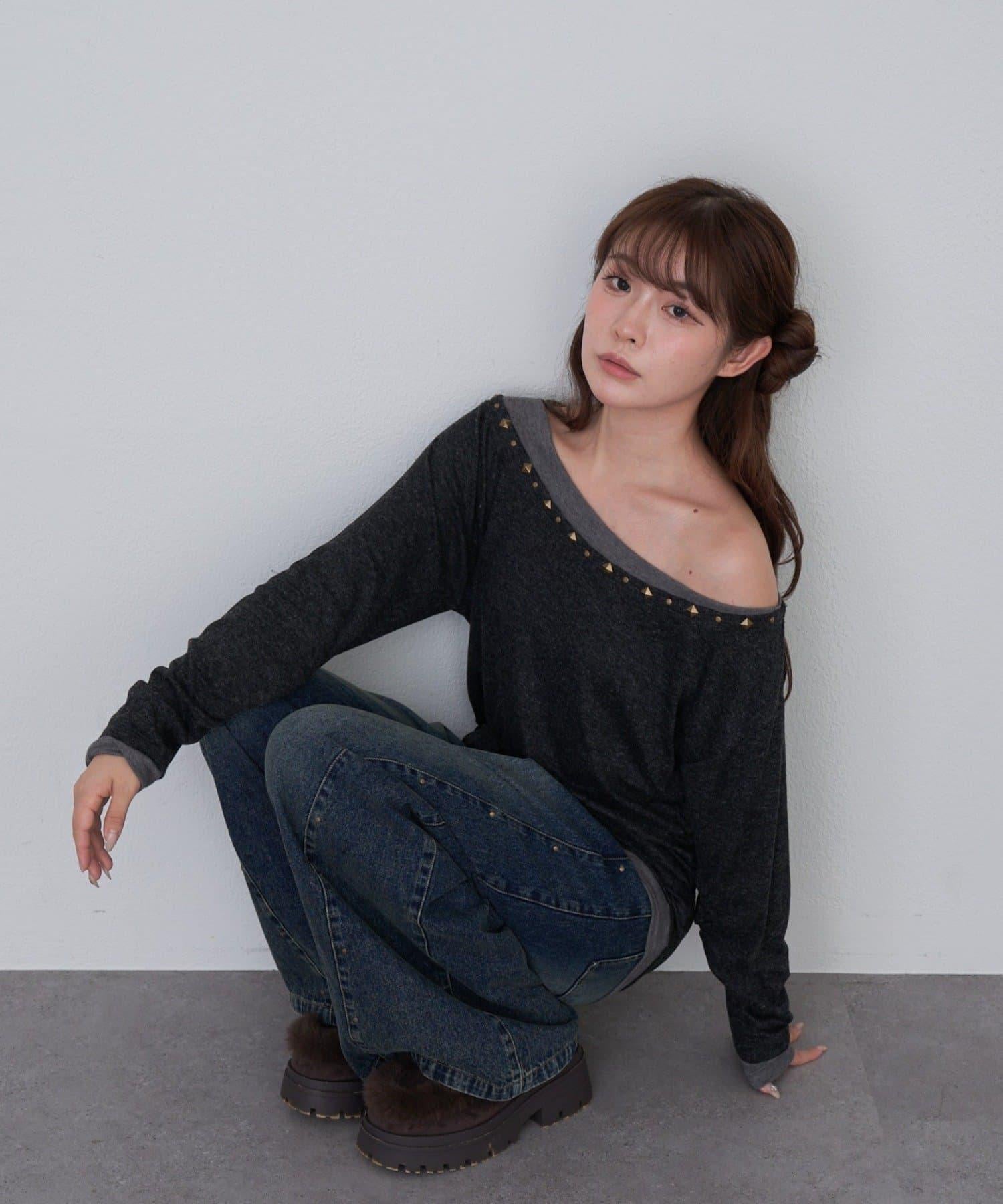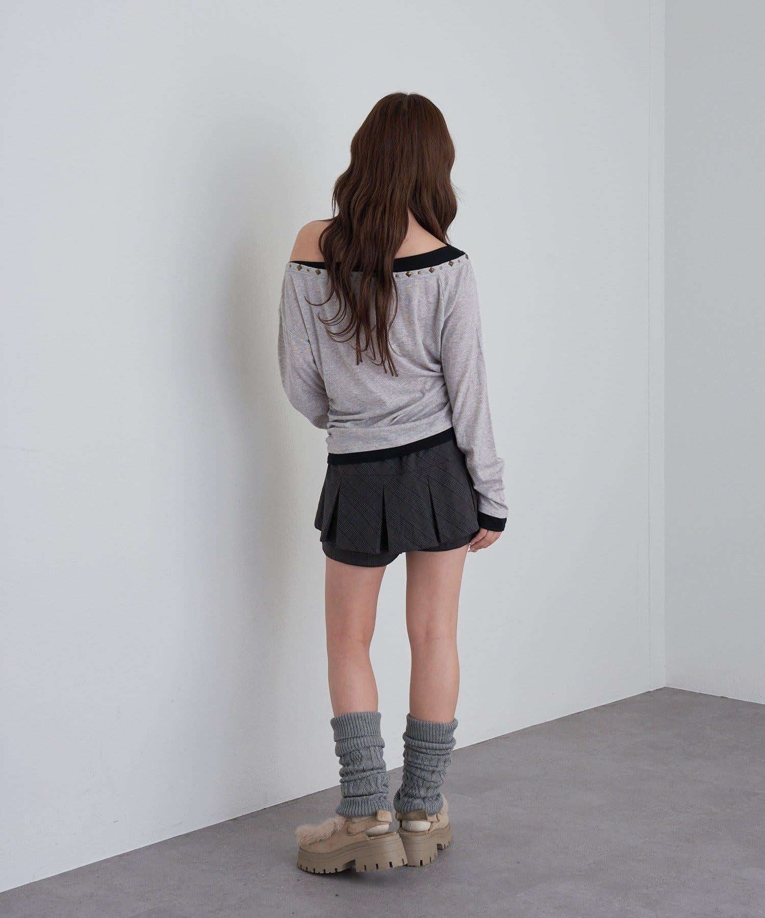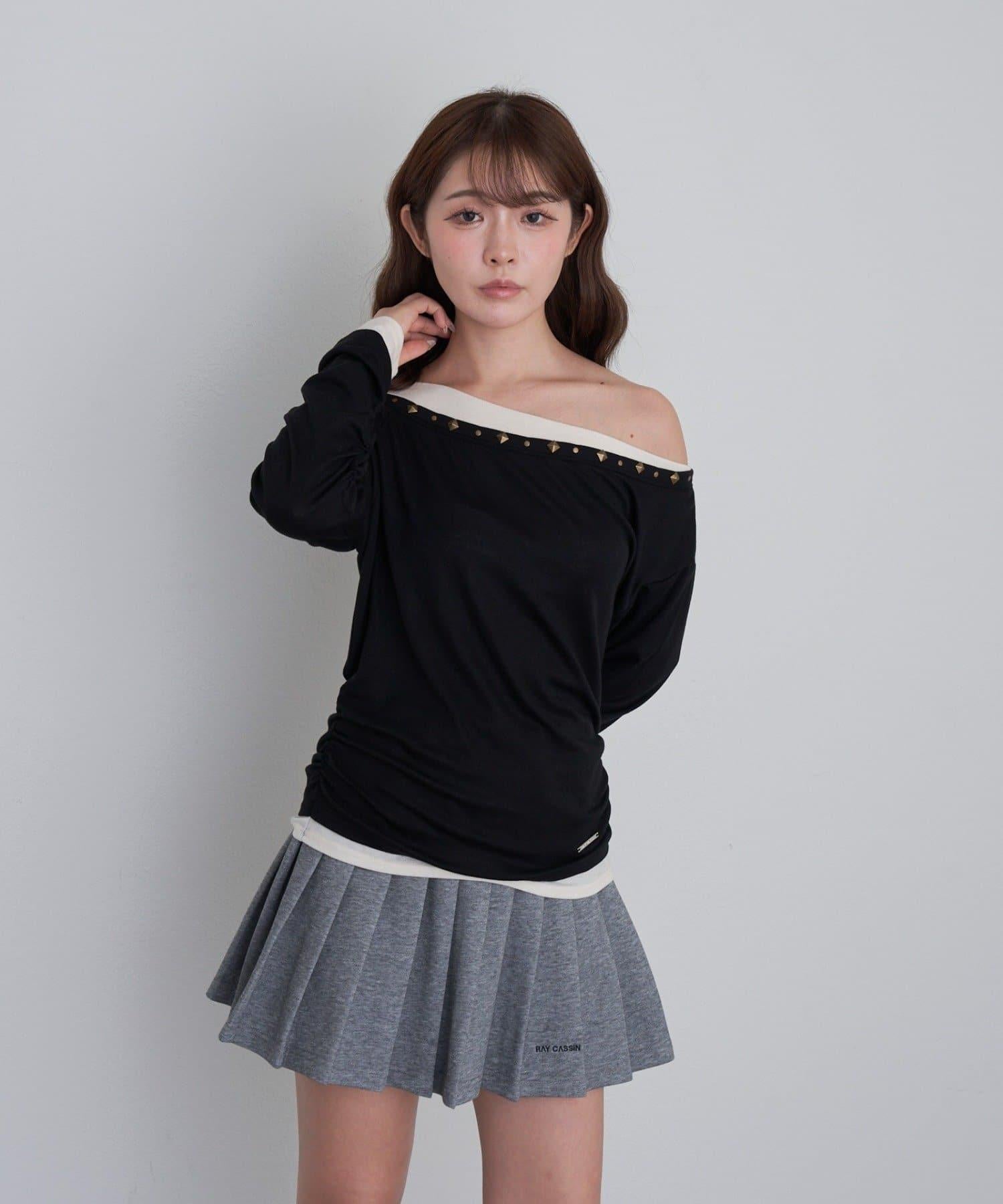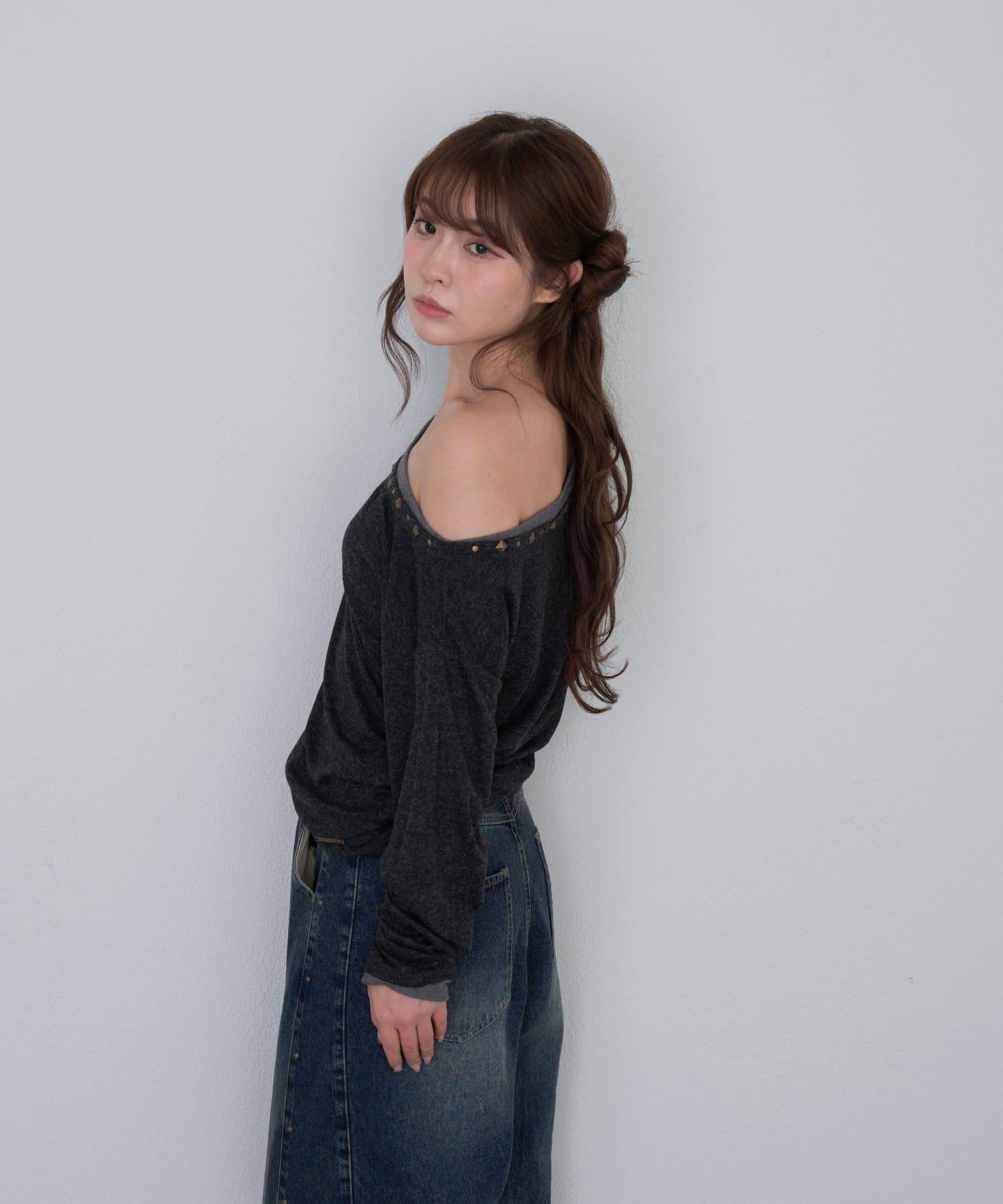 鉚釘裝飾疊穿長袖T恤