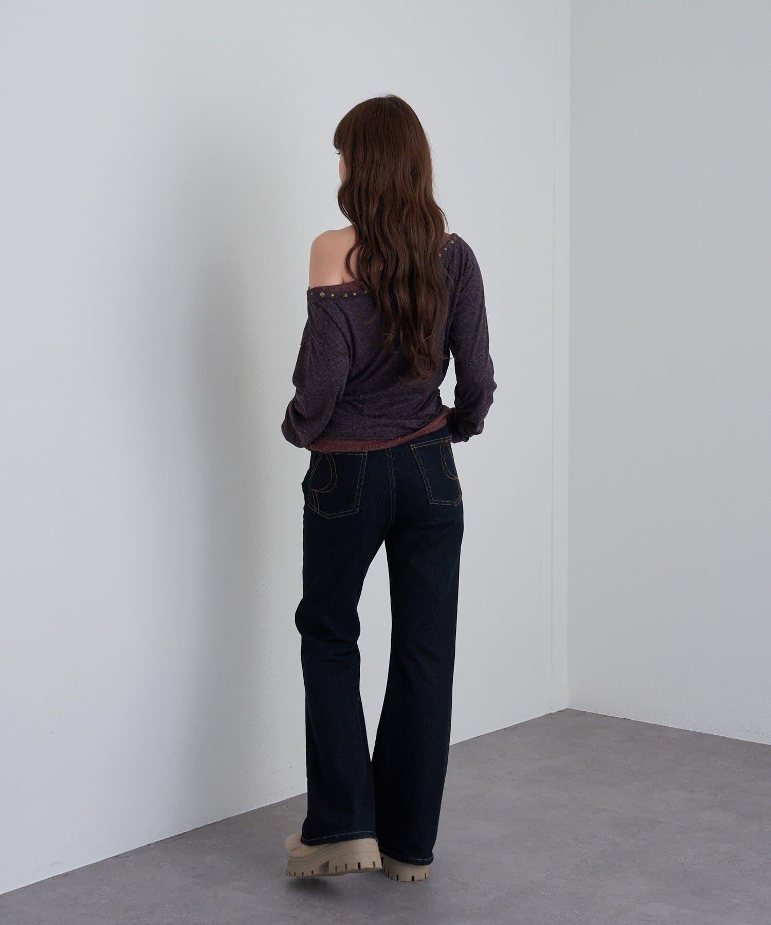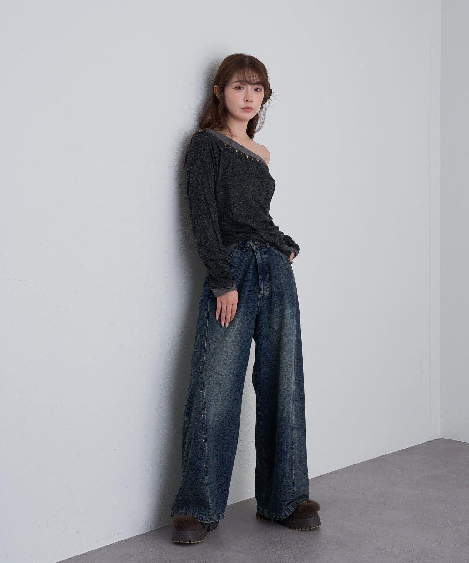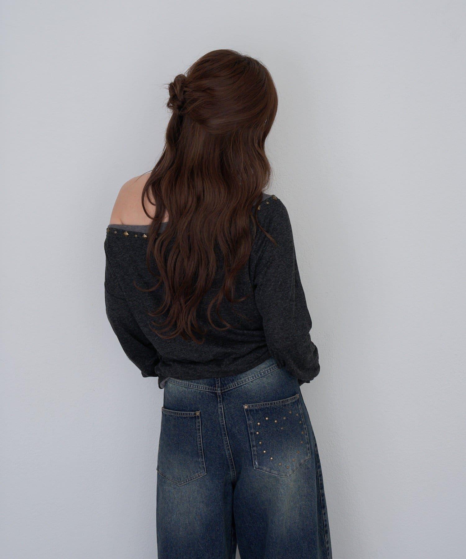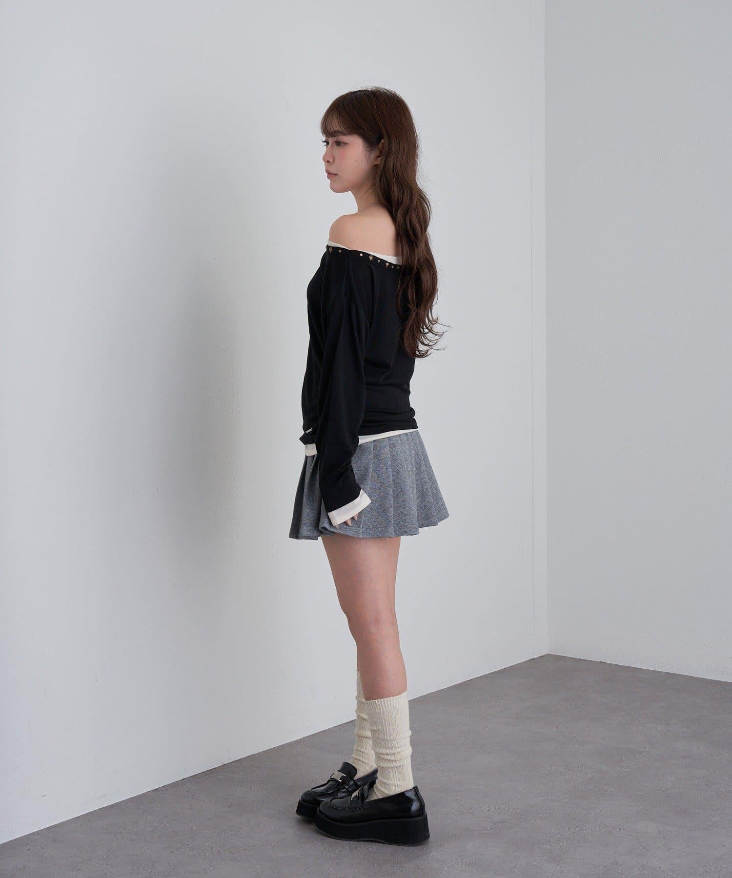 鉚釘裝飾疊穿長袖T恤