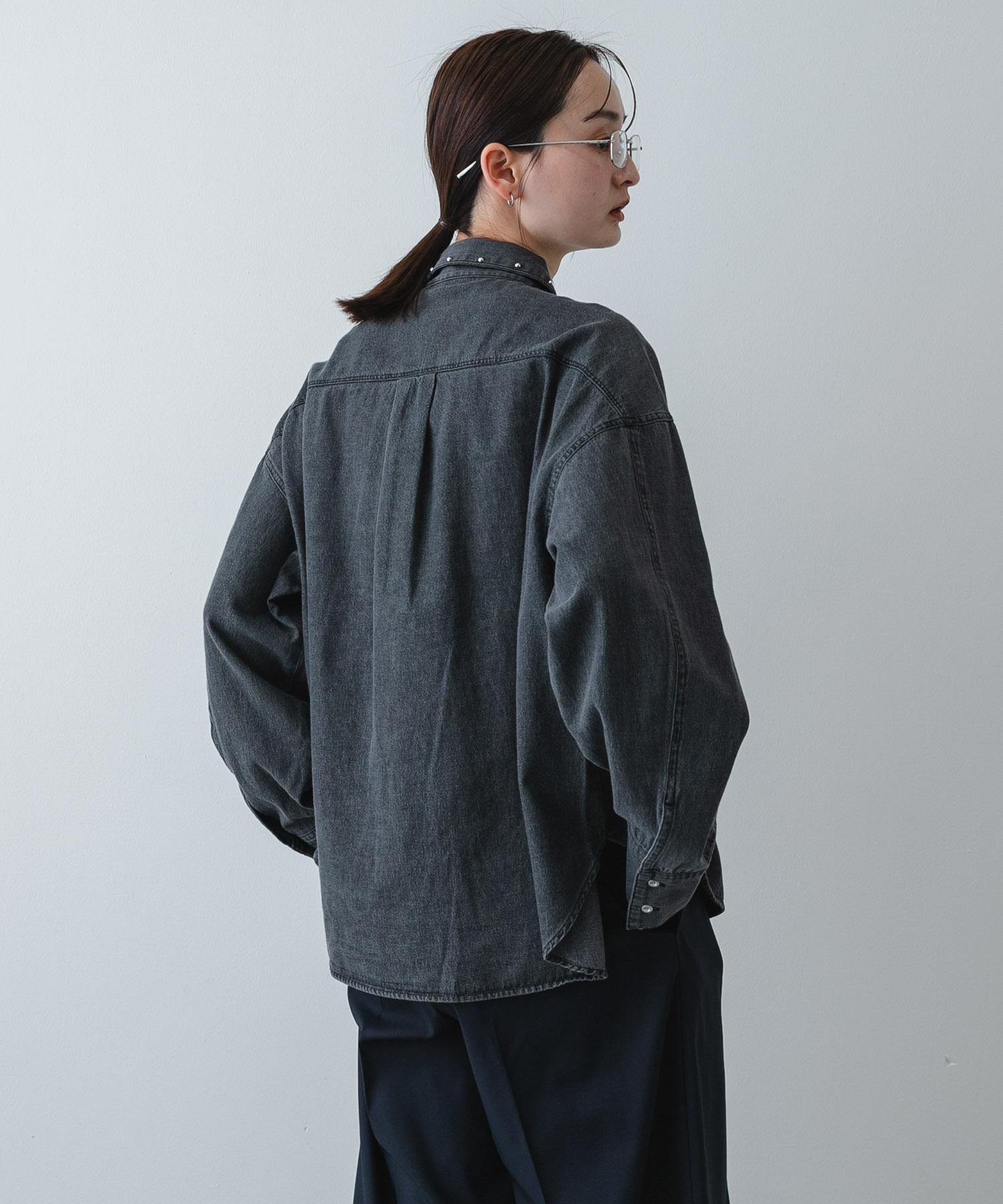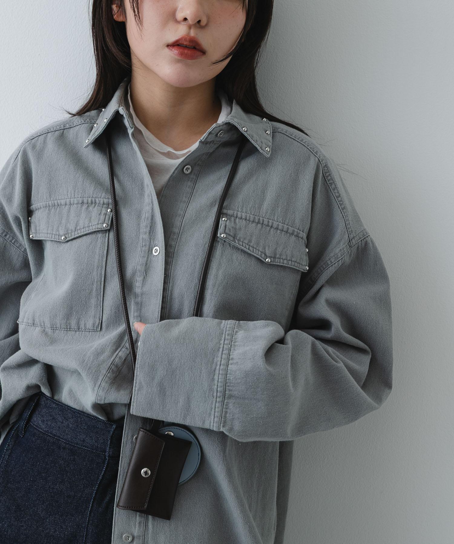 這款設計襯衫將牛仔布的休閒印象與精緻細節相結合。輕薄柔軟的牛仔面料營造出柔美的女性輪廓,隨著身體的移動而自然垂墜。👍重要的一點是,臉部和胸前的鉚釘裝飾非常有規律。這些低調而穩重的裝飾將簡單的造型提升為精緻的現代服飾。無論是作為斗篷還是主打服飾,這款產品都能為任何日常場合增添高貴氣質。