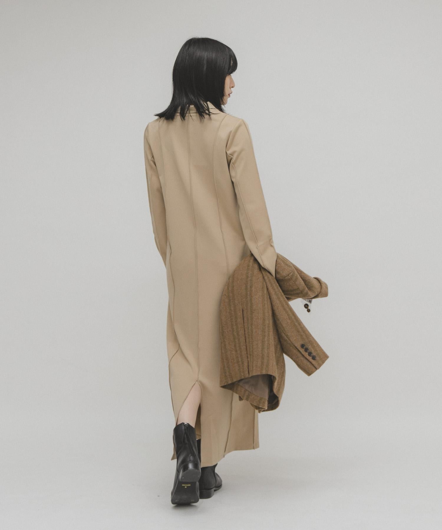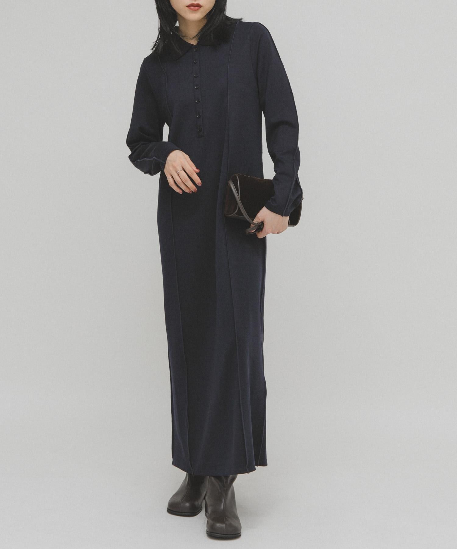 這款連衣裙採用裁剪縫合但光滑的面料製成。側縫是其一大特色,為連衣裙勾勒出優美的垂直線條。