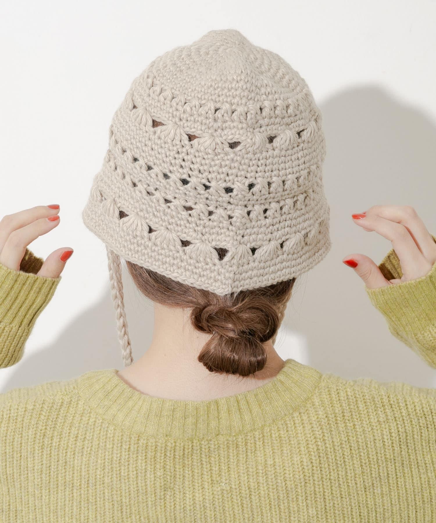 鉤針編織帽的側面有一條可愛的繩索,可以繫上或垂下,以突出你的著裝。