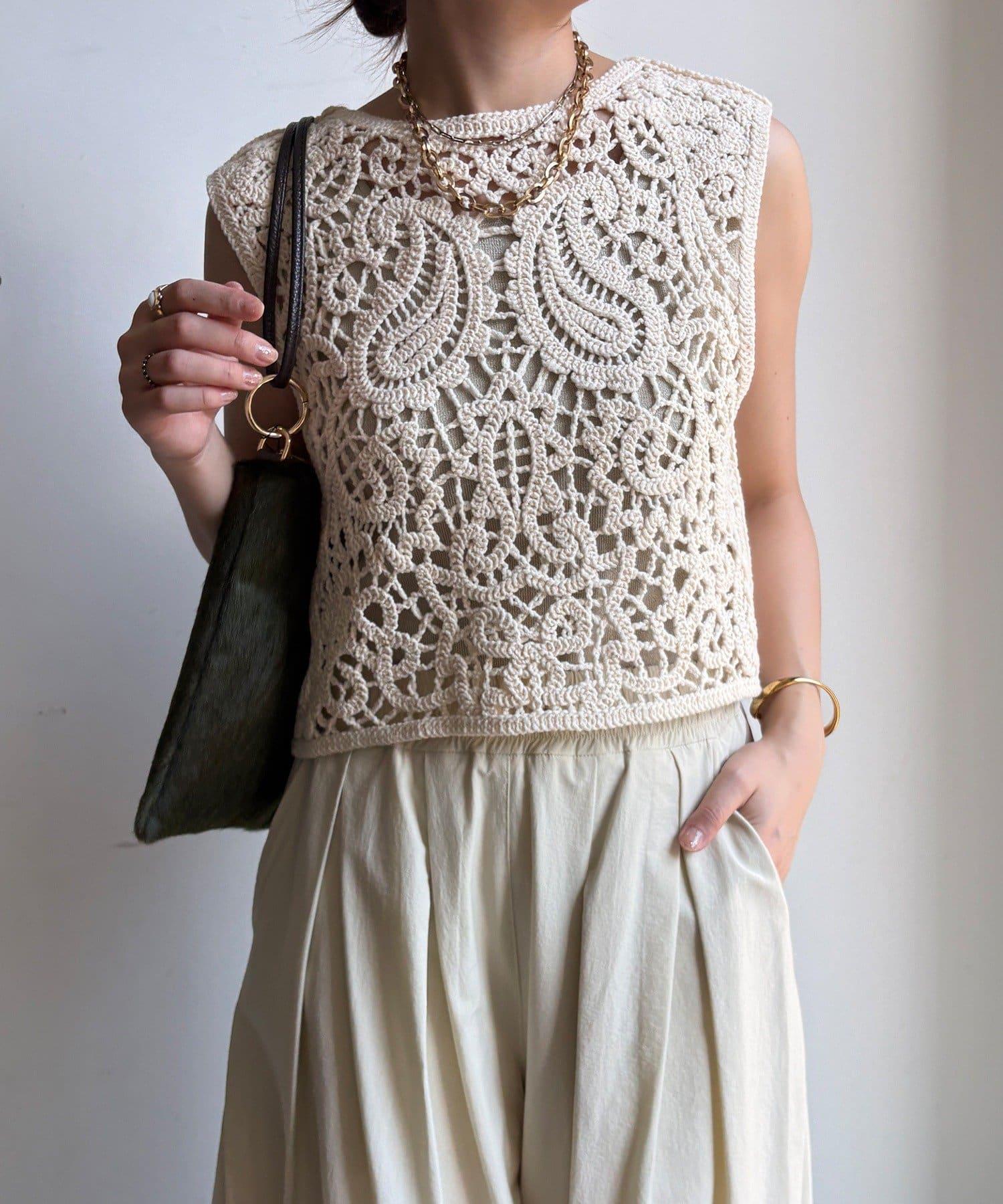 鉤針編織的復古質感給人一種波西米亞的感覺。