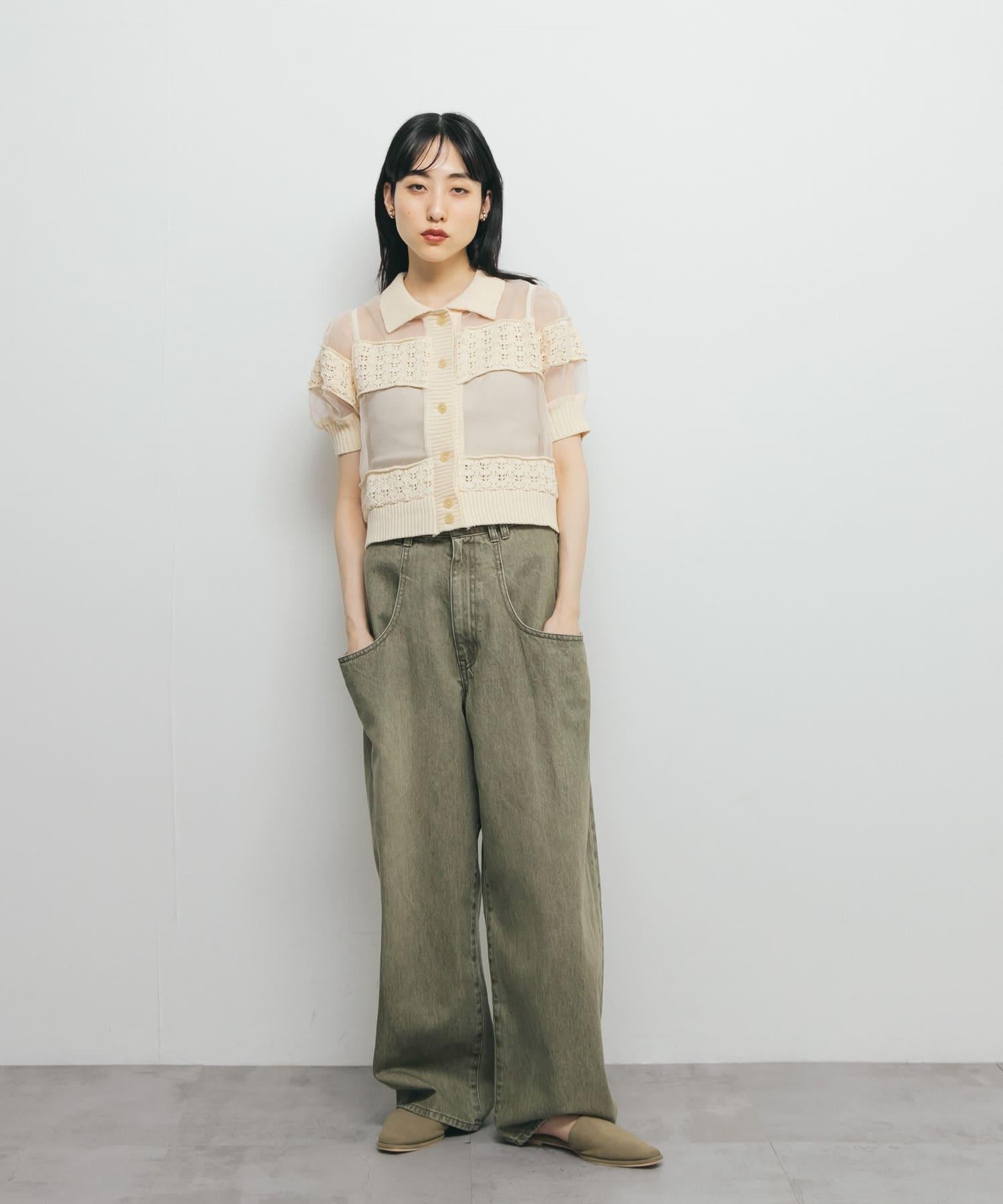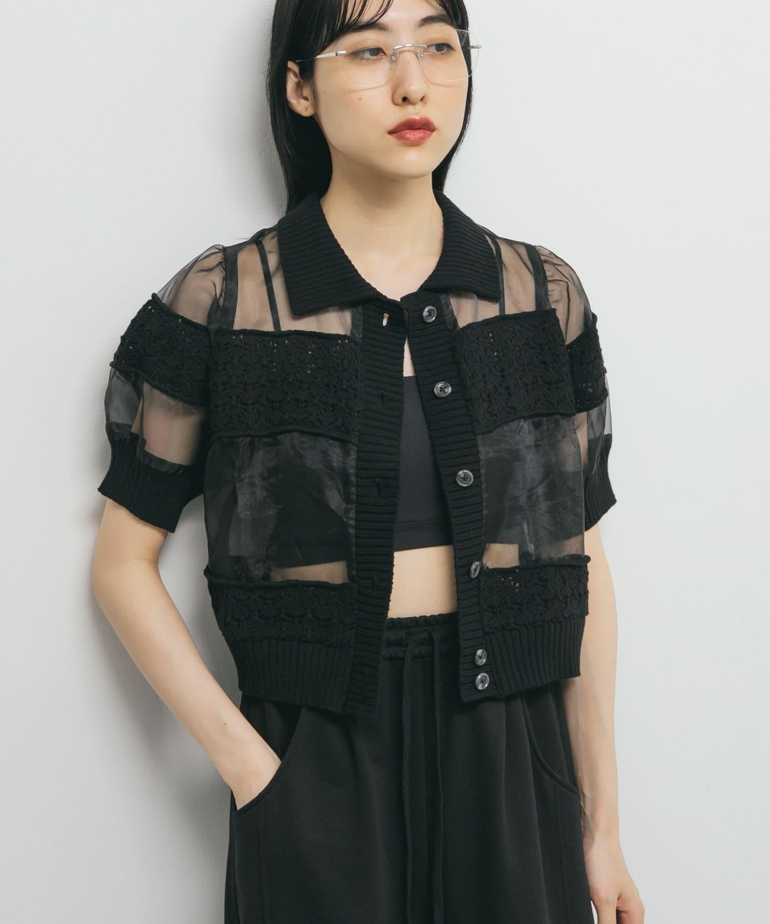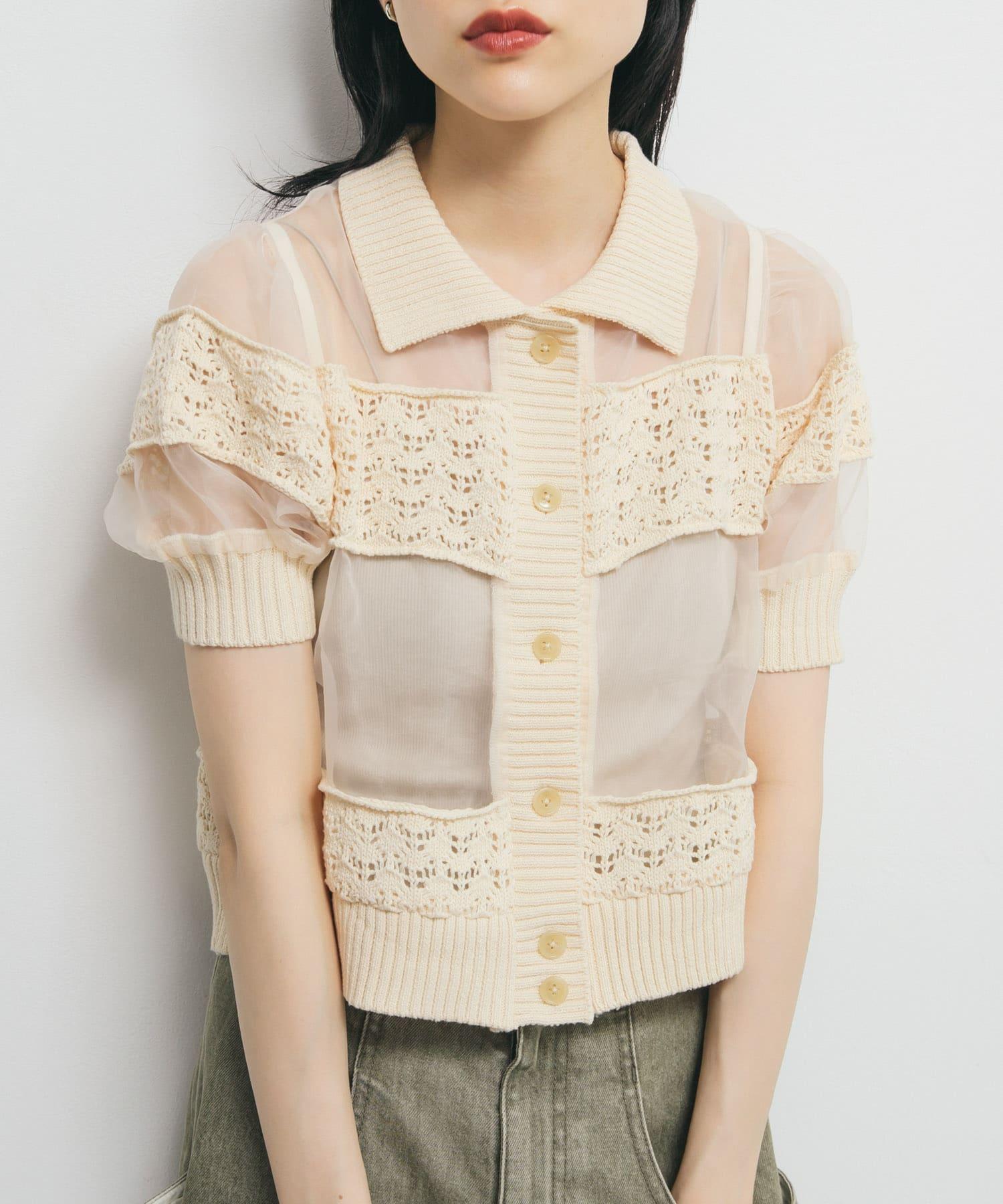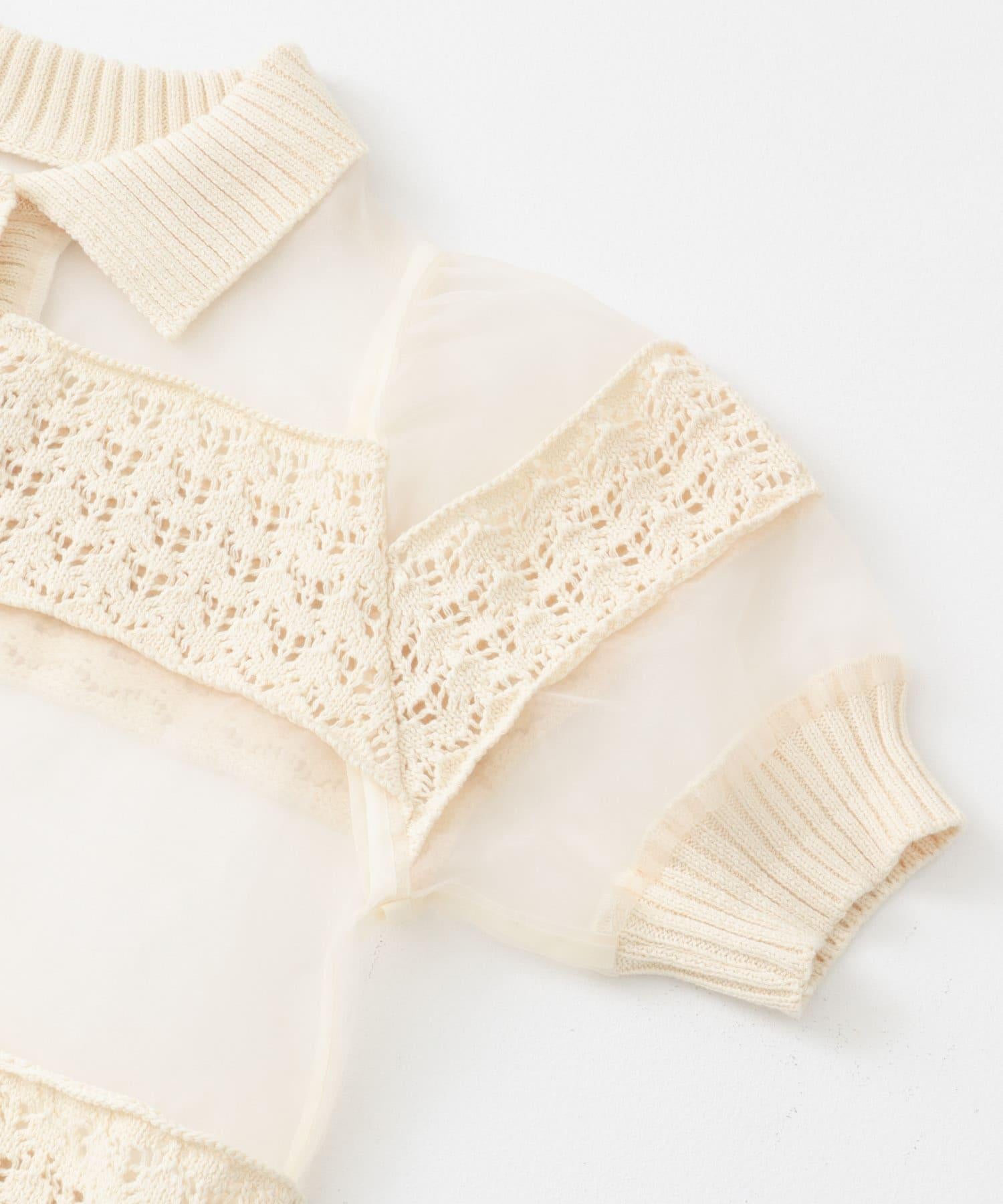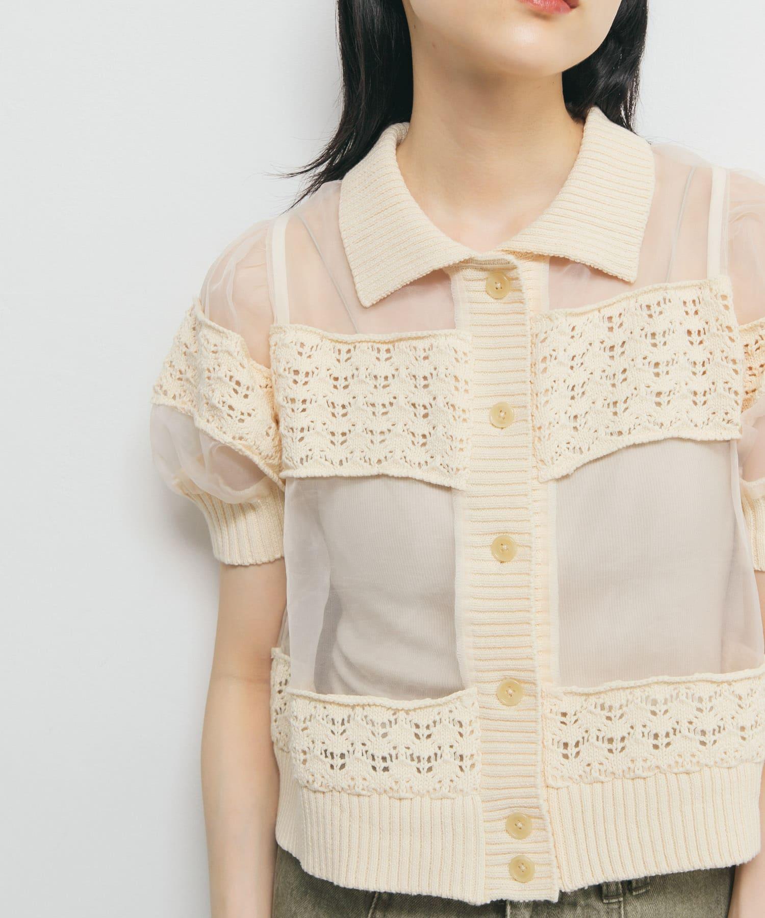 鉤針針織拼接襯衫