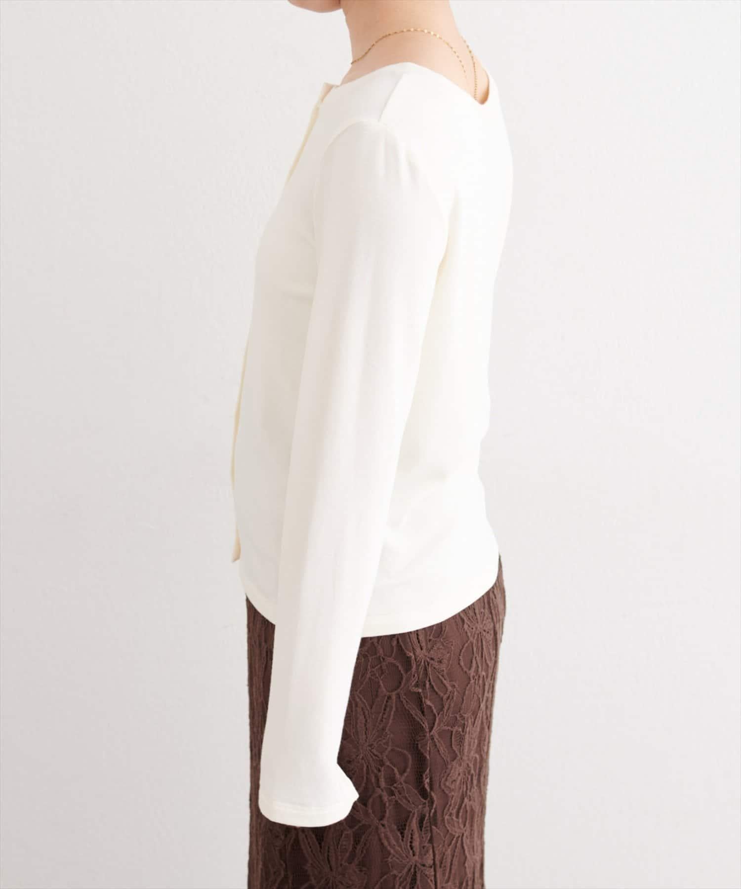 適度開闊的領口展現了肩部線條,並使臉部更加明亮。