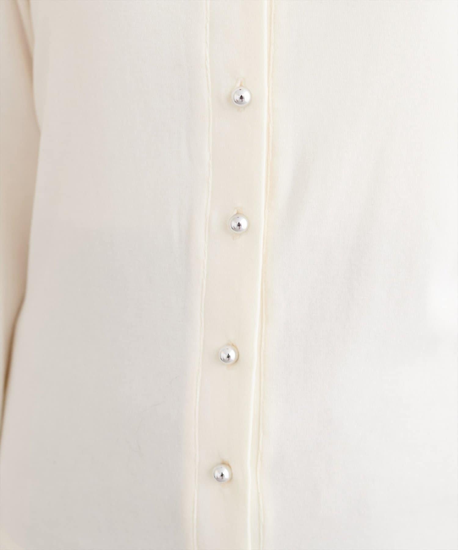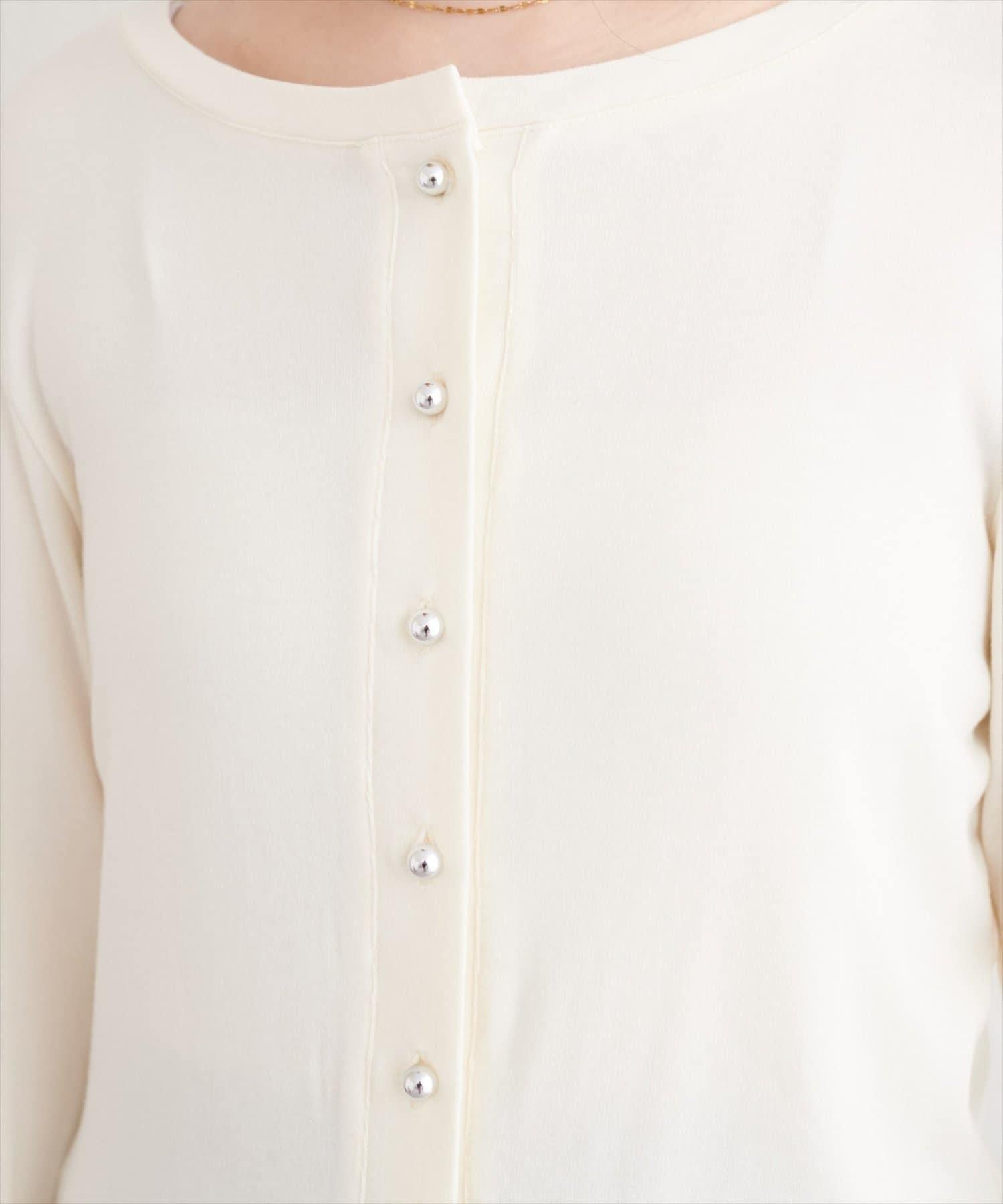 前襟的銀色紐扣起到了微妙的點綴作用,為簡潔的設計增添了魅力。