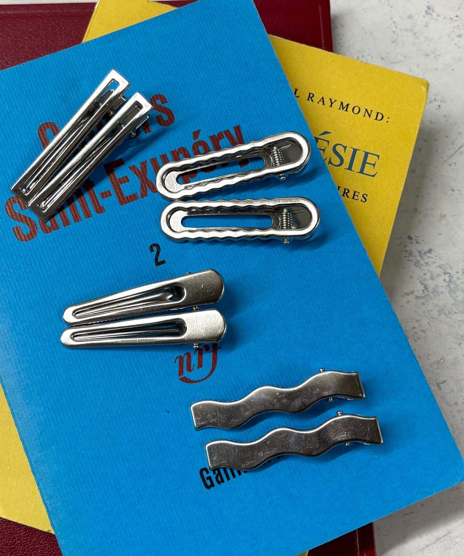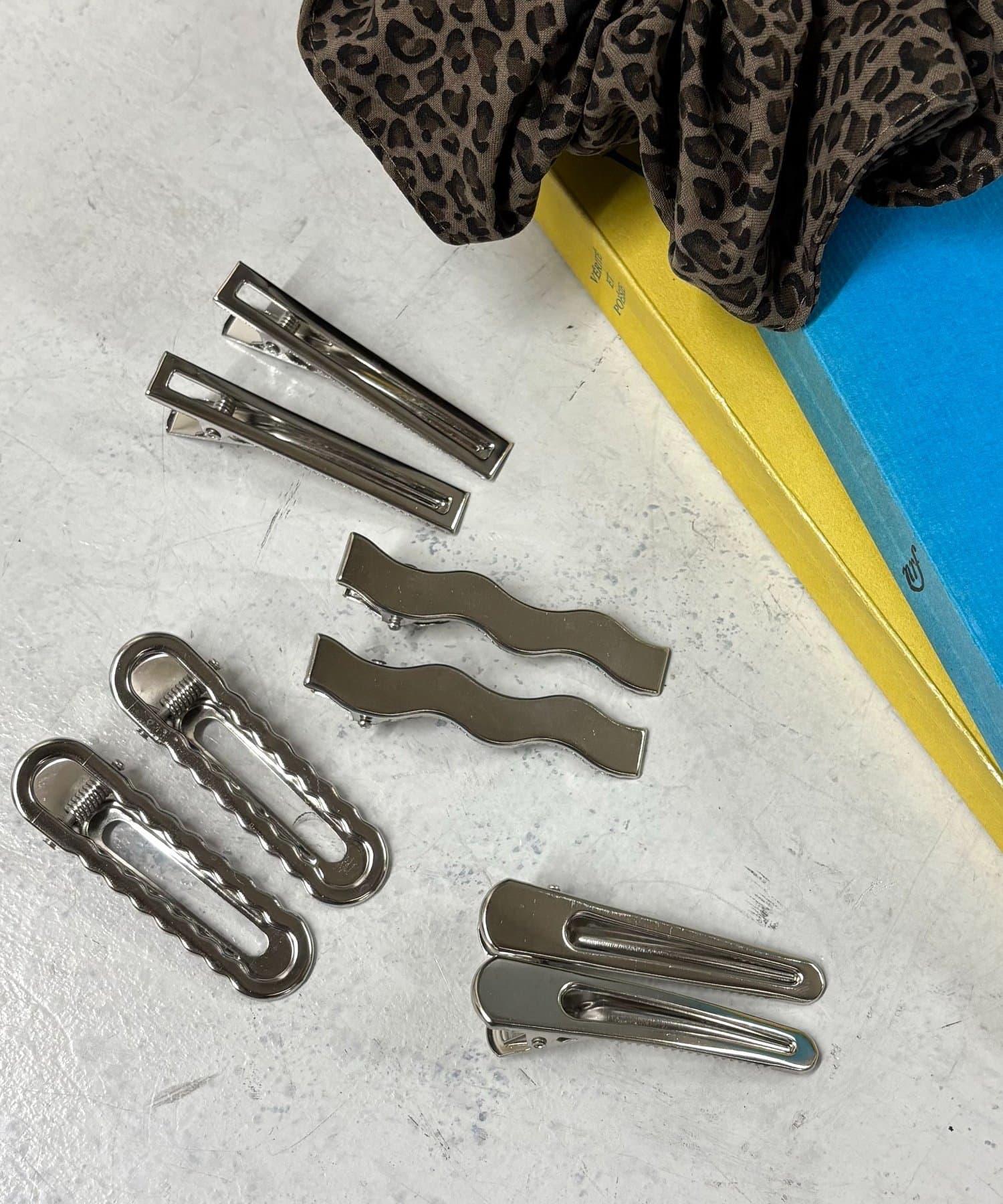 各種設計的銀色髮夾套裝。