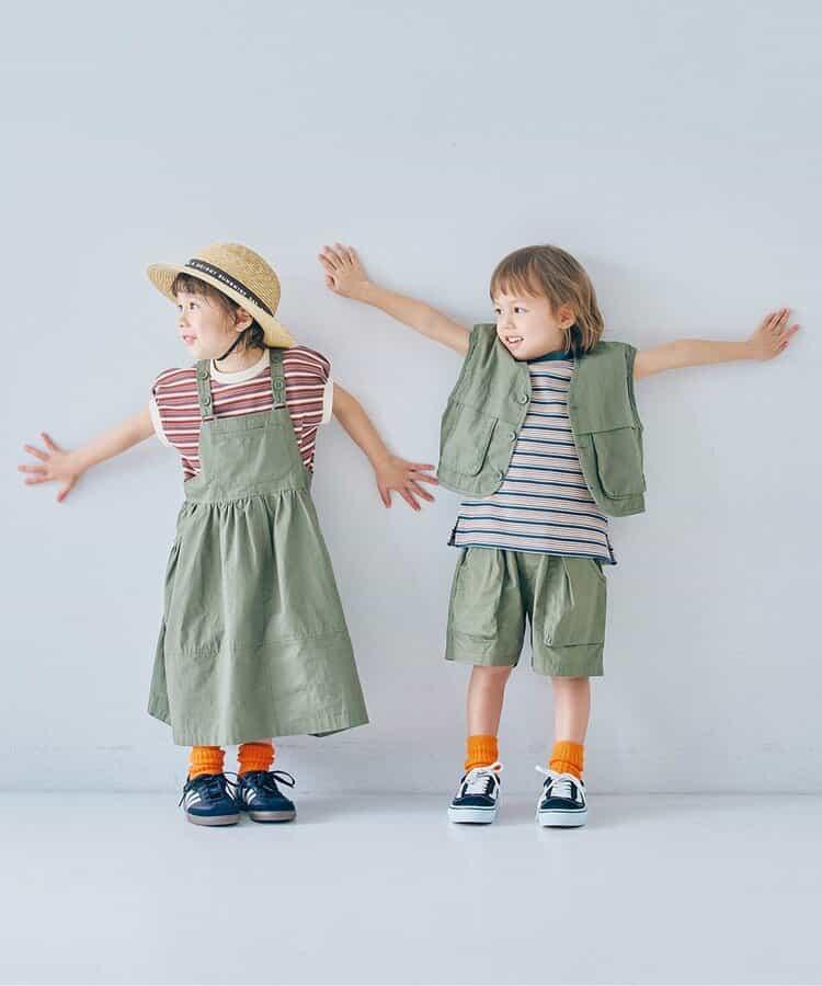 同樣設計的半截褲、喇叭褲和嬰兒連衣褲也一應俱全,可以作為套裝穿,也可以和兄弟姐妹連在一起穿。
