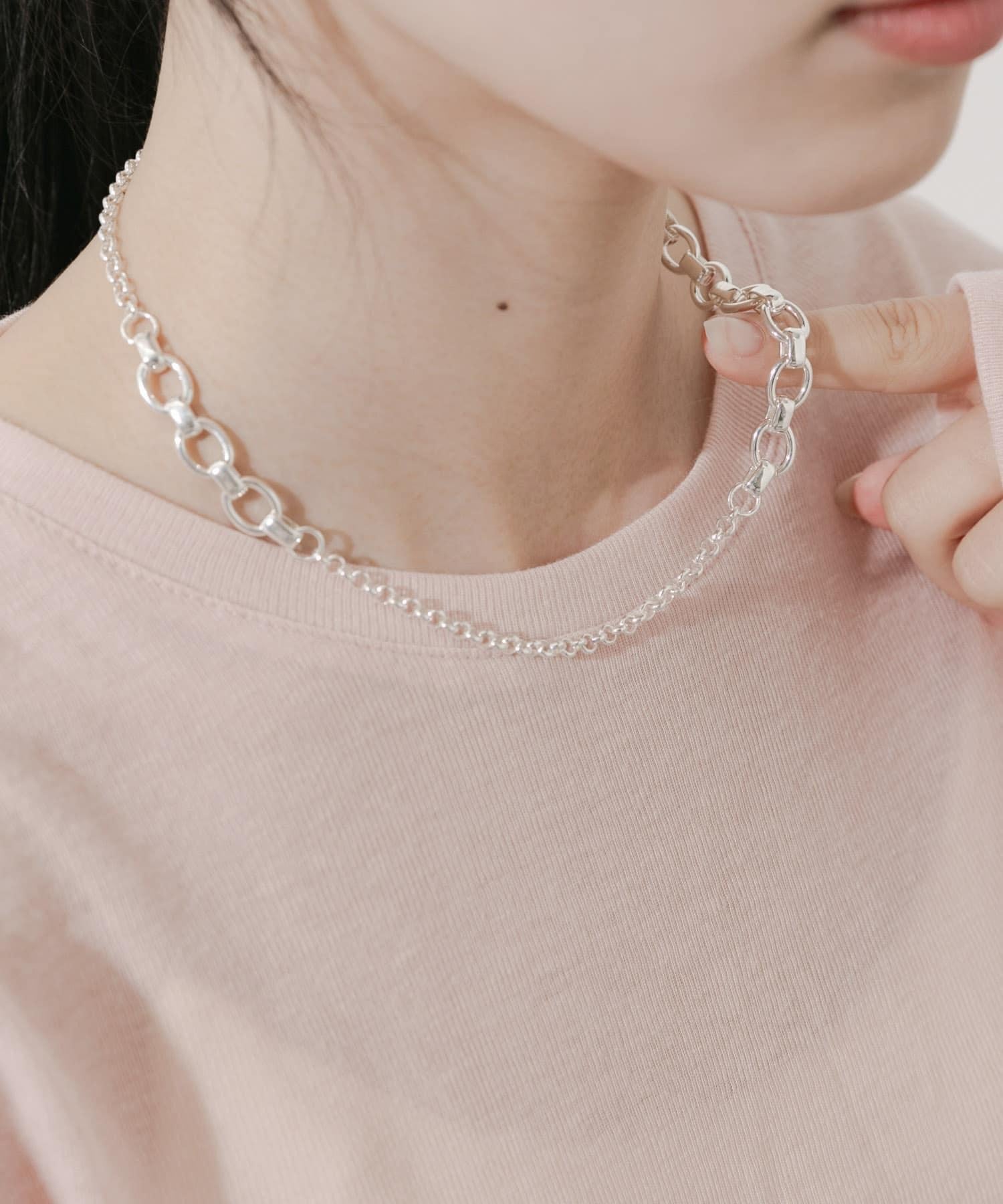 不同粗細和形狀的鏈條組合而成的獨特項鍊。