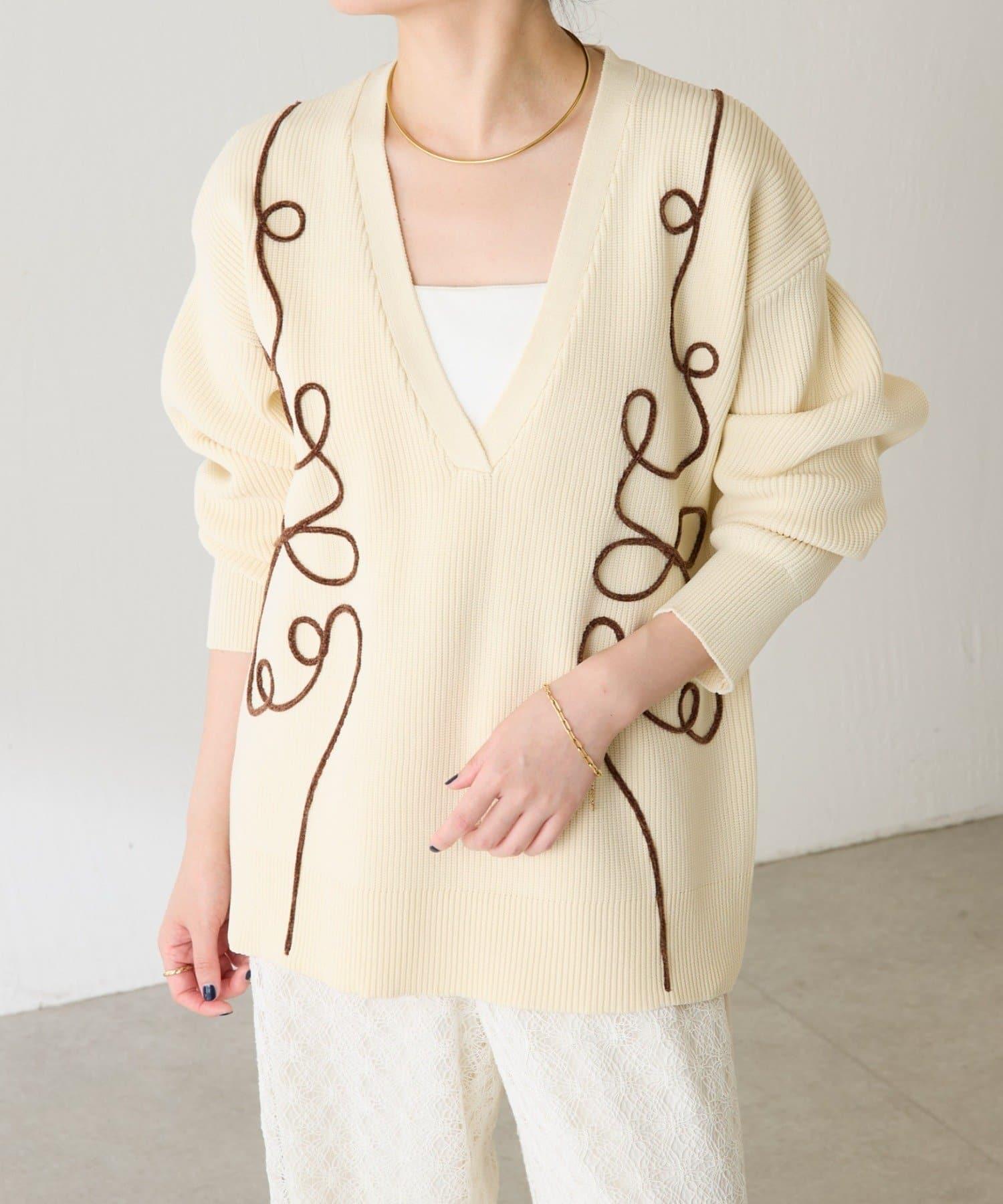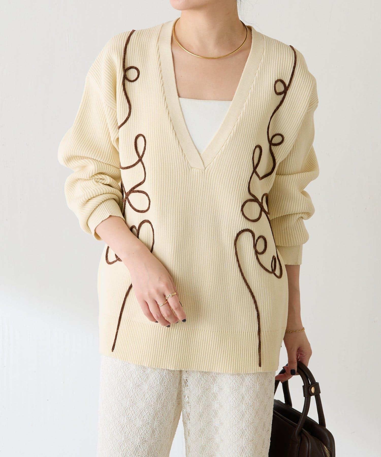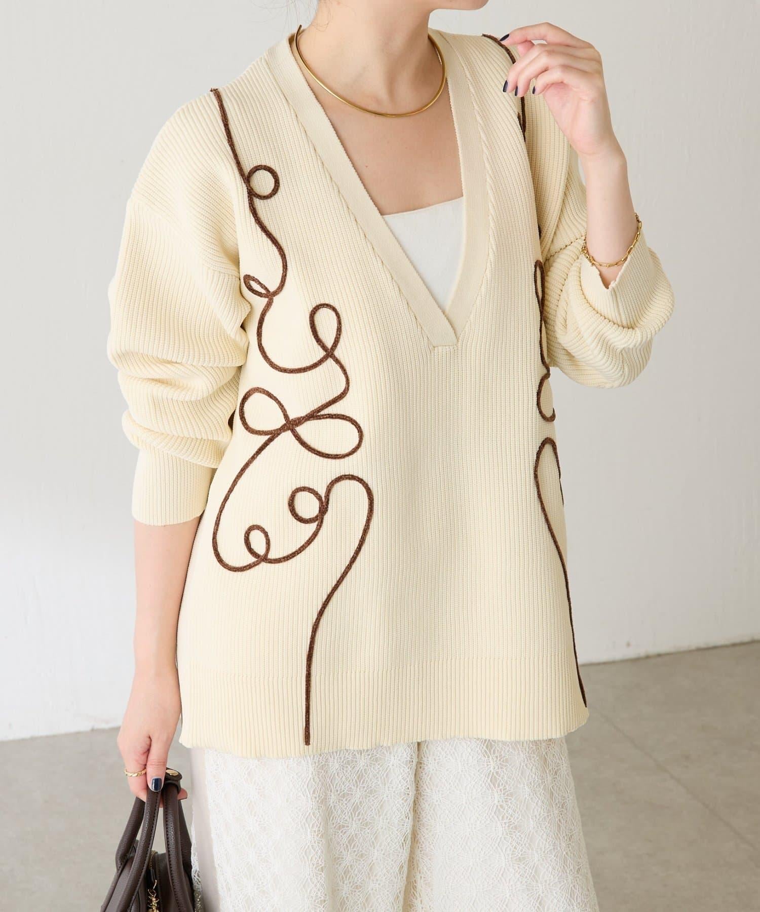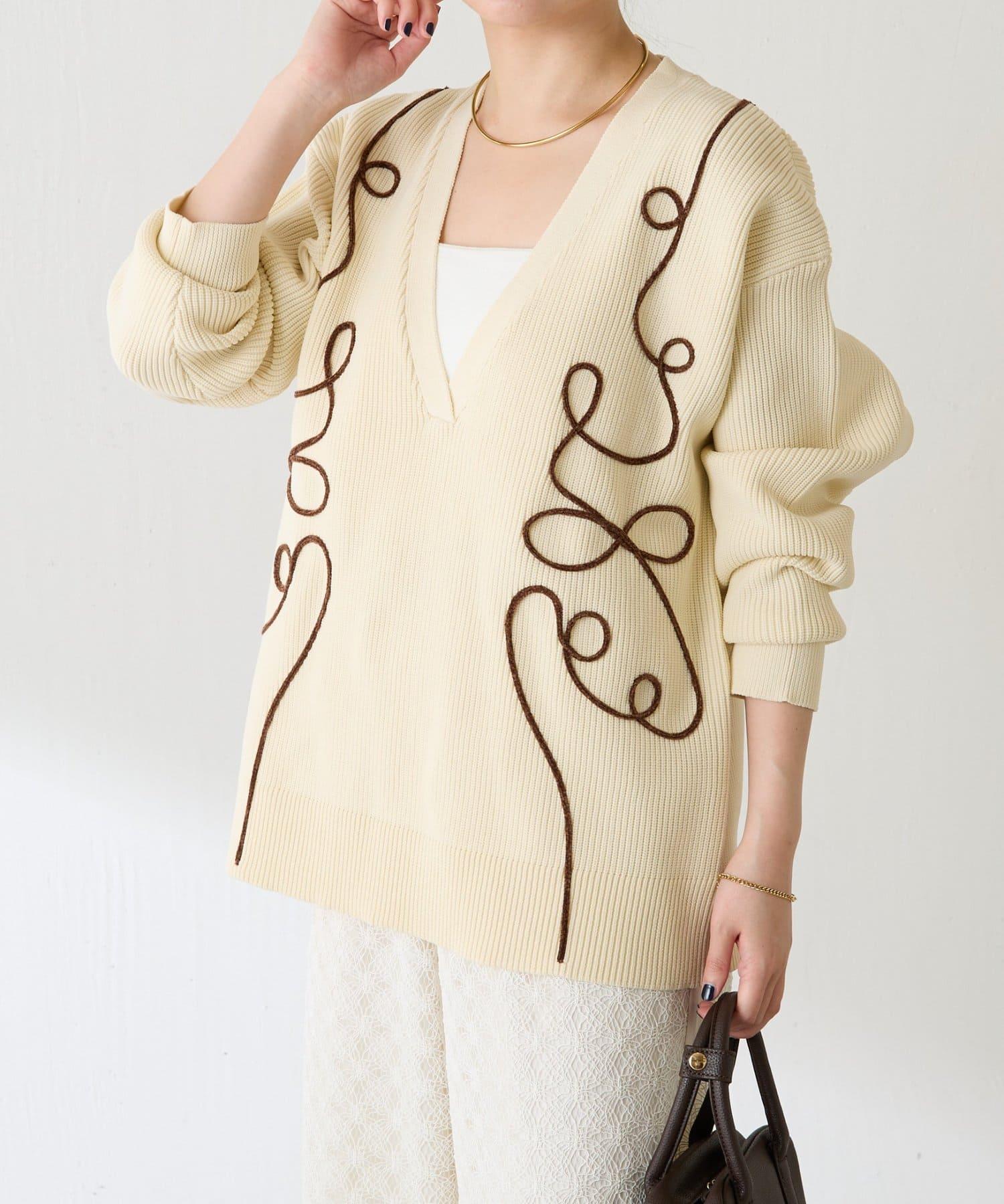 一款以立體編織繩刺繡為點綴的針織衫。