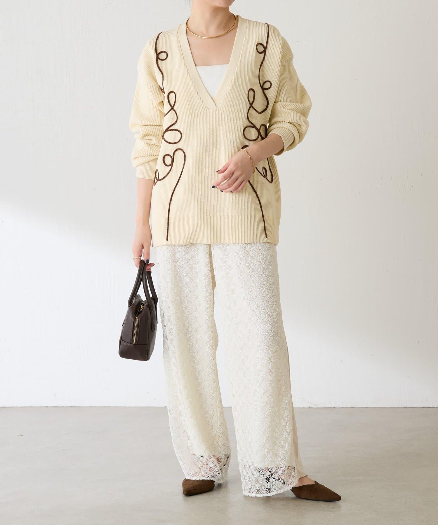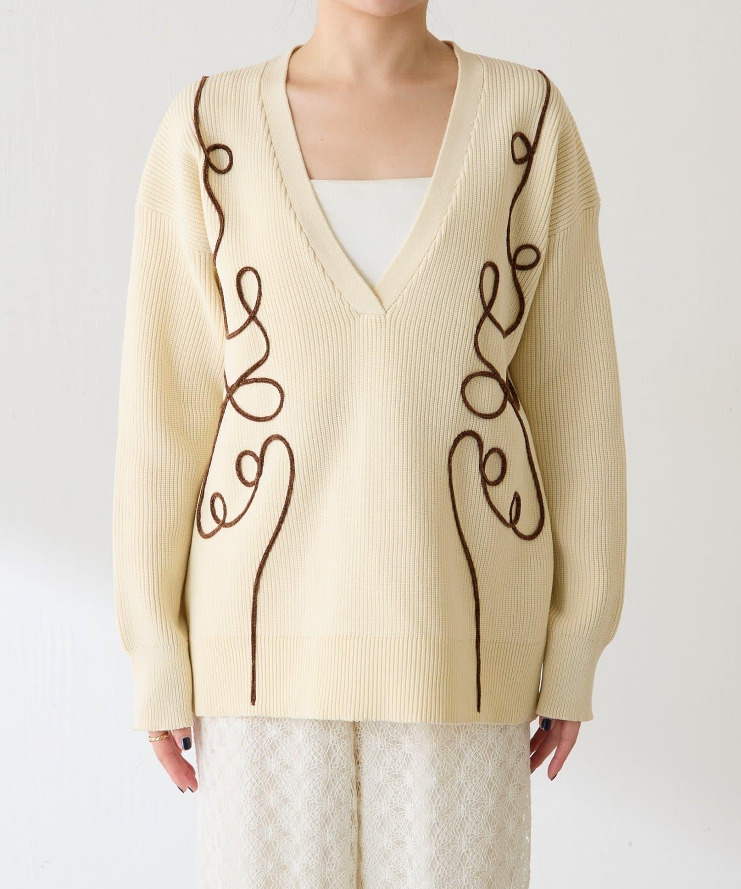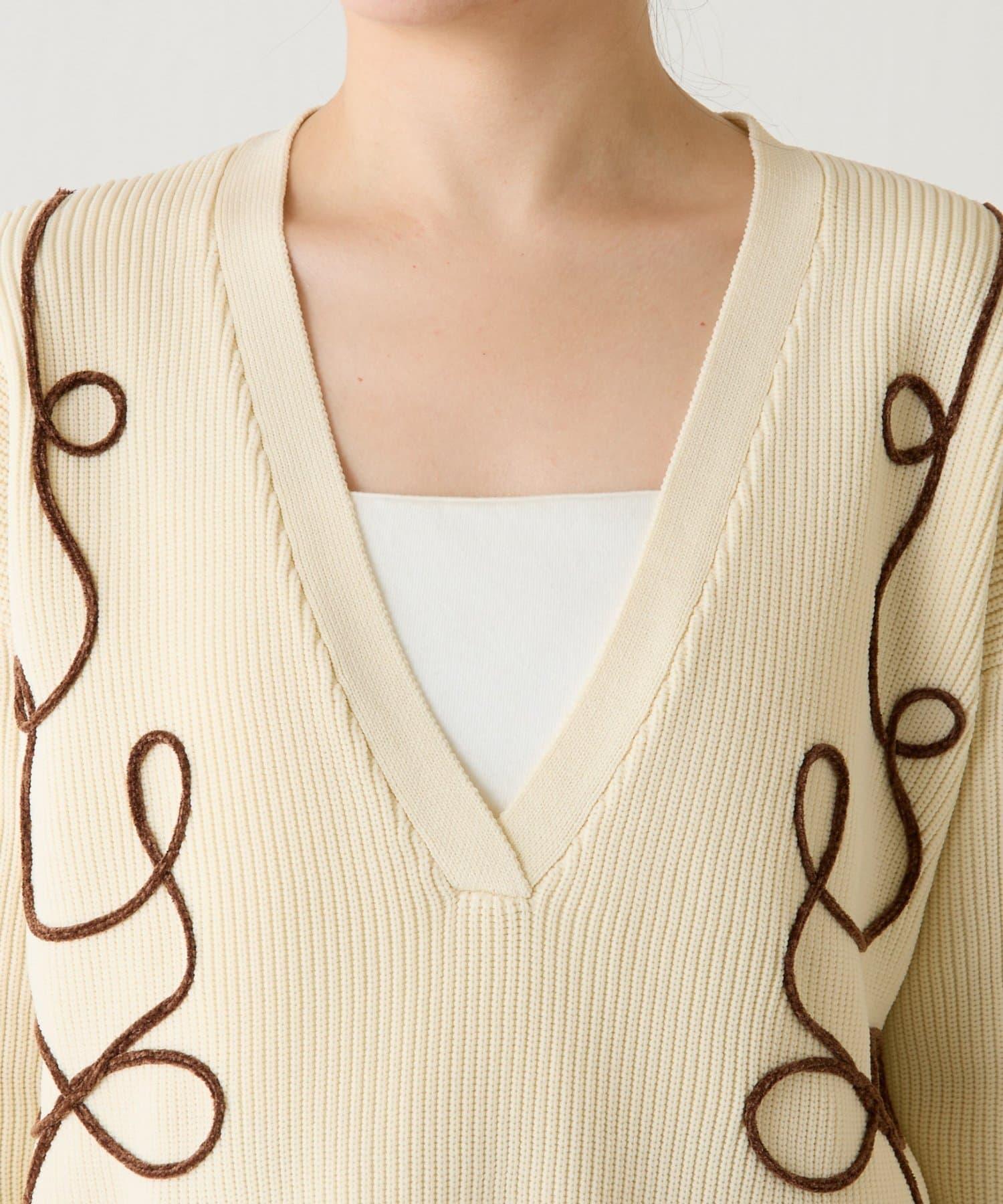 鏤空刺繡深V領針織衫
