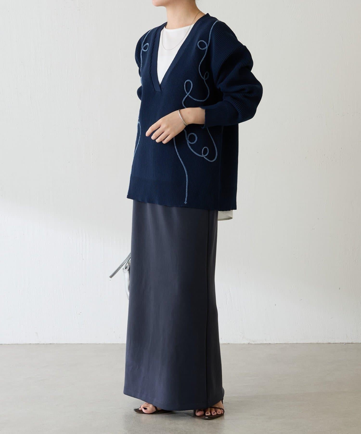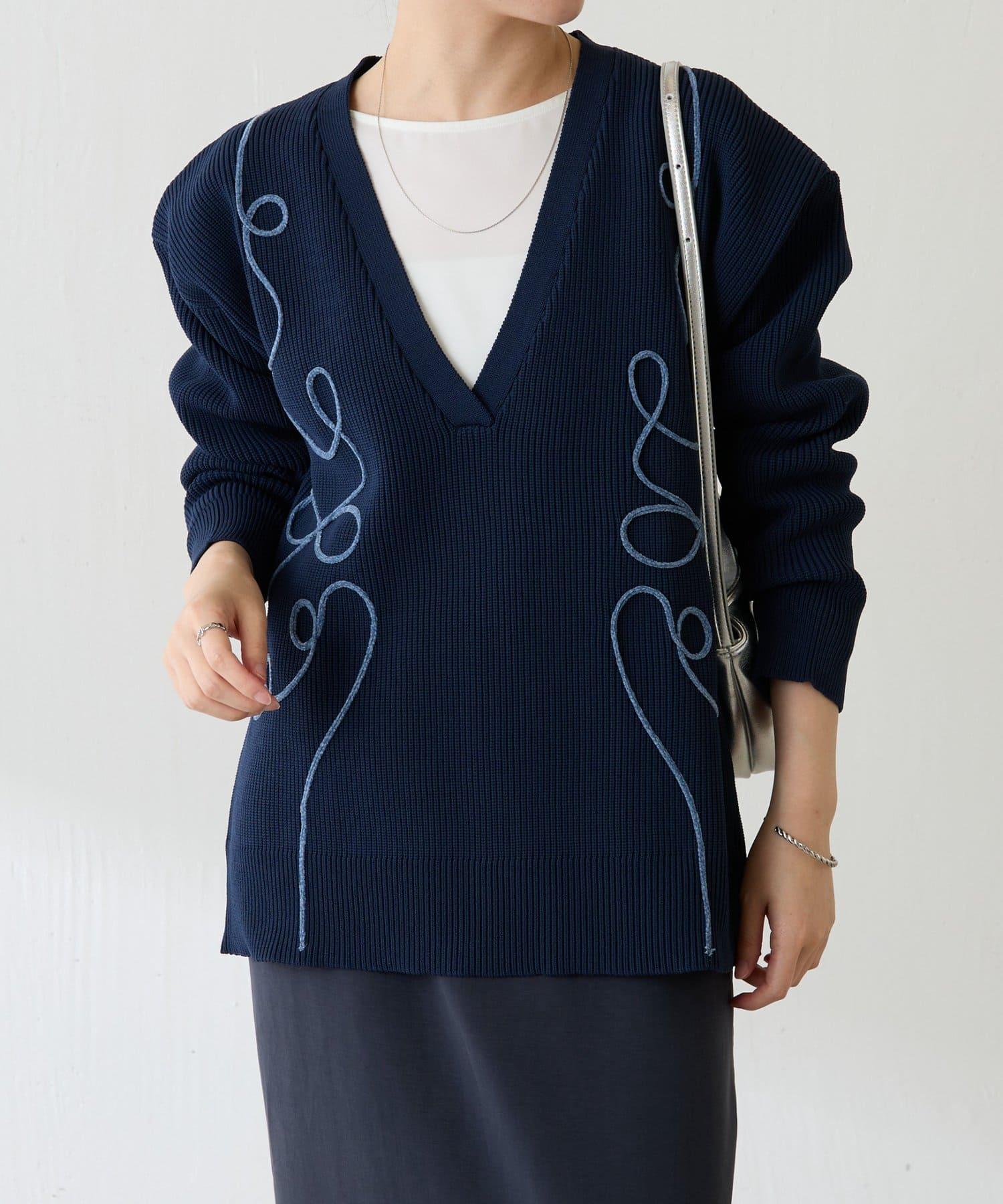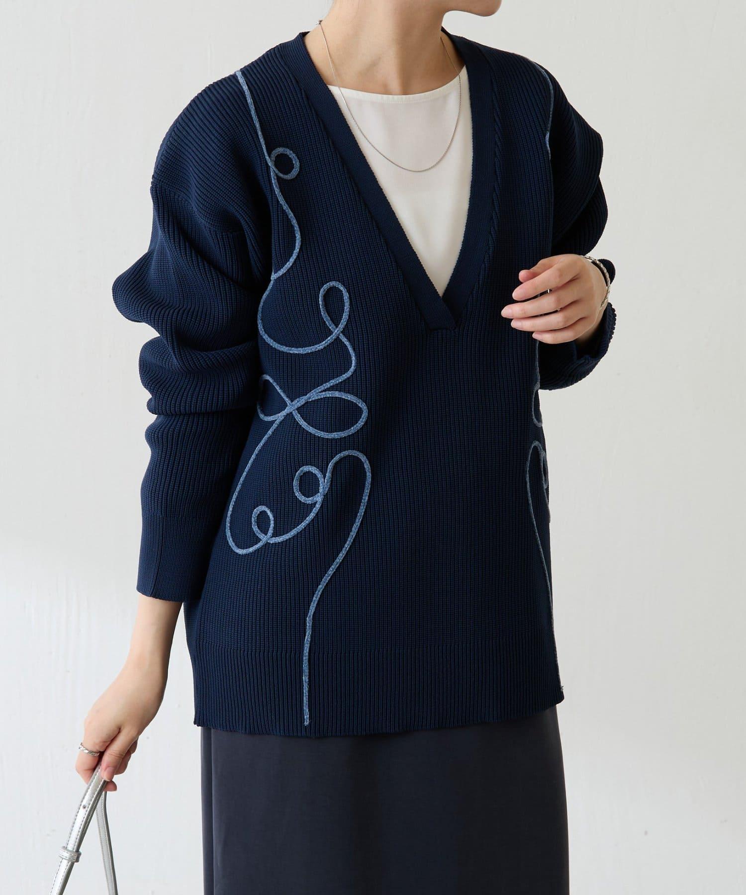 鏤空刺繡深V領針織衫