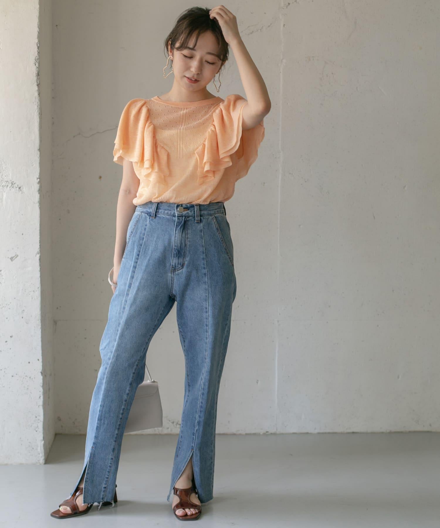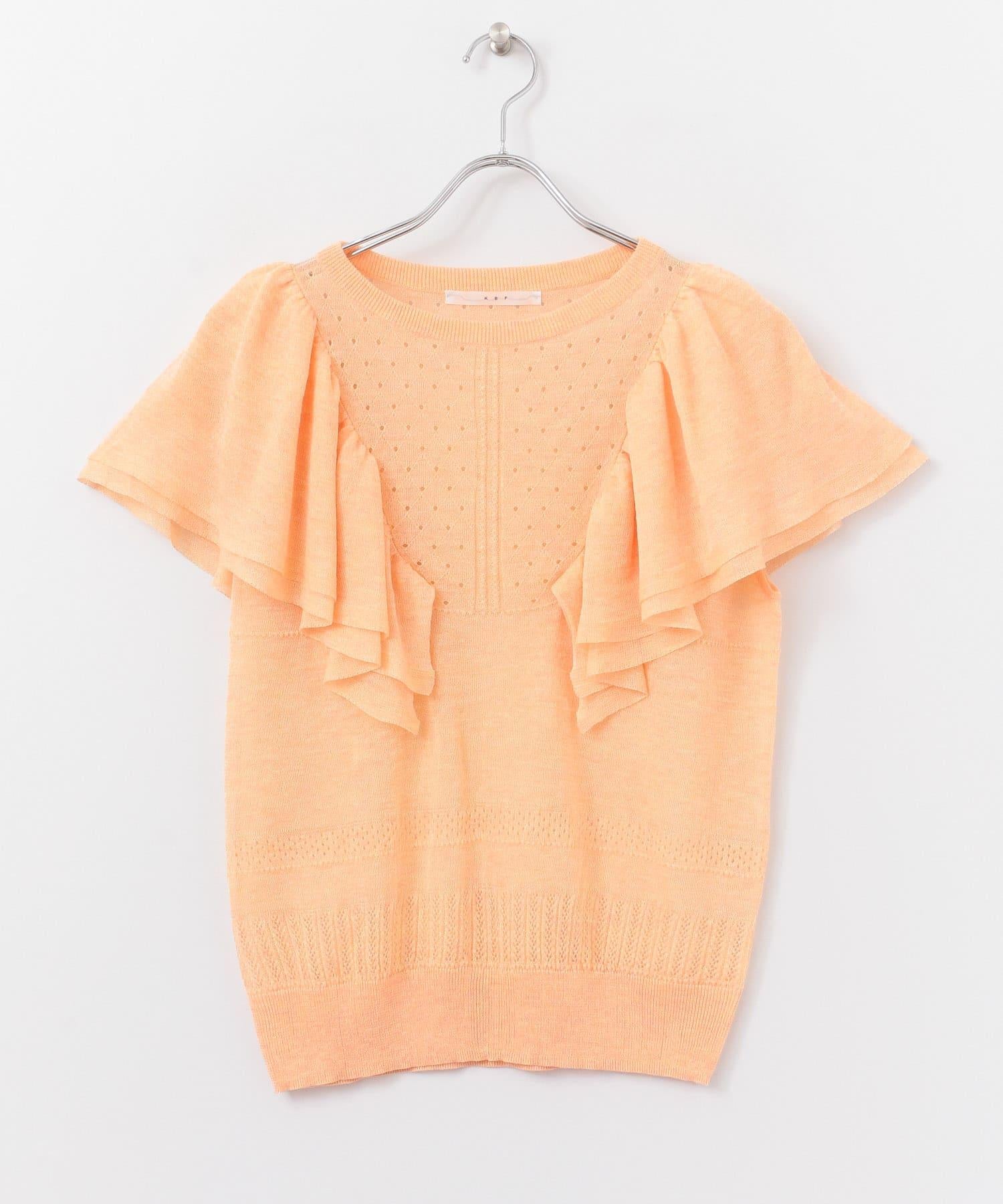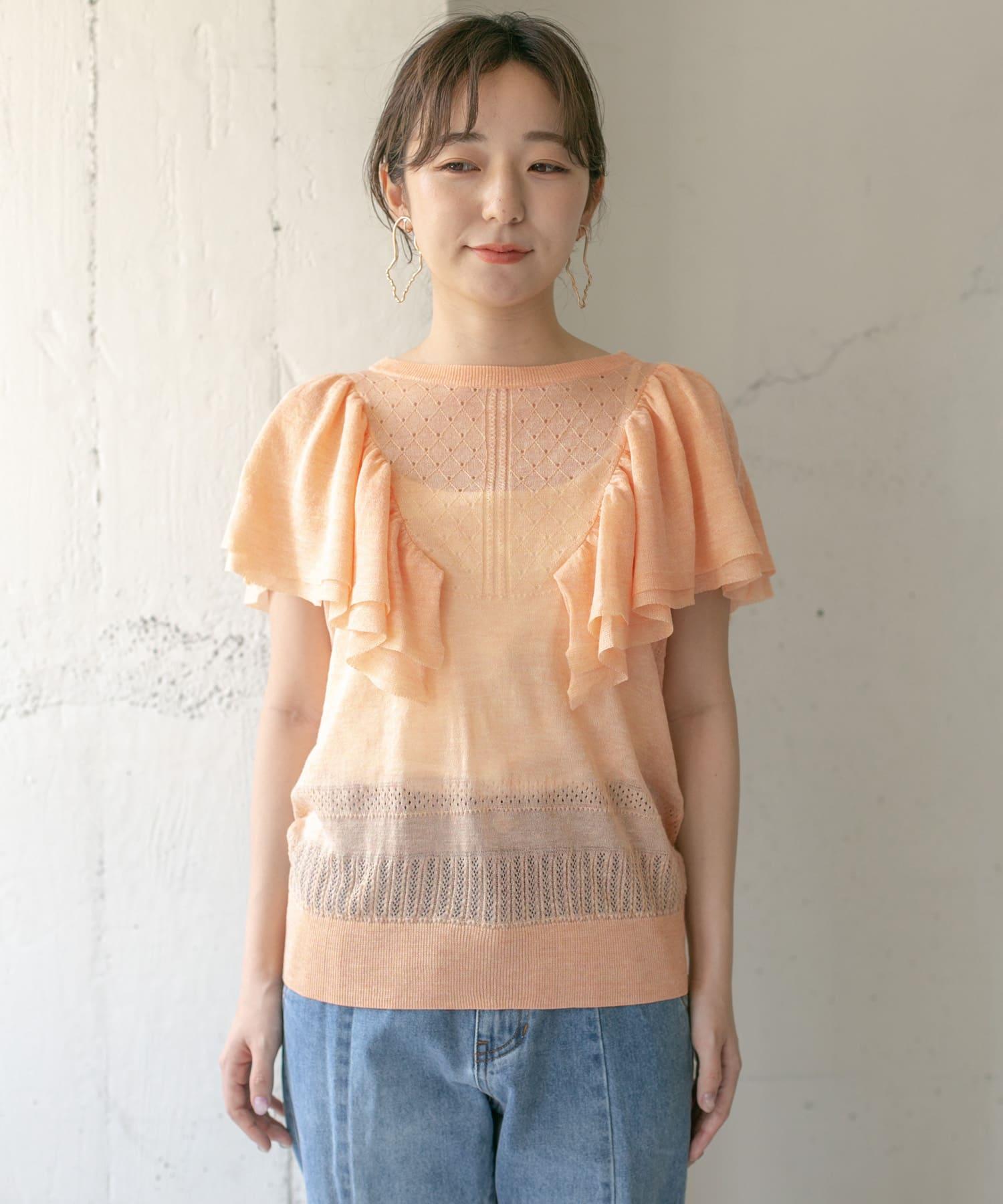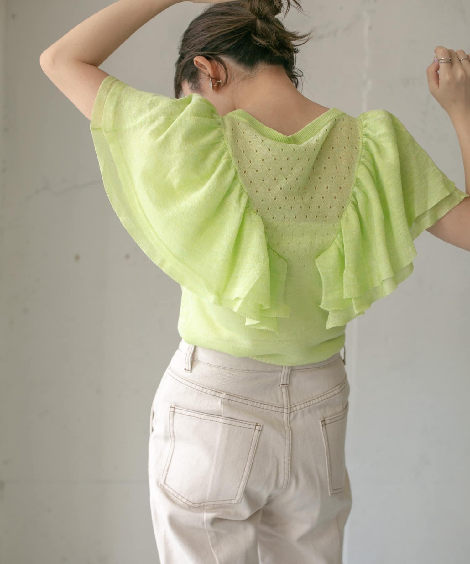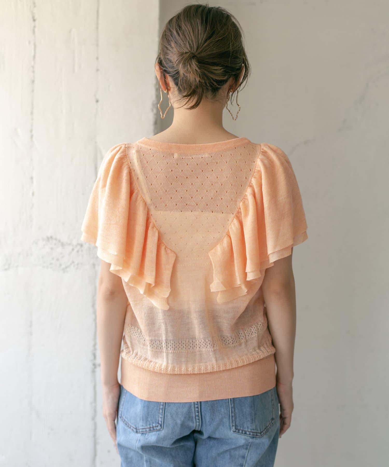 鏤空編織荷葉邊針織衫
