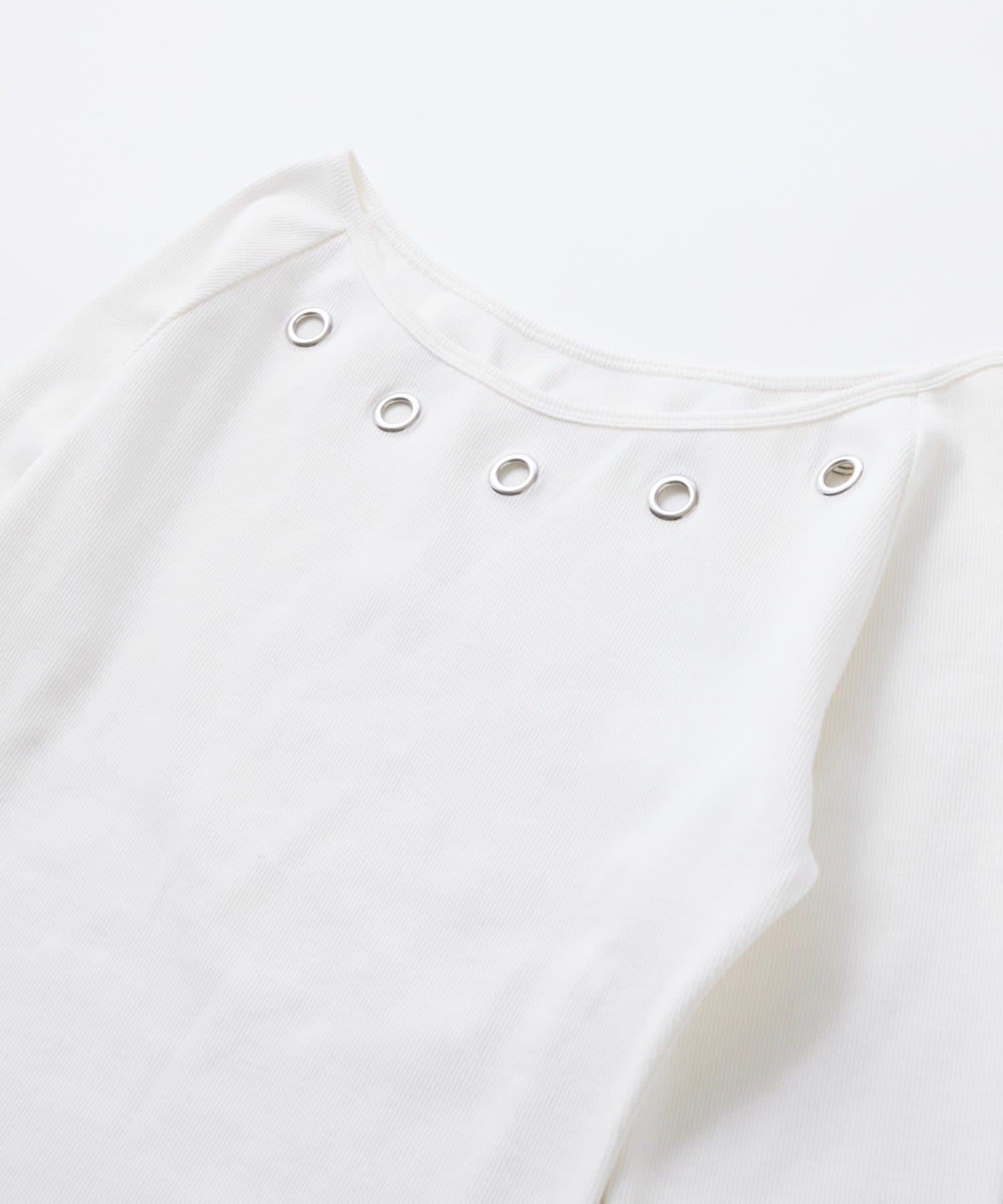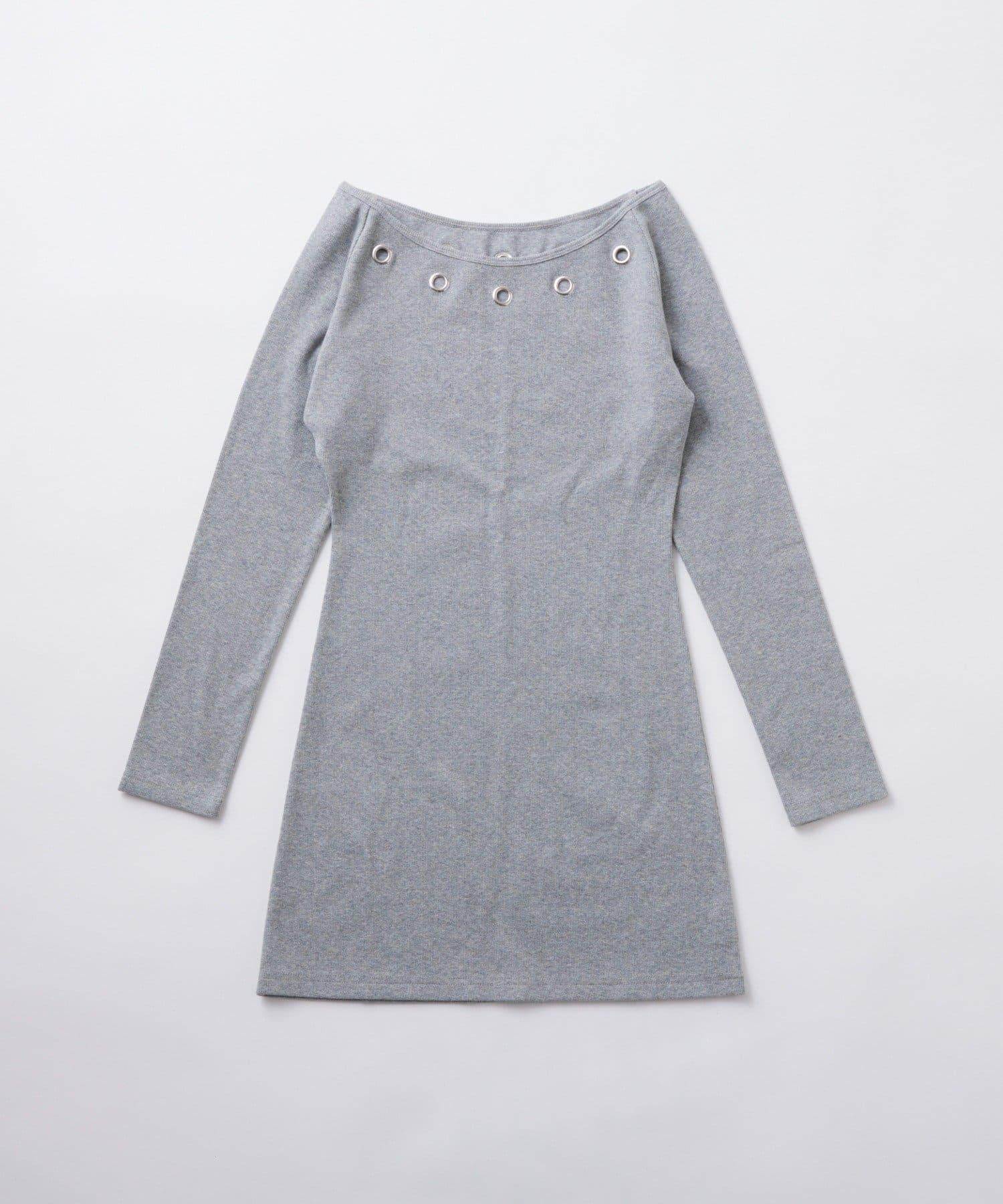 這款羅紋連衣裙的特色是頸部的孔眼設計。
