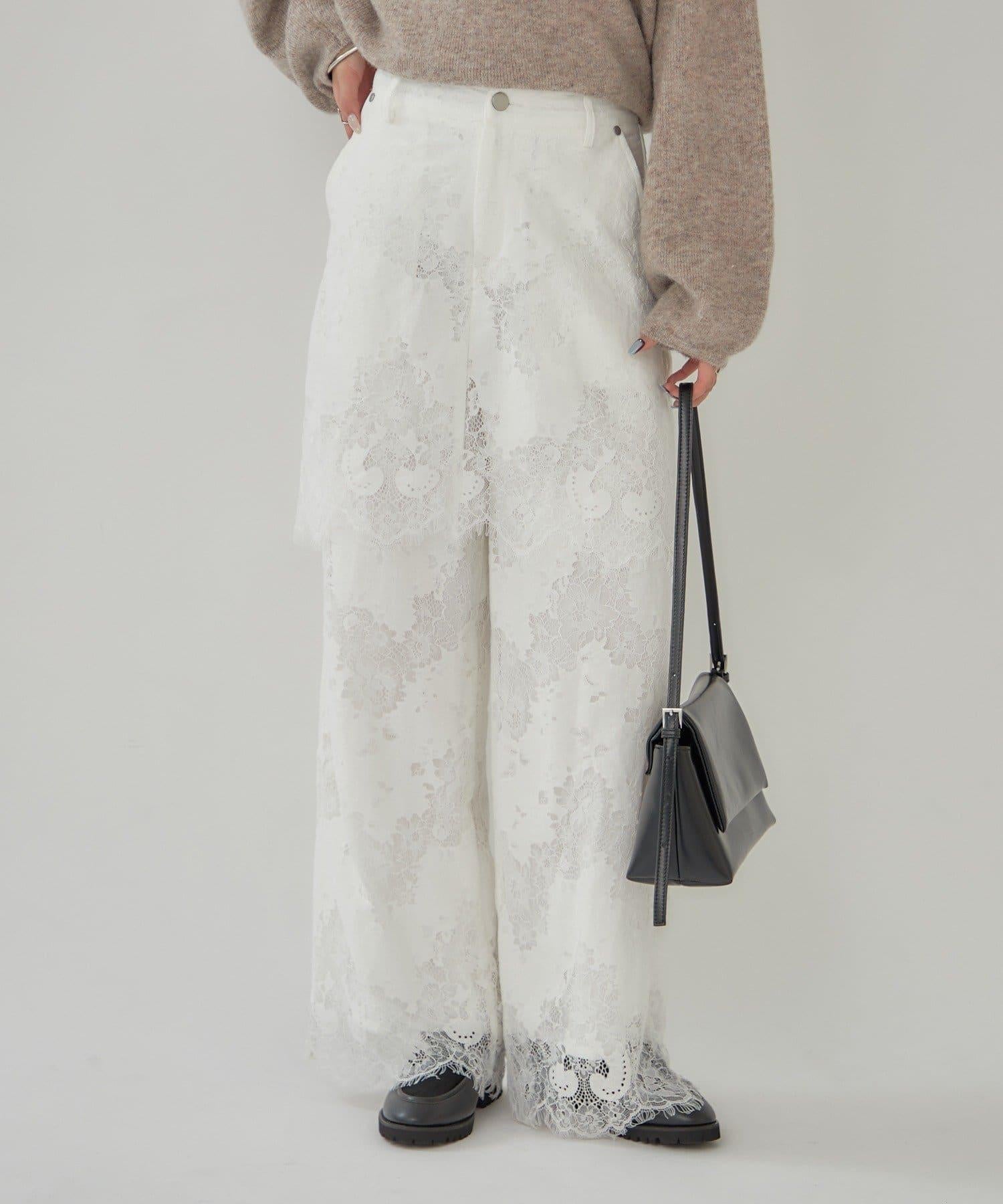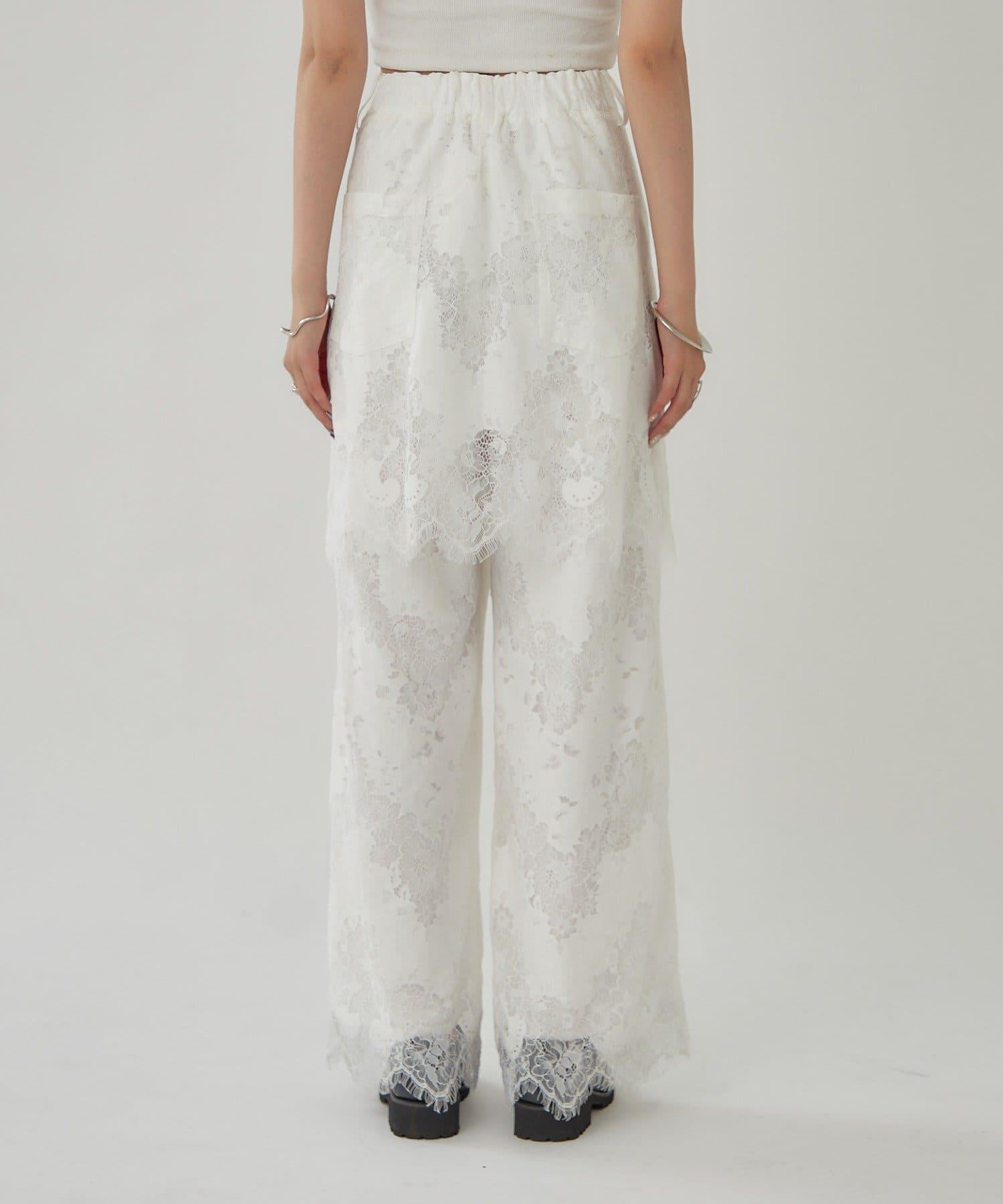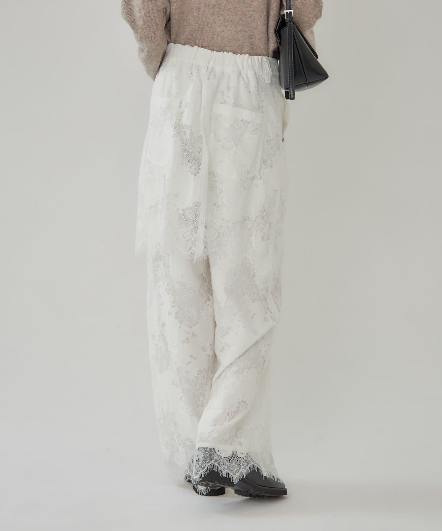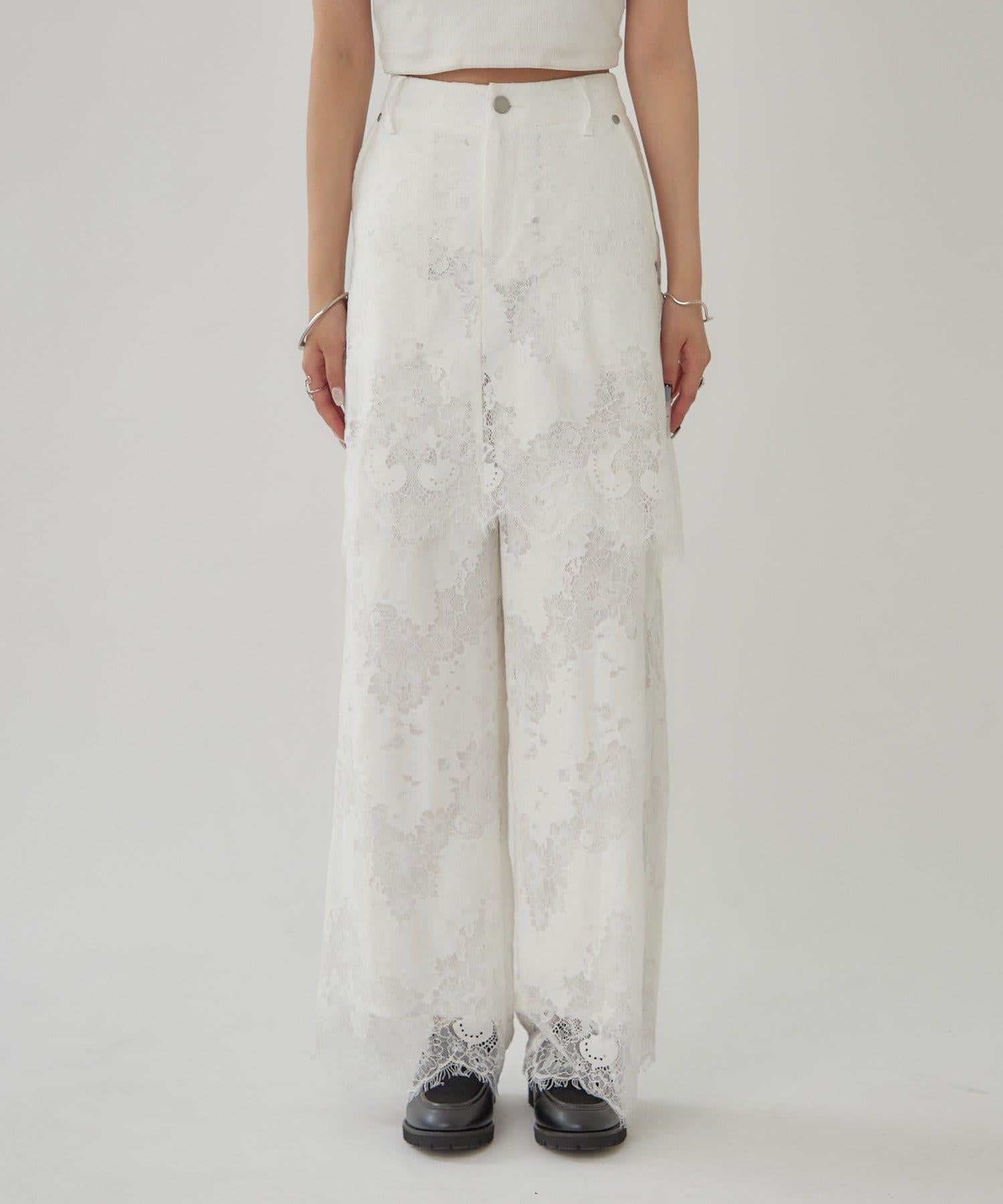 這款多層長褲採用奢華的扇形蕾絲製成。