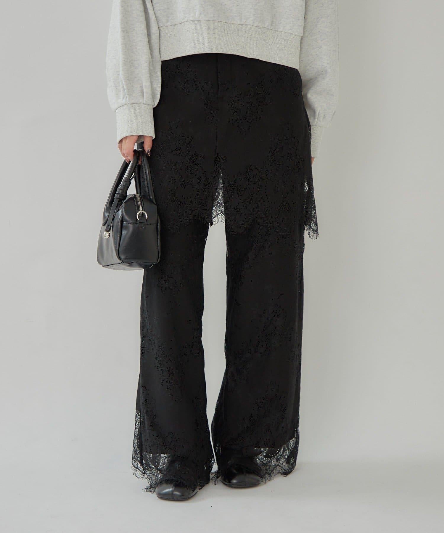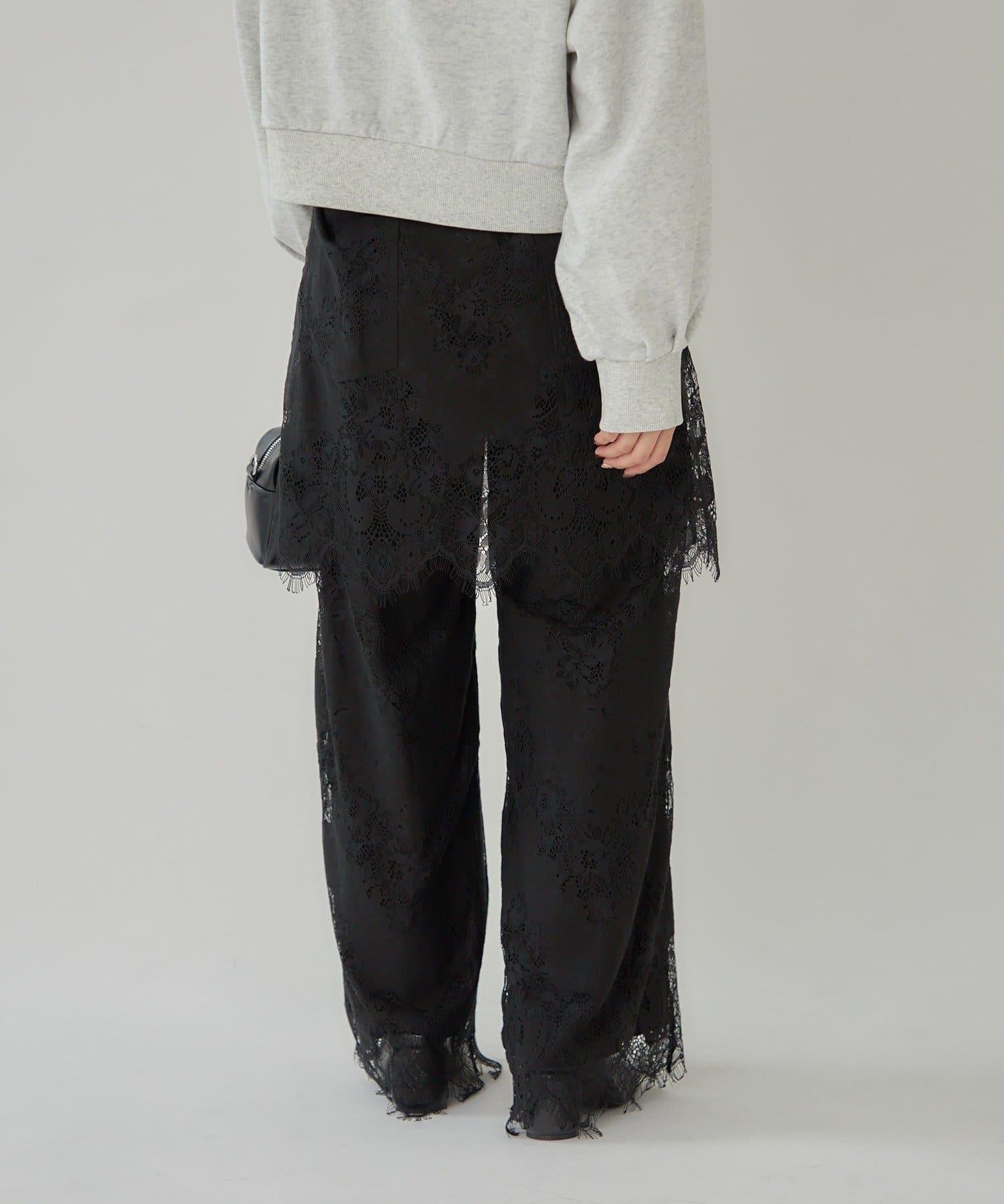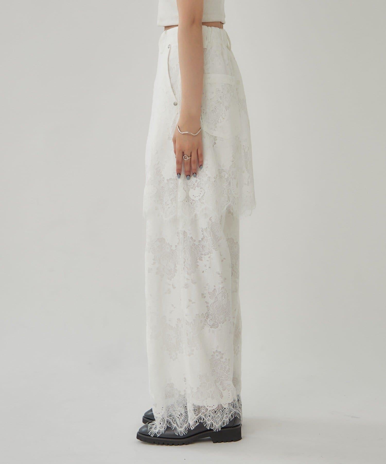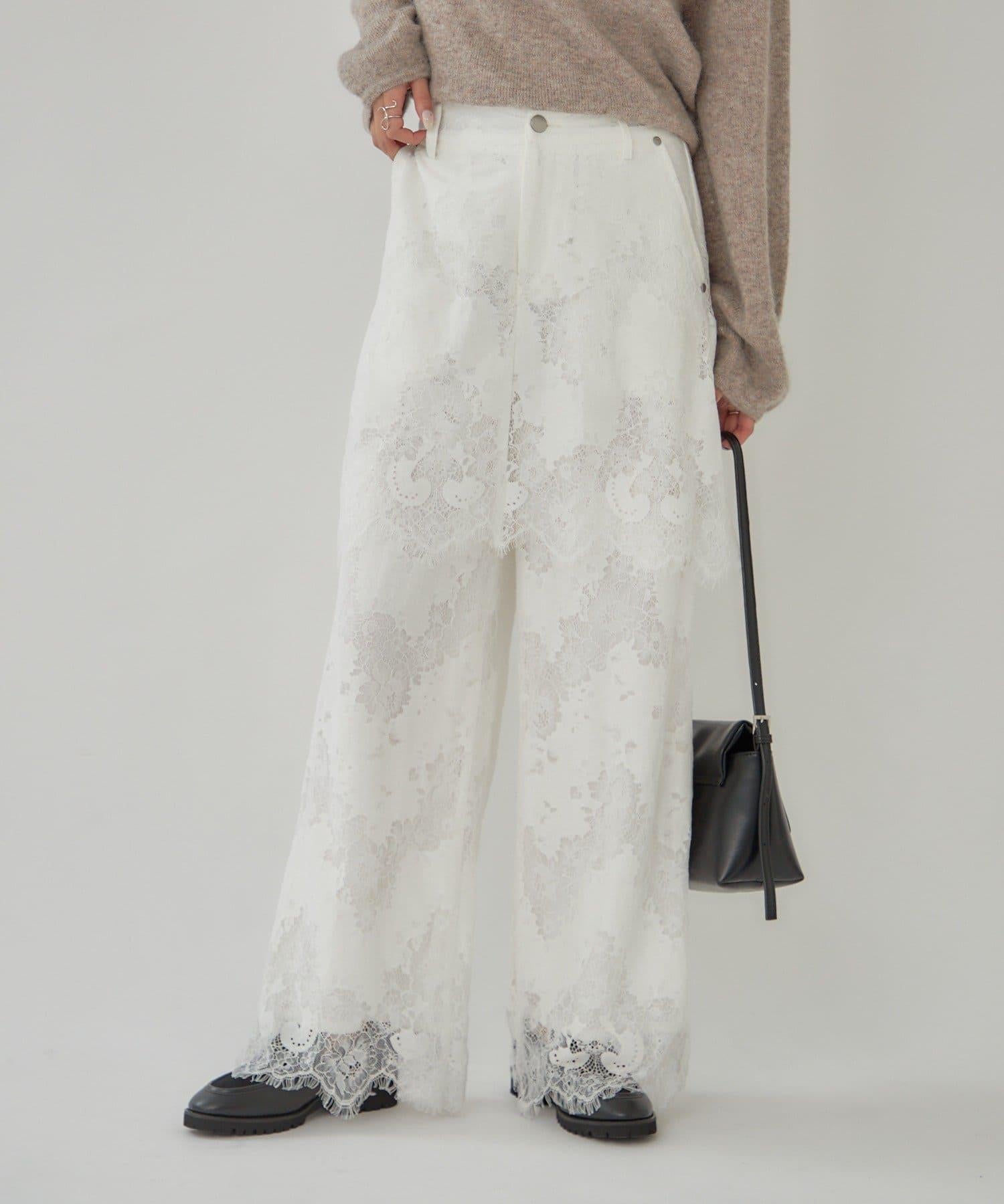 這款多層長褲採用奢華的扇形蕾絲製成。