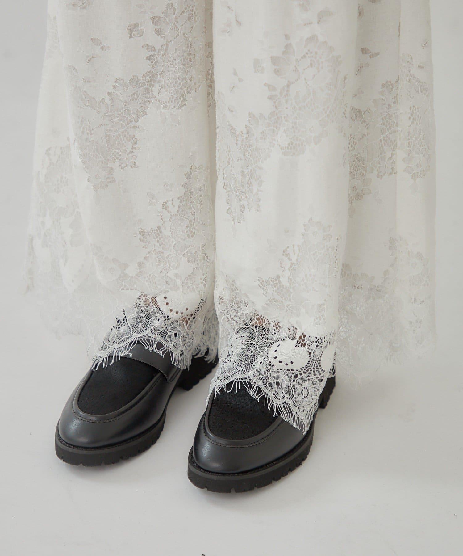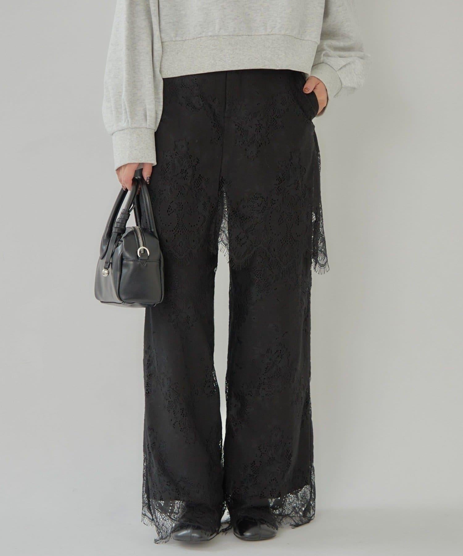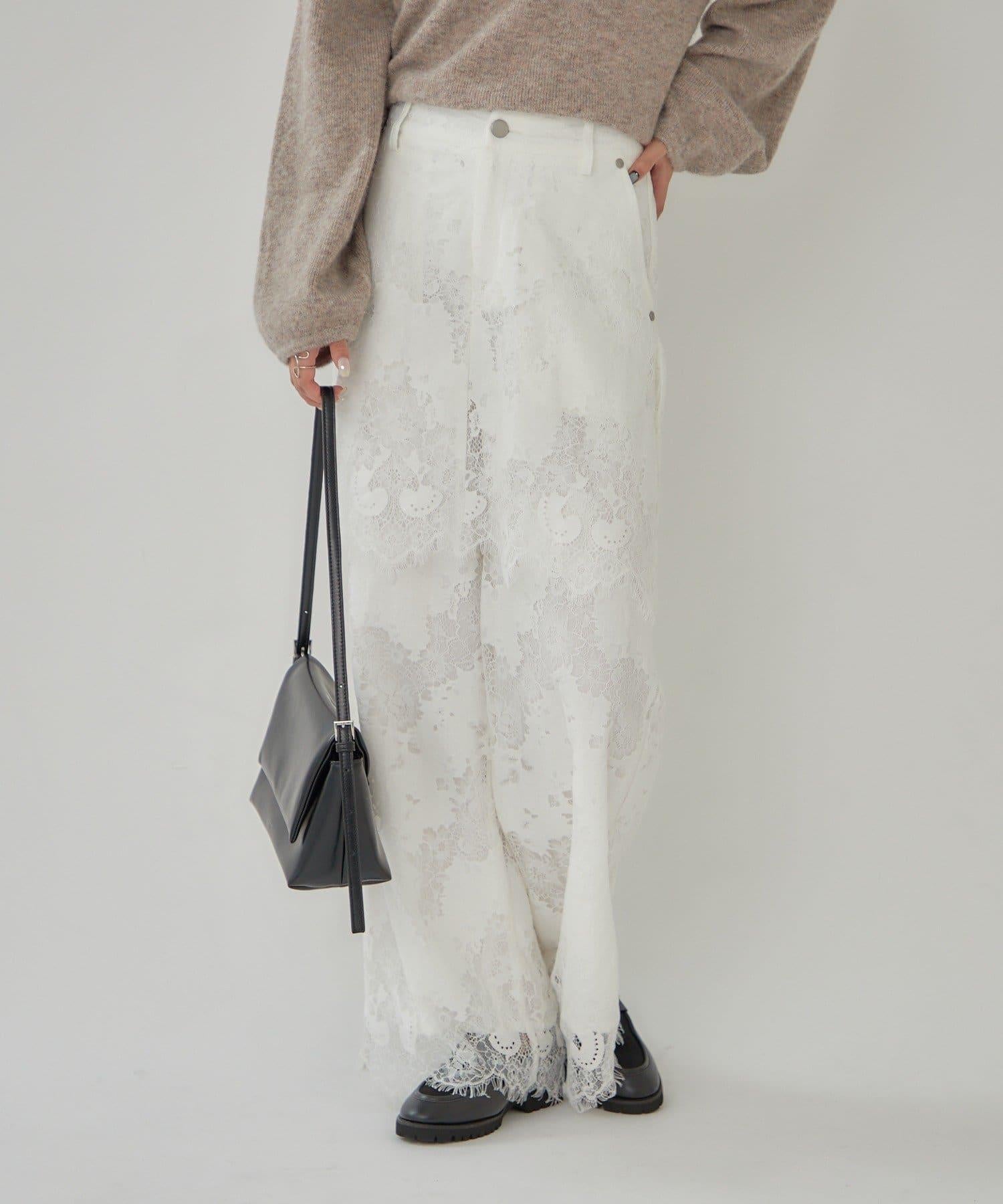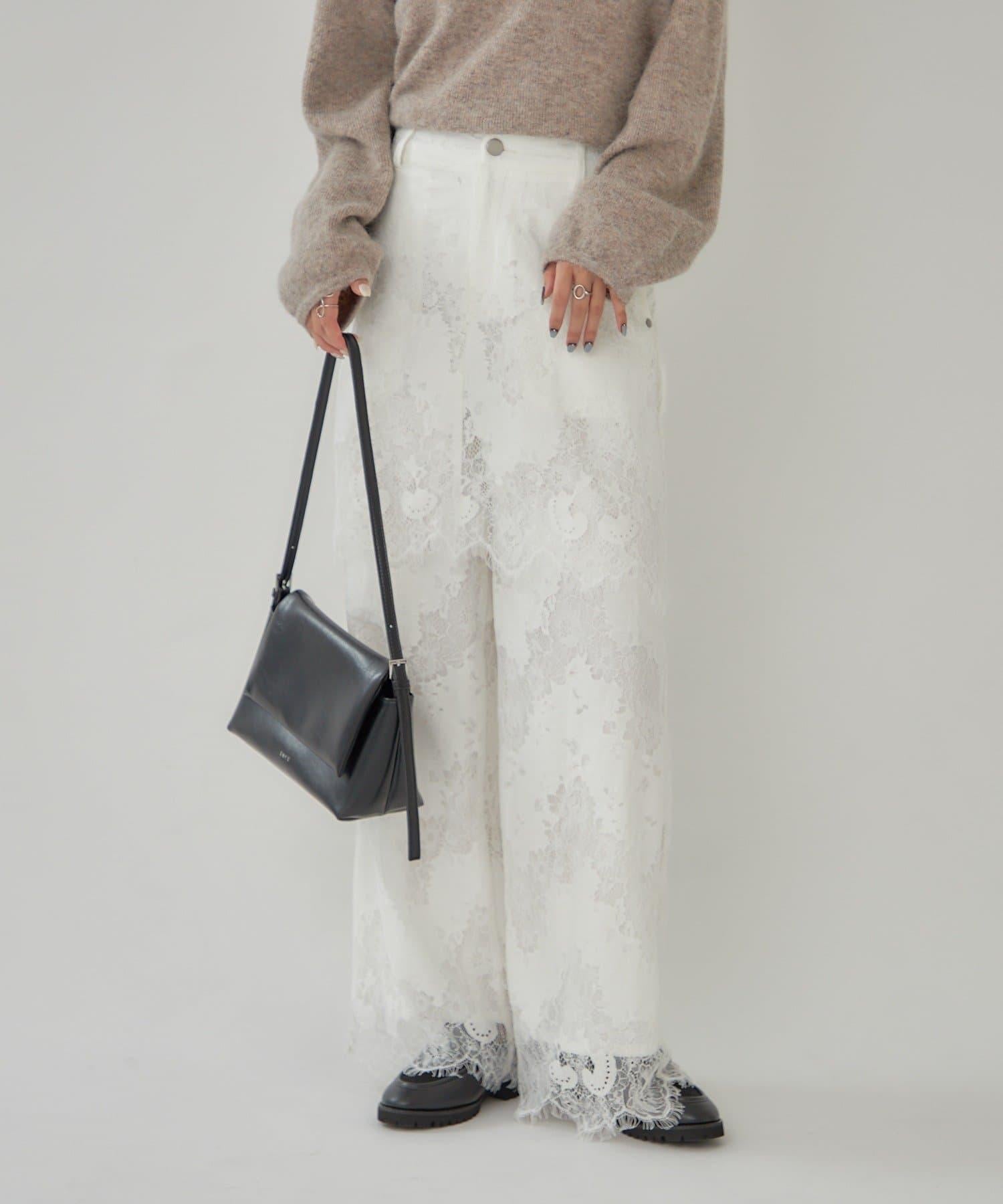 這款多層長褲採用奢華的扇形蕾絲製成。