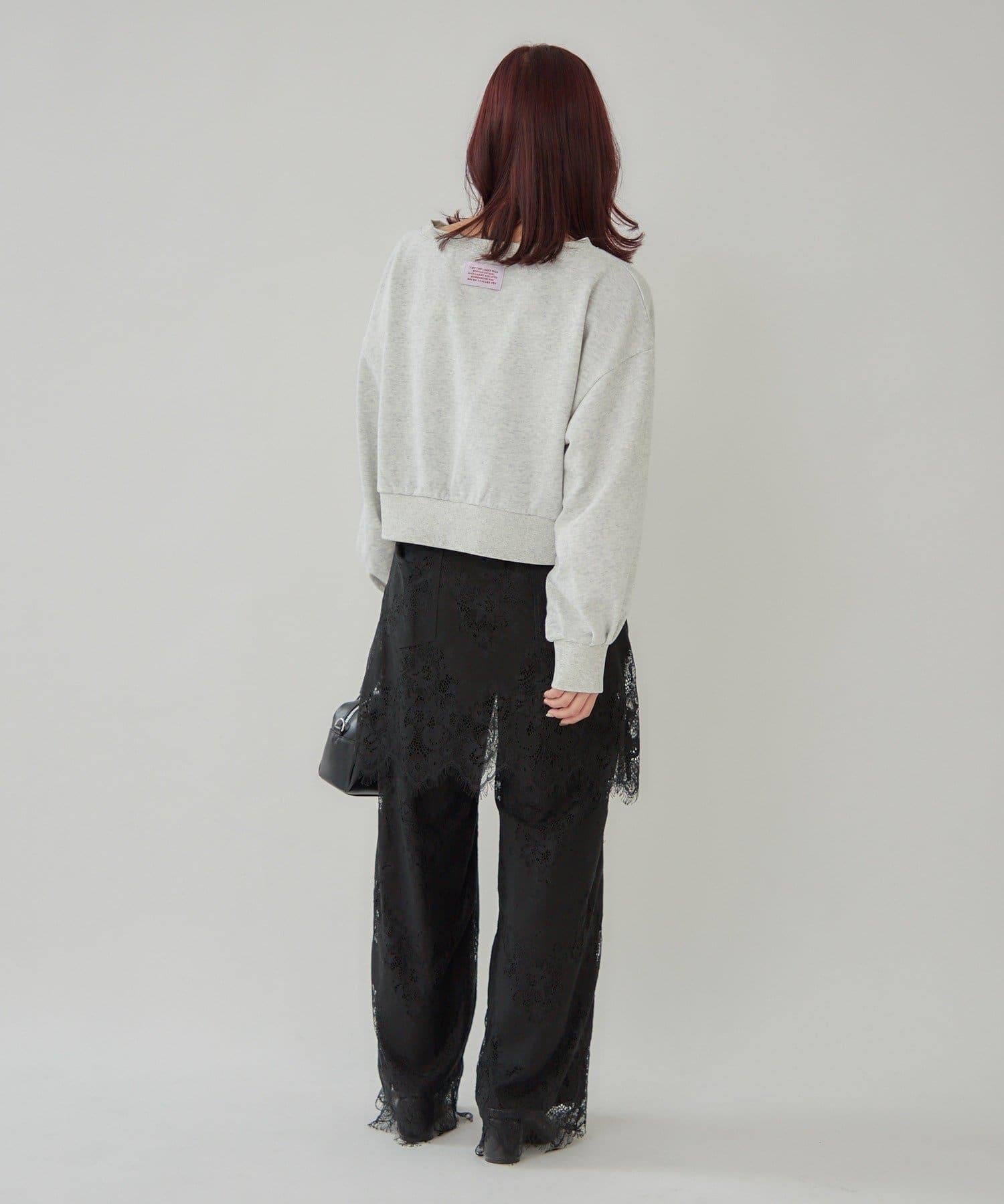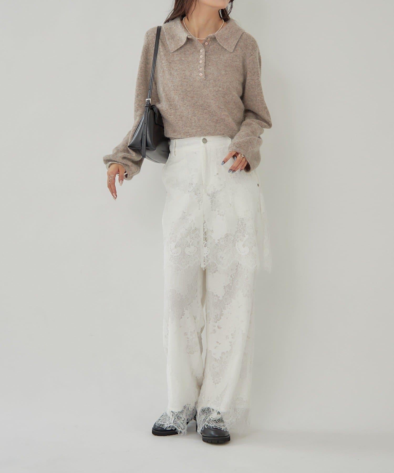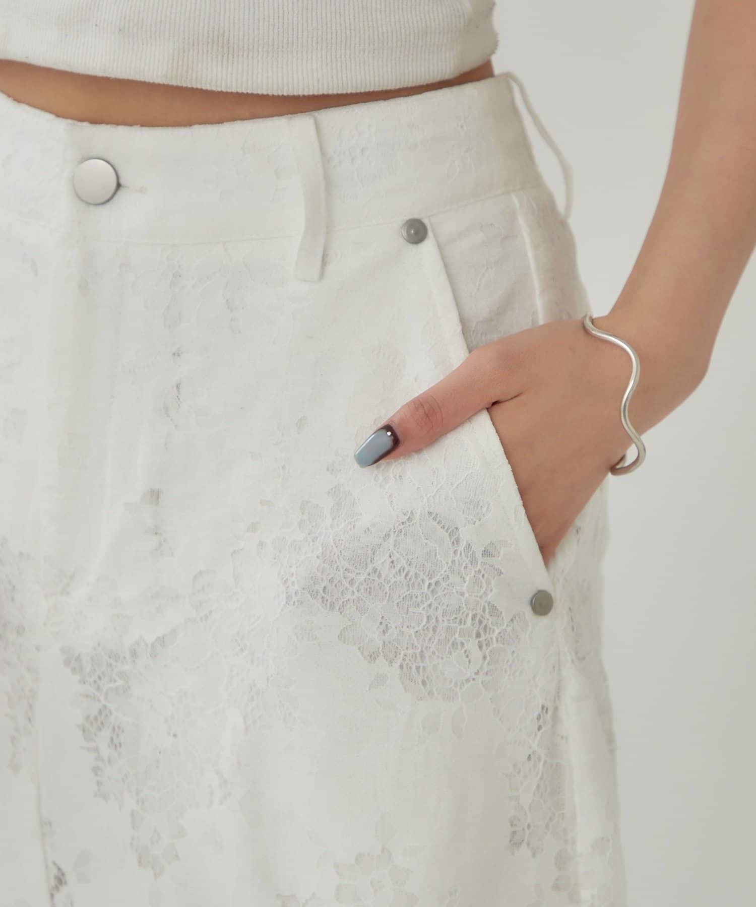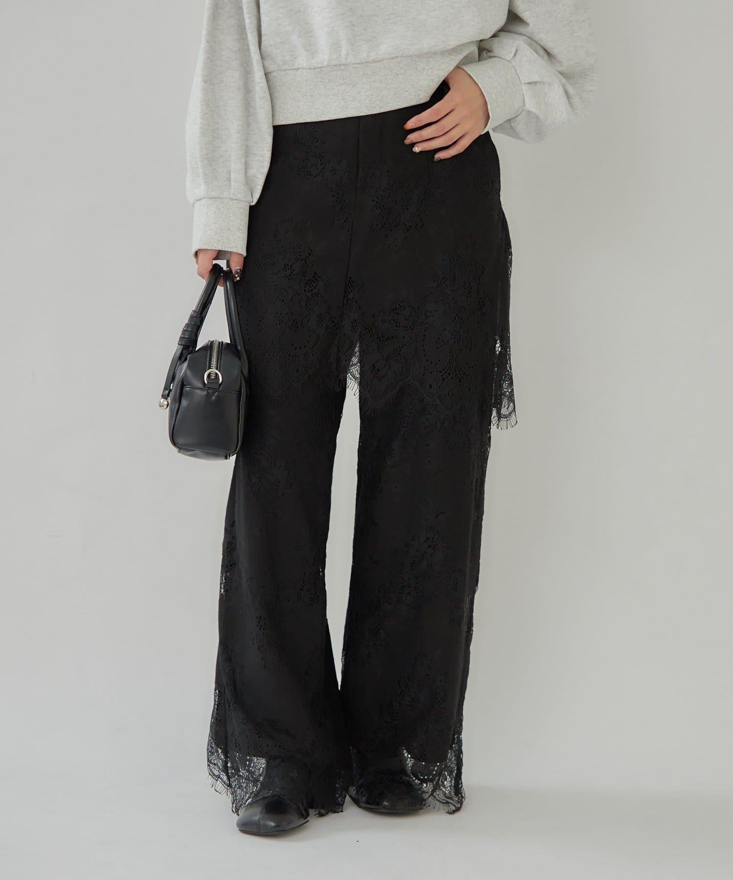 這款多層長褲採用奢華的扇形蕾絲製成。
