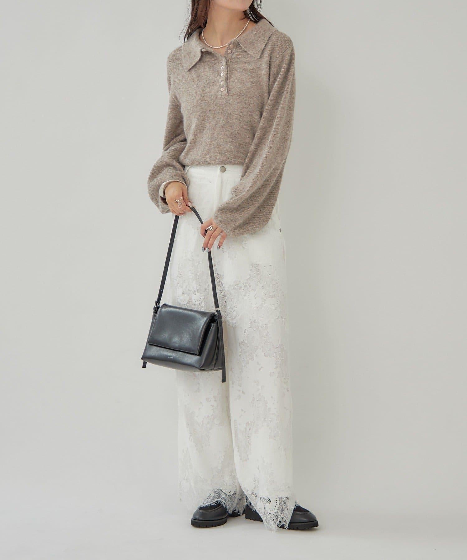 扇形的蕾絲讓搭配看起來很優雅。