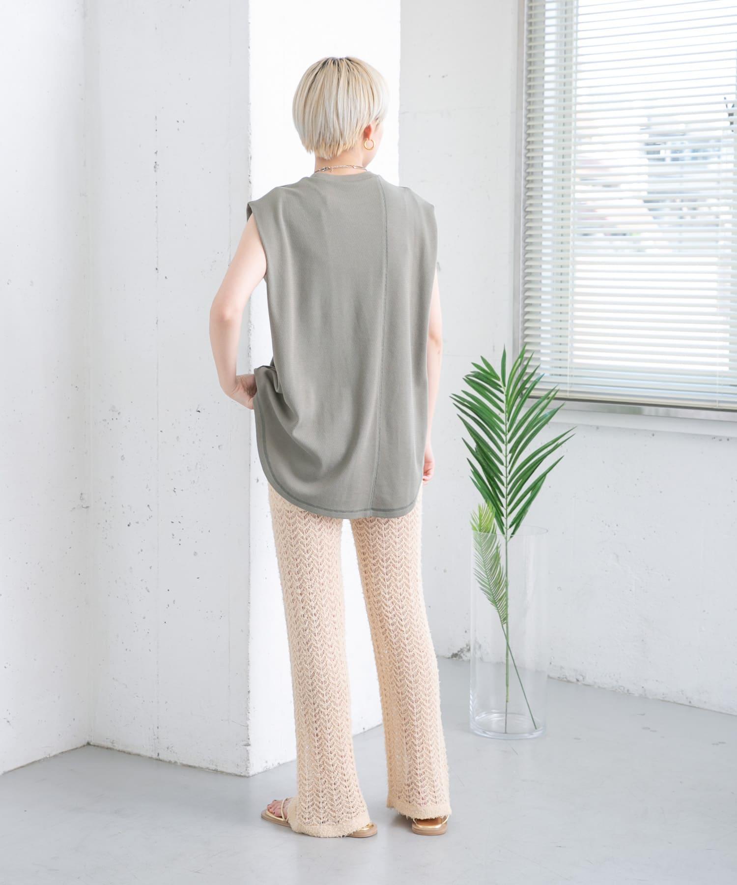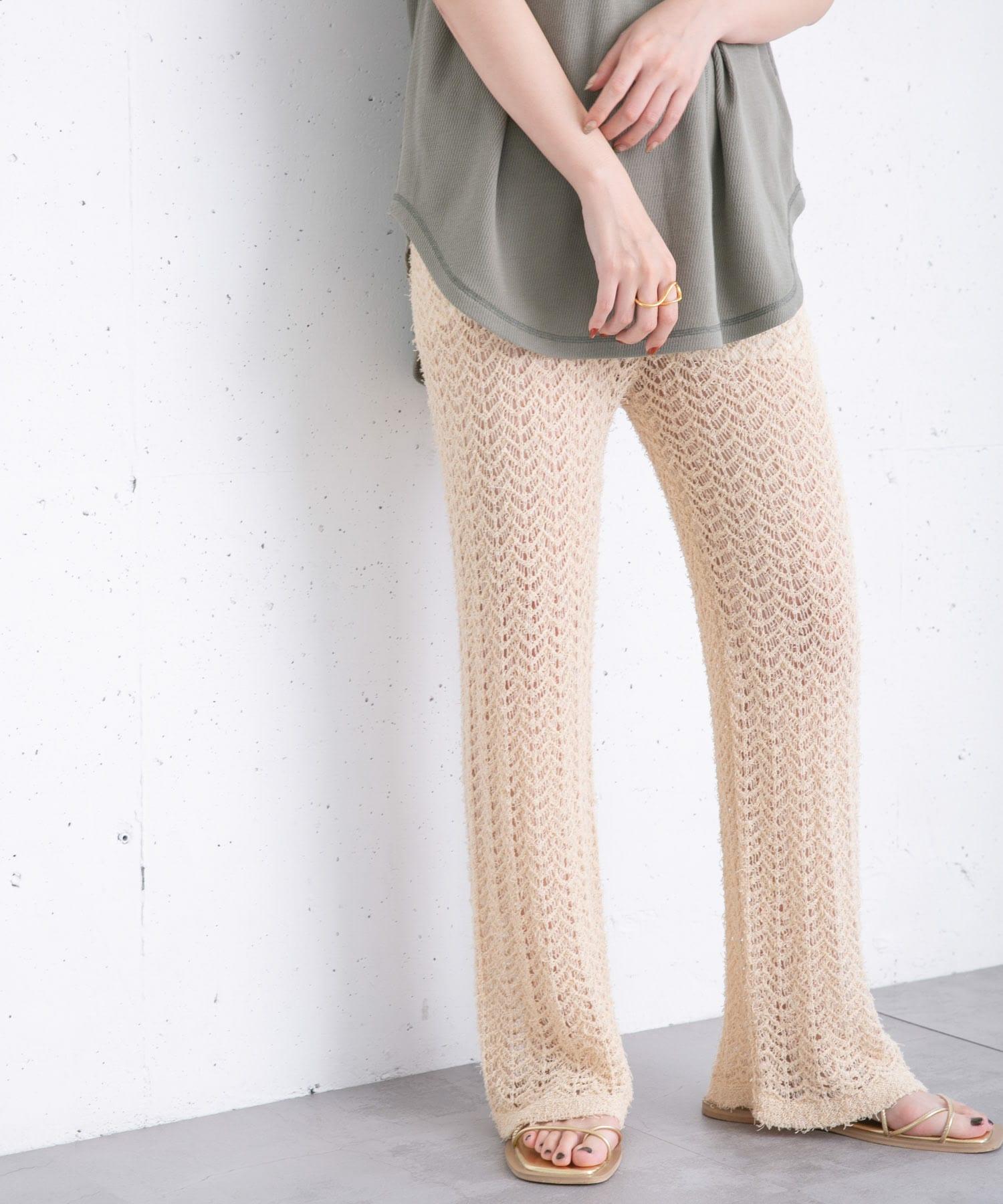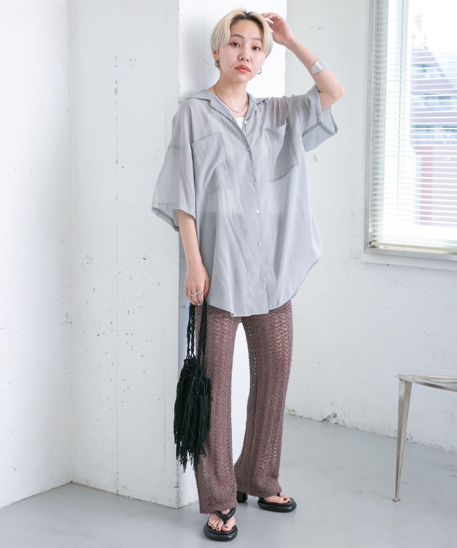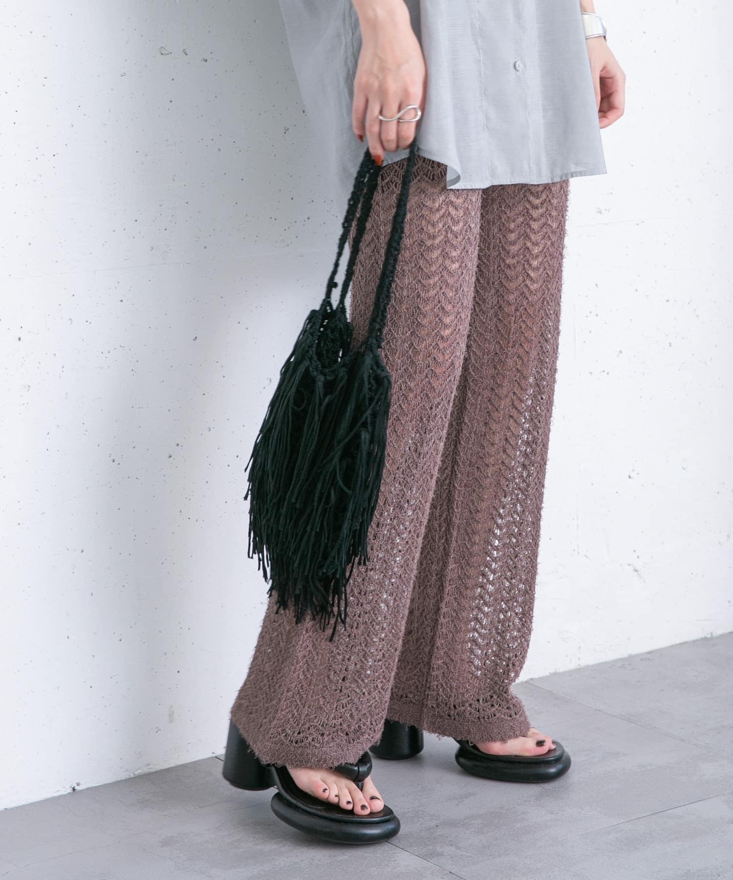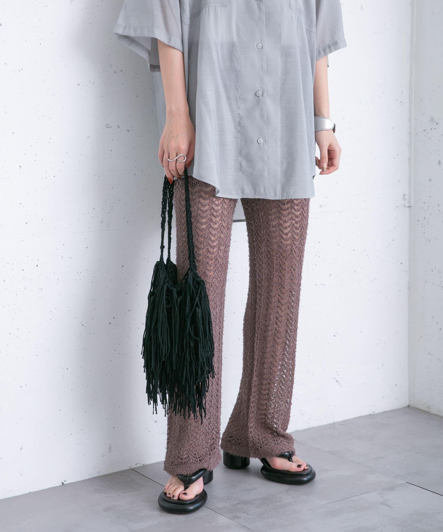 由於其通透性,建議與稍長的上衣、外衣和連衣裙搭配。尤其是長款連身裙,往往會以同樣的方式進行搭配,因此請盡情享受褲子帶來的變化。也有與裙子相同材質的款式(KB35-25J130)。