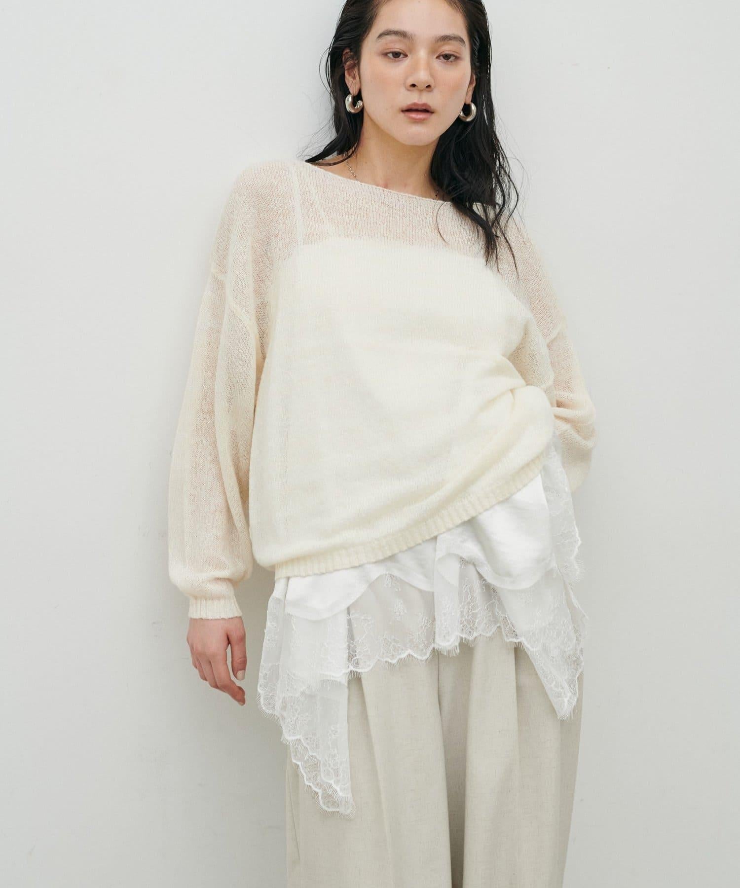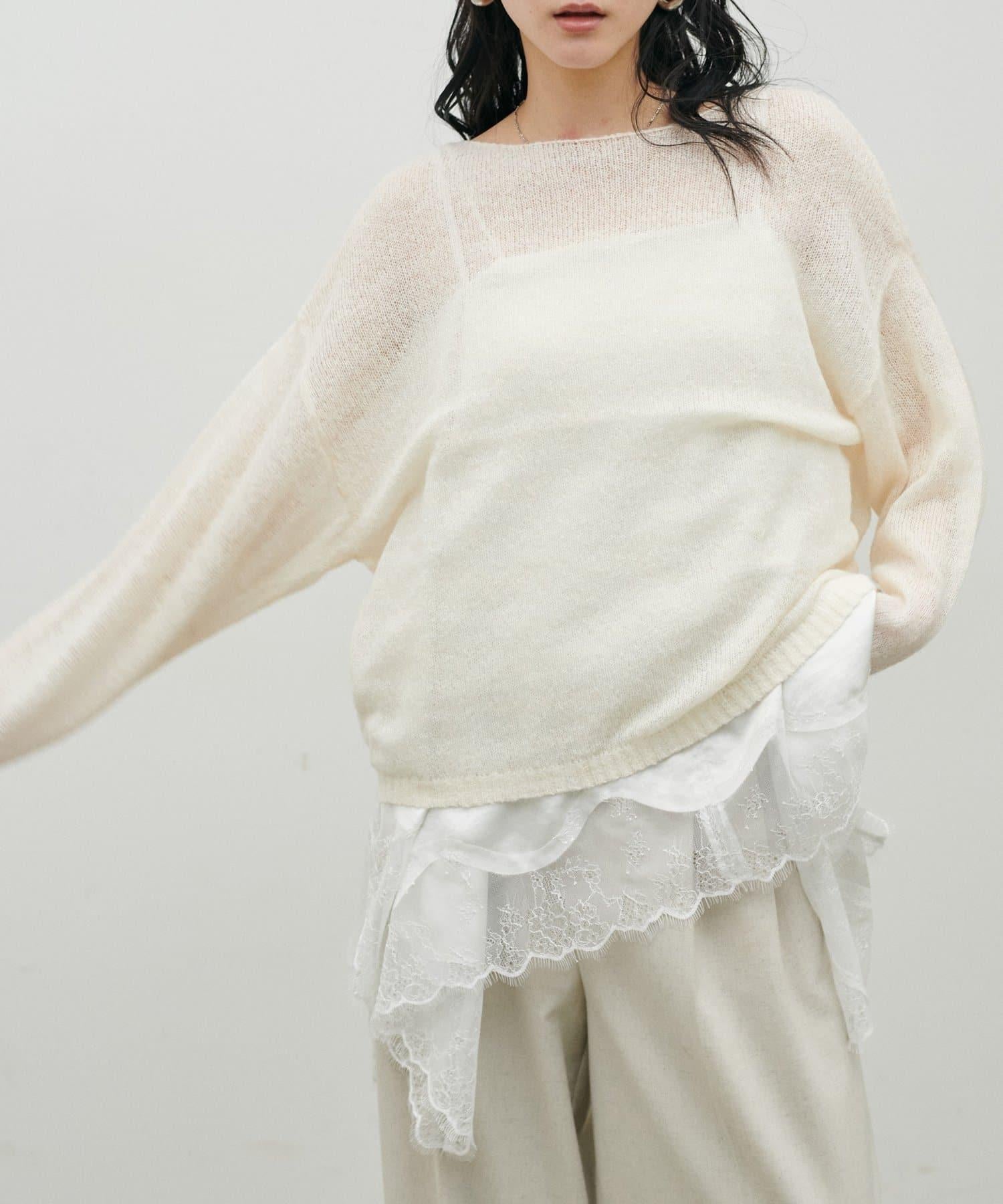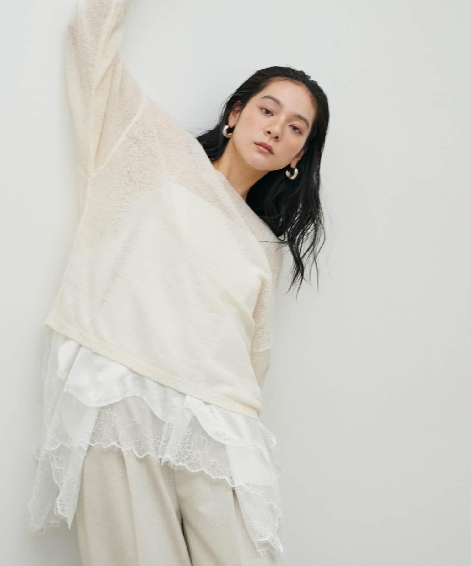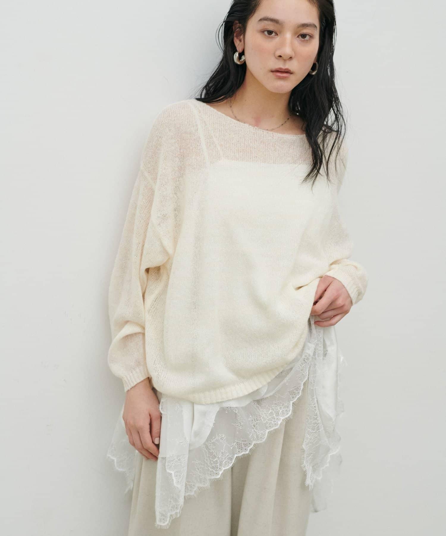 寬大的針織面料給人一種薄紗的感覺。