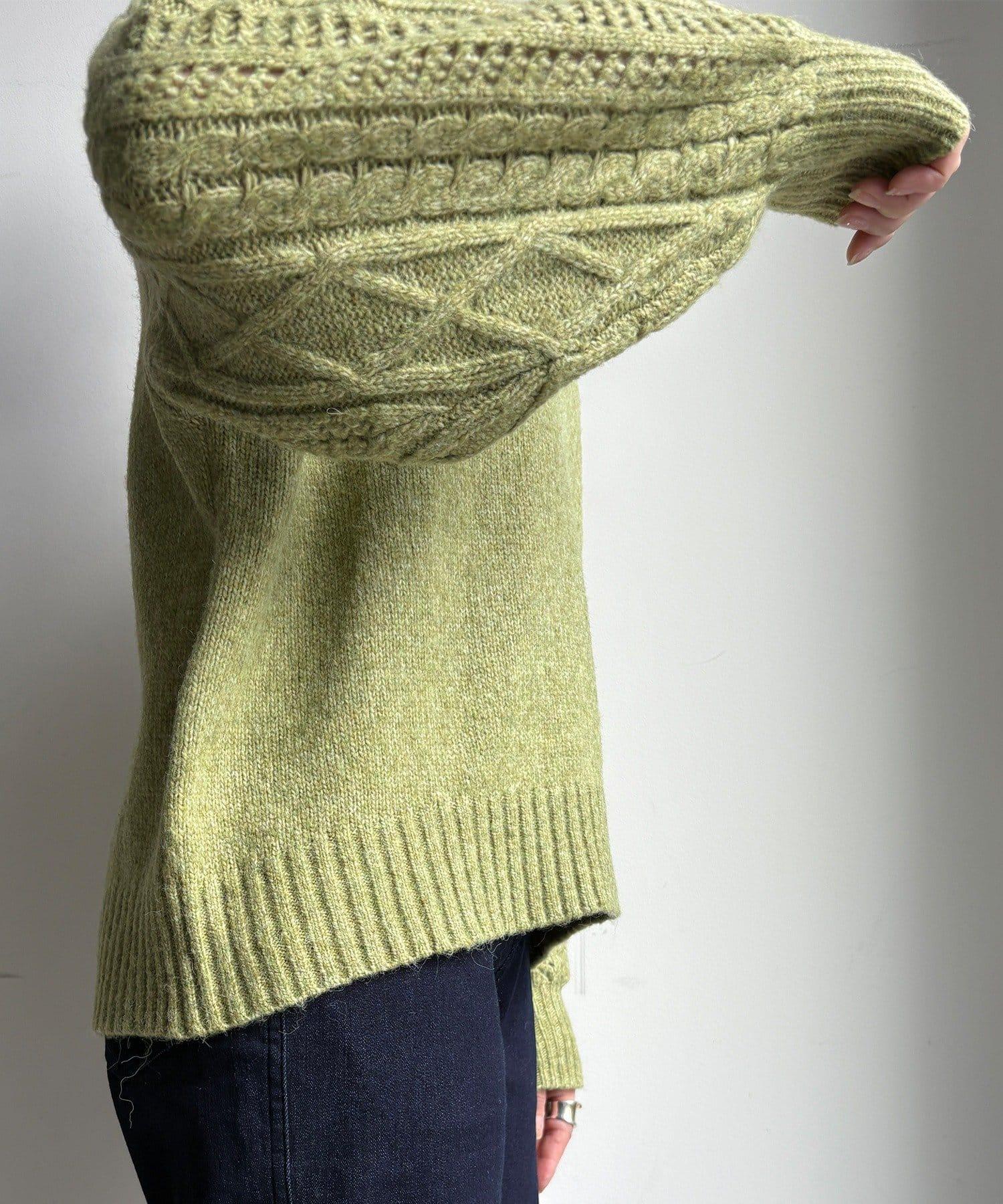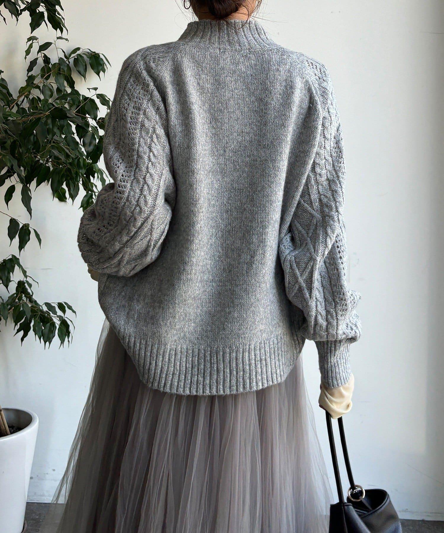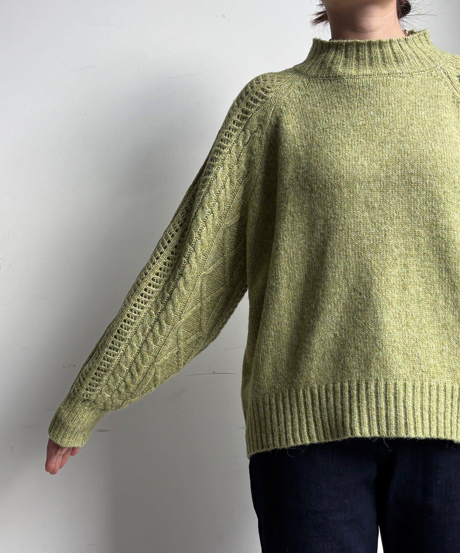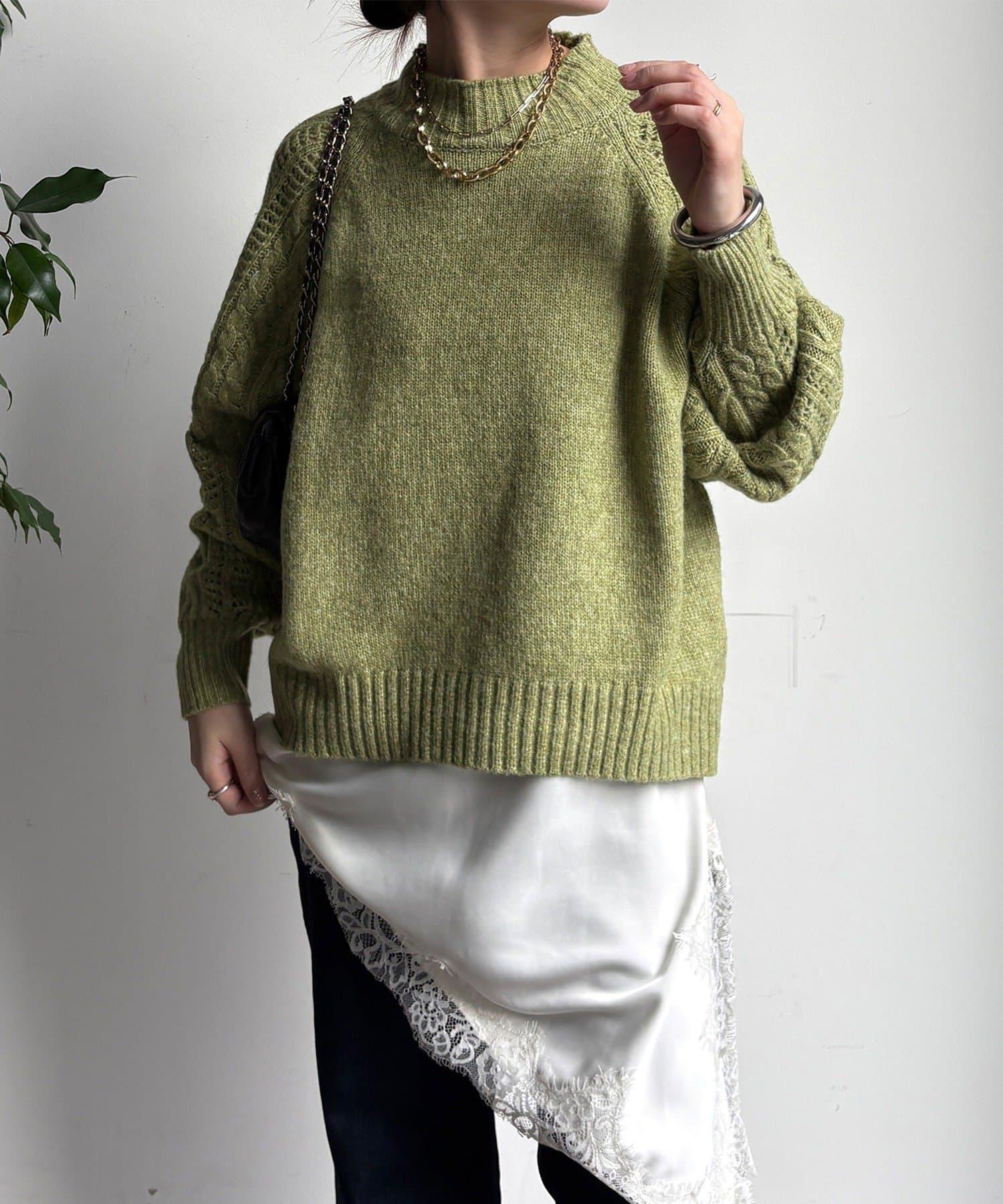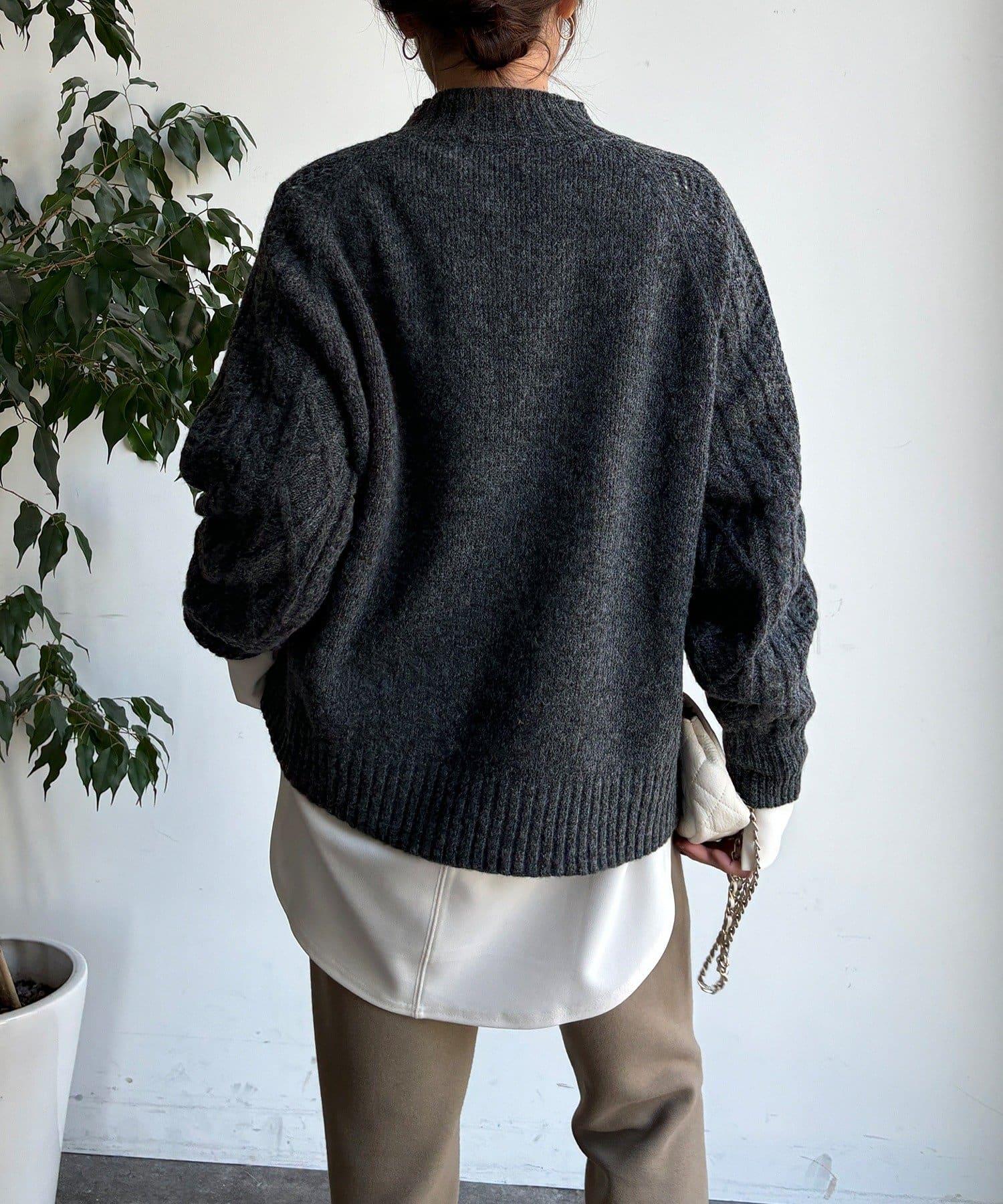 袖子上的針織線具有立體感,營造出適度的寬鬆感。